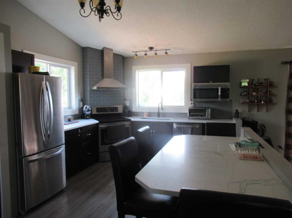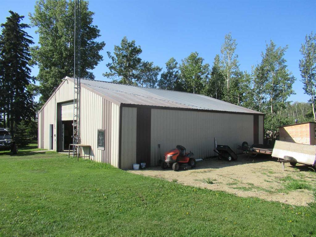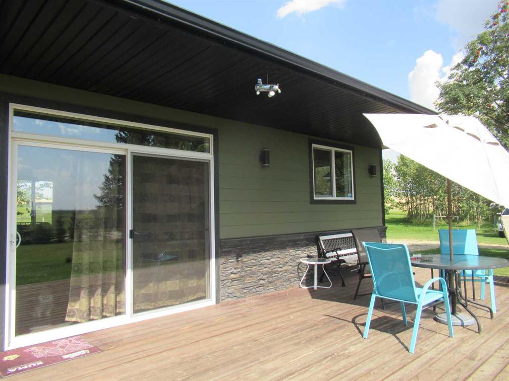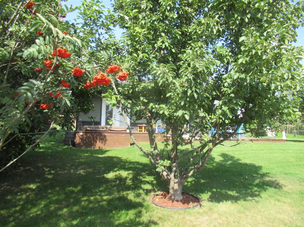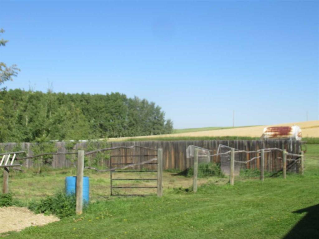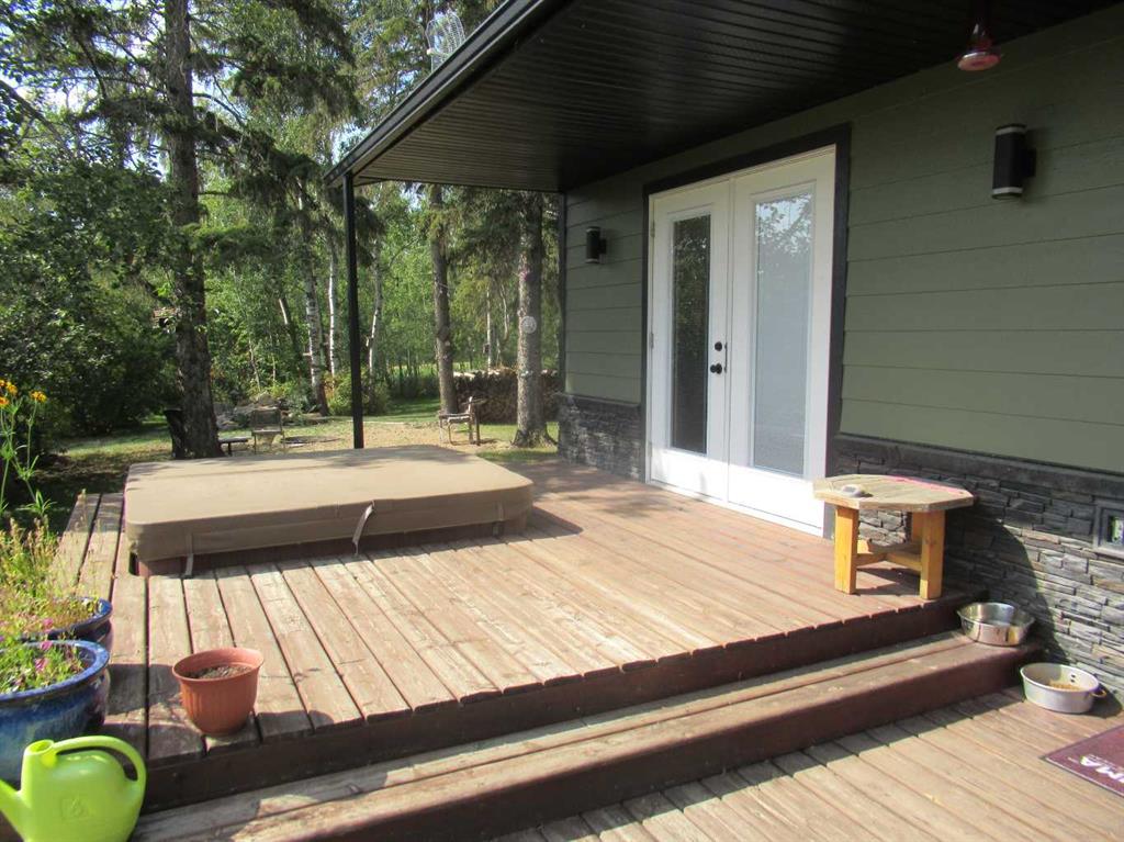 This versatile acreage is 9 acres with access to a great view of Sylvan Lake and Palm's Bay. Boat launching' and beach access are both available close by at the Palm's bay access road (Range Road 23). Another beach and boat access point is available a mile to the east, at Sunbreaker Cove. Other recreation features on this beautiful acreage include the horse-shoe pits, a fire pit, a gold fish pond, and a deck with a hot-tub. The wooded natural areas have large numbers of wild saskatoon, chokecherry and raspberry trees and bushes. The very attractive, easy-entry bungalow has a large open-concept kitchen, living room, family room area, with two bedrooms and a bath and a half, all stainless steel appliances, and a hot-water heating system are other features. Patio doors open to the large wood deck and hot-tub. Extra features of the home include lifetime shingles, quartz counter tops and vinyl plank flooring. The 57' x 26' horse barn has a steel roof and opens to several pasture areas and turn-out yards. The 50' x 44' shop has benches, in-floor heating, air compressor, shop hoist, LED lighting, steel roof, and is hidden from Rainy Creek Road by a natural shelter-belt full of wild birds. This easy access shop could, potentially, provide a home base for a mechanical, welding, or trucking business, or provide a safe home for all of your toy's. The 160 ft deep well, is tested at 14gpm, and the acreage is serviced by a septic tank system.