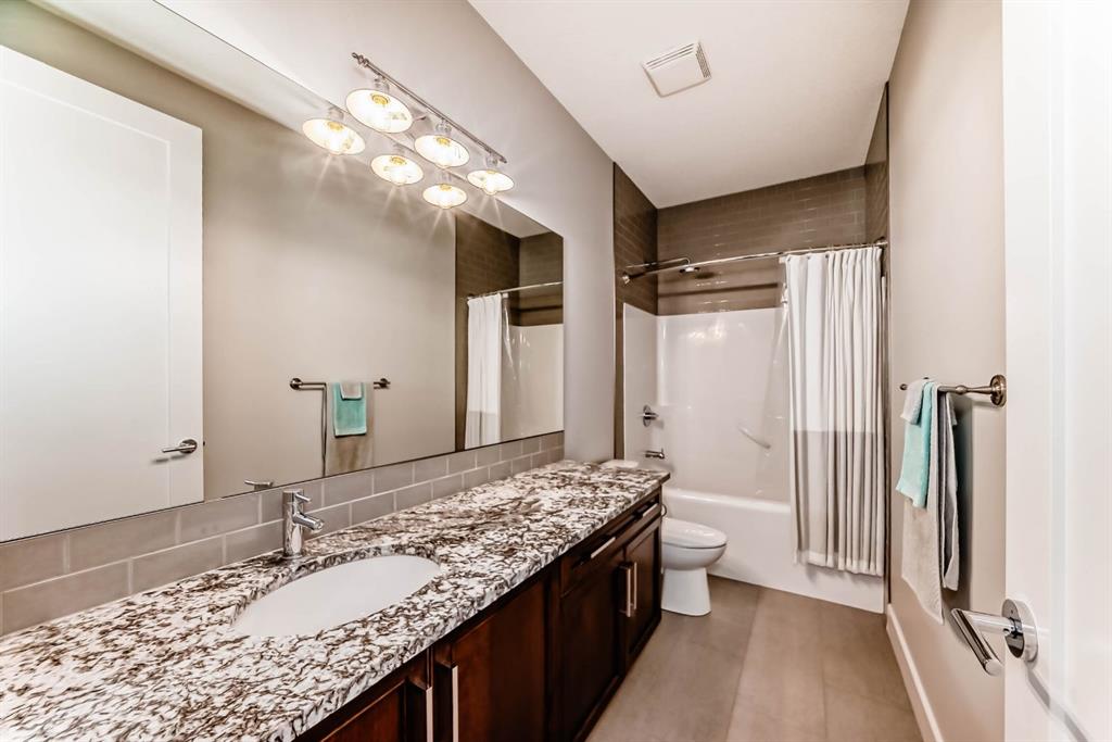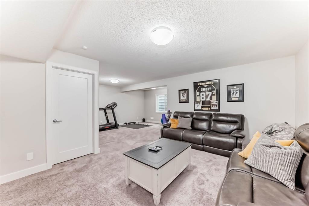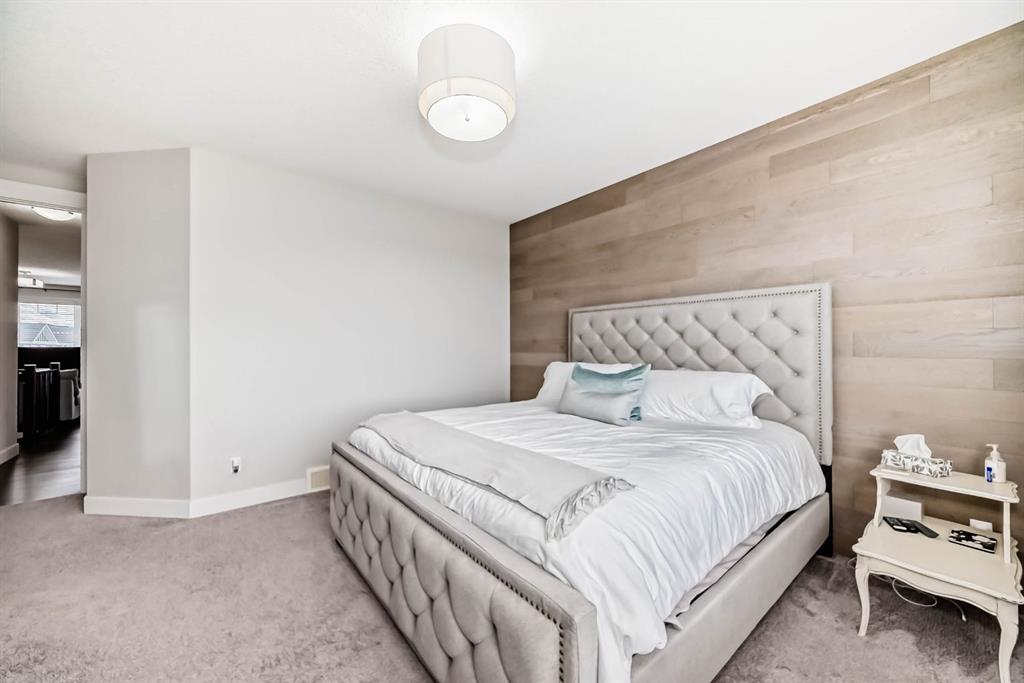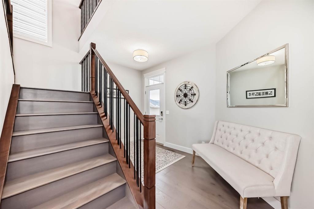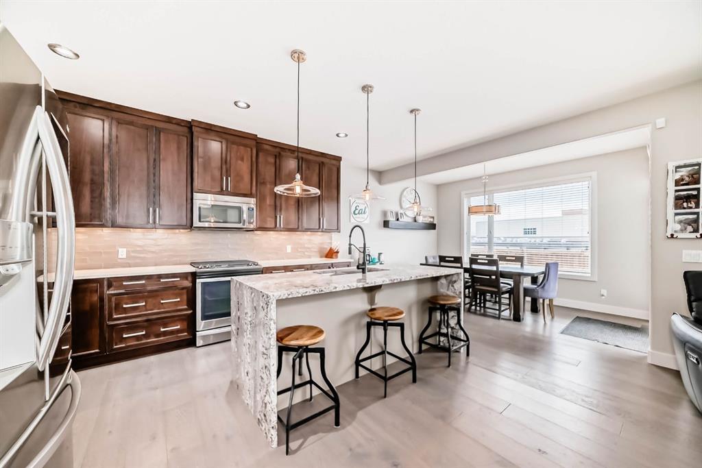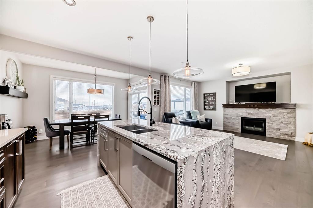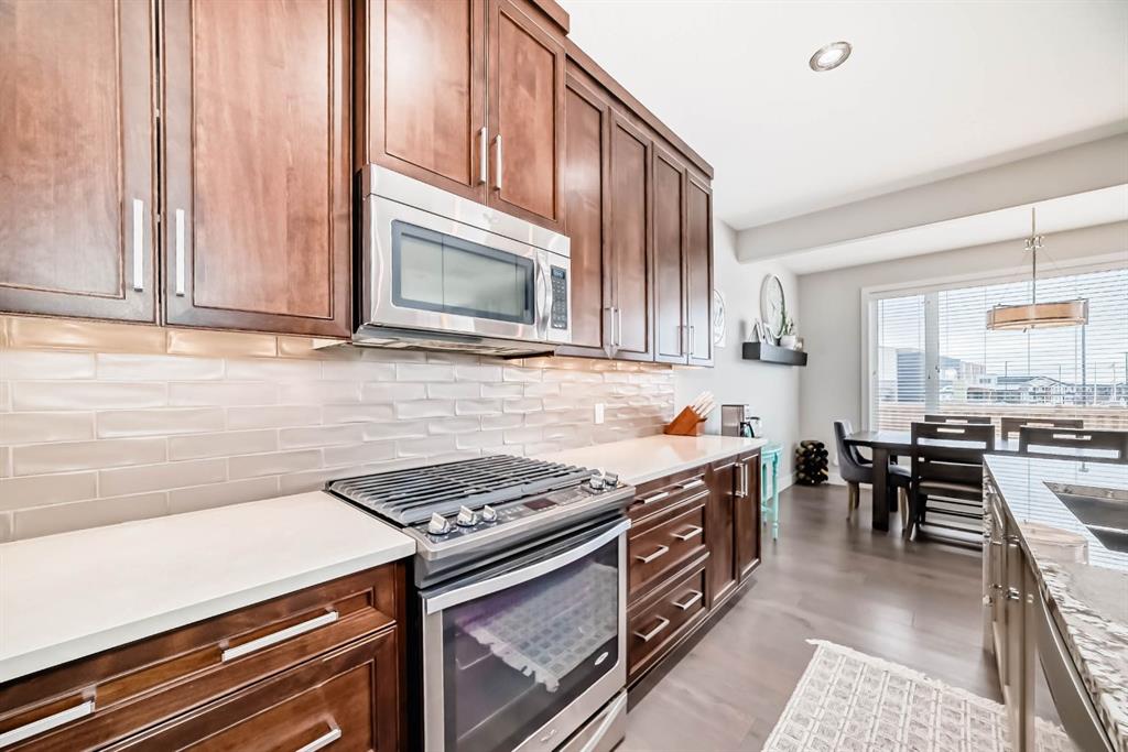 This home is a true 10/10—pride of ownership is evident throughout and BEST VALUE in Fireside! Originally a Janssen Showhome and still with the original owners, this impeccably maintained property has it all! Step into the spacious foyer and immediately notice the soaring 9-foot ceilings and impressive 8-foot doors on both the main and upper levels. Rich hardwood flooring flows seamlessly into the open-concept living and kitchen areas. The kitchen features custom wood cabinetry with under-cabinet lighting, a brand-new stainless steel appliance package including a gas stove, and a stunning granite waterfall island. The large dining nook leads out to a beautifully landscaped backyard. Enjoy outdoor living with a new composite deck, privacy fencing, a stamped concrete patio, and a hot tub—perfect for entertaining or relaxing. A 6-foot wooden fence provides exceptional privacy all around. Back inside, the walk-through pantry conveniently connects to the oversized, heated garage, which offers ample storage options. Upstairs, the central bonus room—with peak-a-boo mountain views—creates a great separation between two spacious front bedrooms, a 4-piece bathroom, a 3rd bedroom currently used as a home office, and the impressive primary retreat at the rear. The luxurious 5-piece ensuite includes a glass-enclosed, heated shower and a walk-in closet outfitted with custom built-ins. The fully finished lower level offers a 5th bedroom, another full 4-piece bath, and a spacious family room with additional flex space—perfect for a home gym, media room, or play area. Additional upgrades and features include: Gemstone exterior lighting, Central A/C, Full irrigation system (front & back), Extended driveway, Custom Hunter Douglas blinds throughout This home is move-in ready with nothing left to do—just unpack and enjoy!