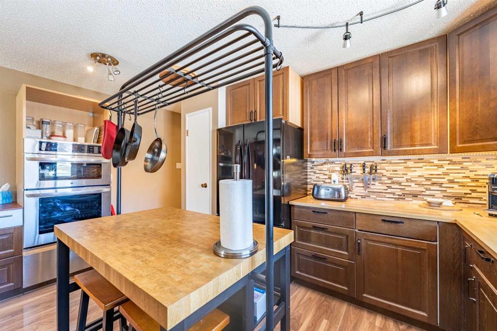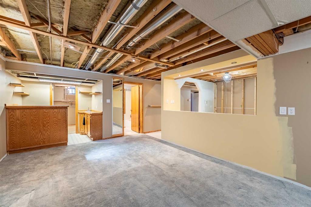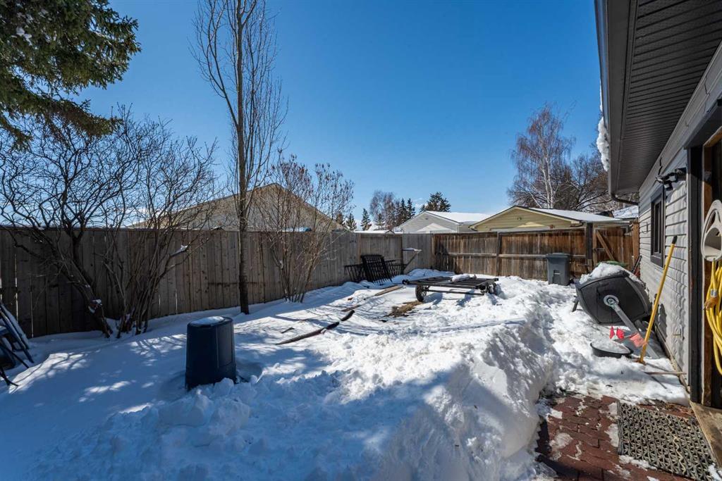 Welcome to this spacious and well-appointed 4-bedroom, 2.5-bathroom bungalow, offering a perfect blend of comfort, functionality, and outdoor charm. The updated kitchen is a true highlight, featuring a built-in wall oven, microwave/convection unit, gas cooktop, centre island, and an abundance of cupboards and counter space—all seamlessly open to the dining and living areas, making it ideal for everyday living and entertaining. The main floor includes a beautifully renovated 3-piece bathroom with a large walk-in shower, new vanity and toilet. Enjoy cozy evenings by the gas fireplace on the main level, with a second gas fireplace adding warmth and character to the basement. The partially developed basement offers even more living space with a fourth bedroom, laundry area, a large Rec. Room complete with a wet bar, plenty of storage, and a convenient cold room. Step outside to your own private oasis—this fully fenced, treed backyard features a stunning pond surrounded by plants and shrubs, a fire pit area for relaxing or entertaining, and access to a double detached garage. There’s also extra parking or RV storage with convenient rear gate access. This property offers space, updates, and a peaceful outdoor retreat—all in one exceptional package.