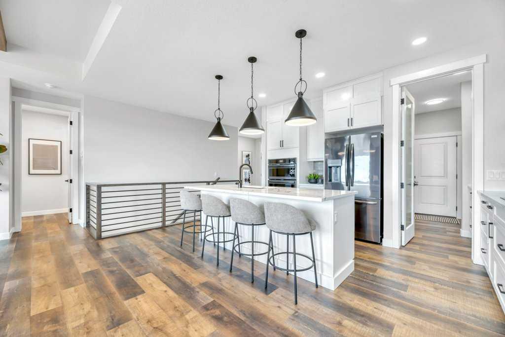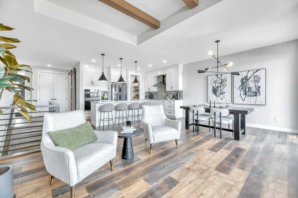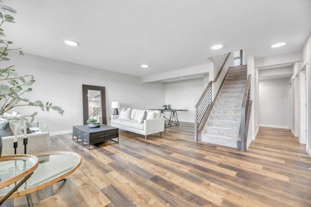 WELCOME HOME--- Thoughtfully designed & Timeless! Check out this CUSTOM BUILT FULLY FINISHED Bungalow Trilogy show home! This home is ready for a family to make it home! From the moment you walk in you are welcomed by all the natural light, and all the views that Lakewood has to offer! Open concept kitchen with tonnes of storage and massive island open to the living room and dining room. Perfect for entertaining! All the details are what take this home to the next level--> CUSTOM there was nothing missed in this curated design from top to bottom! Dining room walks onto the large maintenance free deck that will steal your heart with the views of the pond and the sunsets! The kitchen,dining and living room will capture your attention with the well thought out lighting, and the custom fireplace and the BEAMS!!!- the beams in the living room add extra character and thought! The main floor is complete with walk through pantry, main floor laundry, a huge back porch perfect for busy families! The front room can be used an office or another bedroom. The Primary suite is an oasis - big windows, and a spa like ensuite, and huge walk in closet! Downstairs will not disappoint, 2 huge bedrooms another full bath and a massive family room and games are that walk out to the concrete pad with access to the back yard! Home is complete with Ac! Vinyl plank flooring throughout- upgrades everywhere! Call you Realtor t book your private showing!