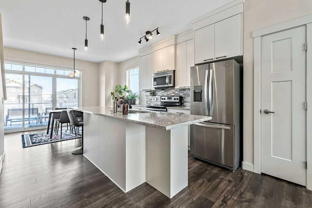 Welcome to 1617 Symons Valley Parkway NW, a stunning corner end unit that combines style, comfort, and convenience in the heart of the sought-after Evanston community. This well-managed condo spans almost 1400 square feet, offering ample space and modern features that cater to both families and professionals alike. As you step inside, you'll be greeted by an open-concept design that seamlessly integrates the living, dining, and kitchen areas. The abundance of natural light flooding through the extra windows highlights the spaciousness of this home, creating a warm and inviting atmosphere. The kitchen boasts ample cabinetry and a large island perfect for casual dining or entertaining guests. This unit features 2 generously sized bedrooms, providing a serene retreat for relaxation. The master bedroom includes a full ensuite bathroom, offering privacy and convenience. The second full bathroom is easily accessible from the other bedroom and common areas, while a well-placed half bathroom adds an extra layer of convenience for guests. One of the standout features of this property is the versatile flex room. Whether you need an additional bedroom, a home office, a fitness room, or a creative studio, this space adapts to your needs, enhancing the functionality of your home. Step outside to the balcony, perfect for barbecuing or enjoying your morning coffee as you take in the fresh air and surrounding views. Winter worries are a thing of the past with the attached single-car garage, ensuring your vehicle stays clean and protected. An additional parking spot on the garage pad provides flexibility for households with multiple vehicles or visiting guests. Location is key, and this condo excels in that regard. Situated in a family-friendly area, you are within walking distance to an array of amenities including Bus Stops (STEPS AWAY), Fresco, No Frills, numerous restaurants, and beautiful walking paths that invite you to explore the outdoors. The convenience of nearby Stoney Trail ensures quick and easy access to all parts of the city, making your daily commute a breeze. This property not only offers a comfortable and stylish living space but also places you in a vibrant community with everything you need right at your doorstep. Don't miss out on the opportunity to make 1617 Symons Valley Parkway NW your new home. Experience the perfect blend of modern living and neighbourhood charm in this exceptional condo.