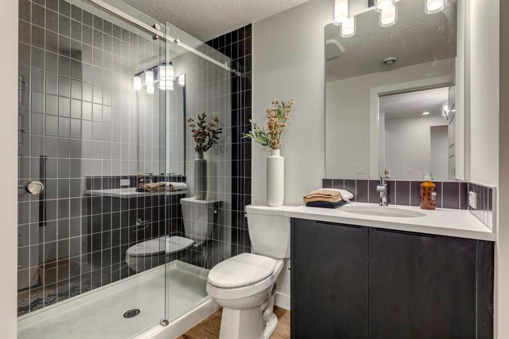 Built by a trusted builder with over 75 years of experience, this home showcases on-trend, designer-curated interior selections tailored for a home that feels personalized to you. Energy efficient and smart home features, plus moving concierge services included in each home. The kitchen offers a functional layout with a central island, chimney hood fan with microwave built into the upper cabinets, gas line for a future range, and a convenient walk-through pantry with broom storage. The main living area is anchored by a cozy electric fireplace, while large additional windows bring in an abundance of natural light. Upstairs, enjoy a vaulted bonus room and a well-appointed 3-piece ensuite featuring a fiberglass base shower with tiled walls, ledge, barn-style glass door, and a bank of drawers in the vanity. The walkout basement includes a 1 BEDROOM LEGAL SUITE, complete with its own kitchen and a stylish bathroom featuring a tiled shower with barn glass door. Additional highlights include LVP flooring throughout the main floor, basement common areas and stairwell, paint grade railing with iron spindles, 9’ basement ceilings, and a rear deck with BBQ gas line rough-in and privacy wall. This energy-efficient home is Built Green certified and includes triple-pane windows, a high-efficiency furnace, and a solar chase for a solar-ready setup. With blower door testing, plus an electric car charger rough-in, it’s designed for sustainable, future-forward living. Featuring a full range of smart home technology, this homesuite includes a programmable thermostat, ring camera doorbell, smart front door lock, smart and motion-activated switches—all seamlessly controlled via an Amazon Alexa touchscreen hub. Photos are a representative.