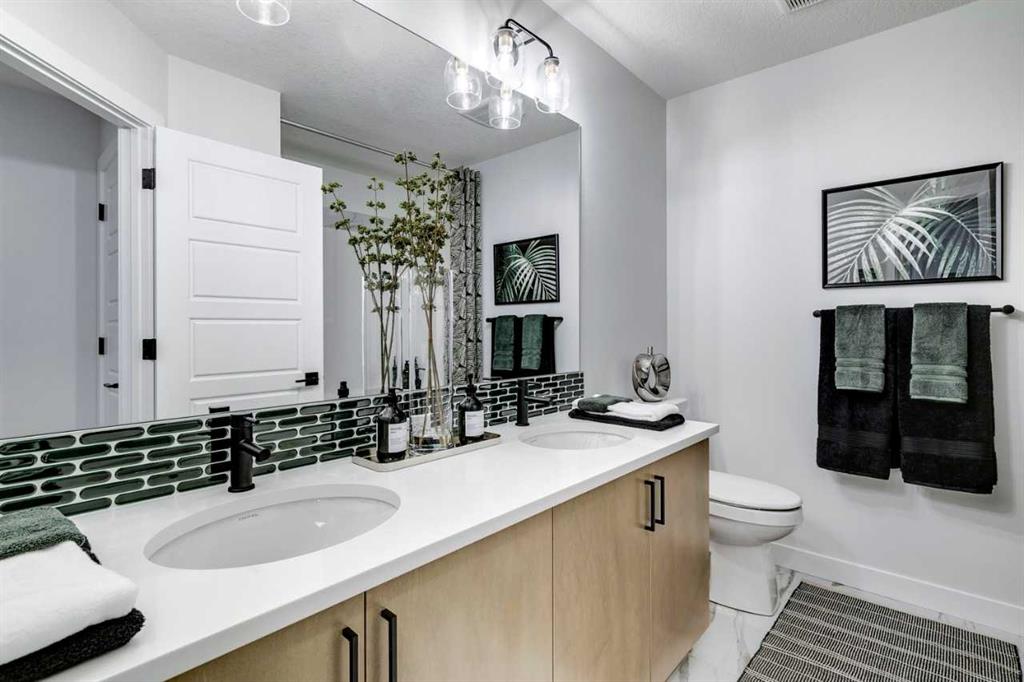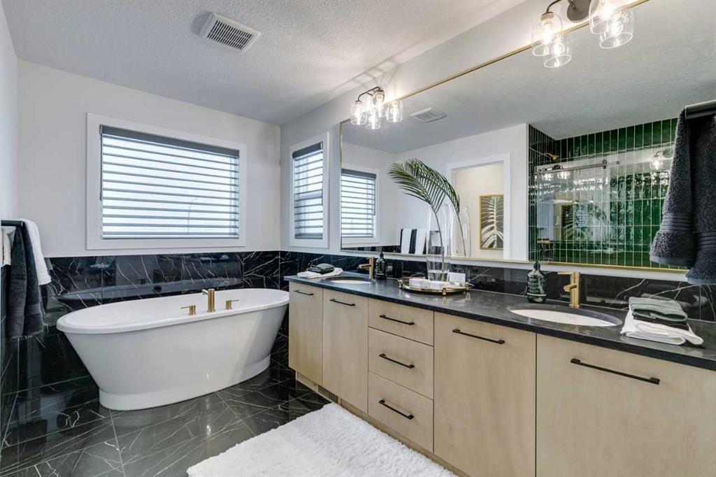 Built by a trusted builder with over 75 years of experience, this home showcases on-trend, designer-curated interior selections tailored for a home that feels personalized. Energy efficient and smart home features, plus moving concierge services included. The executive kitchen is a standout with built-in stainless steel appliances, chimney hood fan, gas cooktop, waterfall edge granite island, pendant lighting, under-cabinet lighting, and a large walk-in pantry with MDF shelving and elegant French door. The main living area offers soaring open-to-above ceilings, a fireplace with tile detail below the mantle. Upstairs, enjoy a vaulted bonus room and a ensuite featuring a fiberglass base shower with tiled walls, niche, tile flooring, and a bank of drawers. The 2 BEDROOM LEGAL SUITE with side entrance and additional windows.. Located on a west-facing backyard lot, this home blends style and function. This energy-efficient home is Built Green certified and includes triple-pane windows, a high-efficiency furnace, and a solar chase for a solar-ready setup. With blower door testing, plus an electric car charger rough-in, it’s designed for sustainable, future-forward living. Featuring a full range of smart home technology, this home includes a programmable thermostat, ring camera doorbell, smart front door lock, smart and motion-activated switches—all seamlessly controlled via an Amazon Alexa touchscreen hub. Photos are representative.