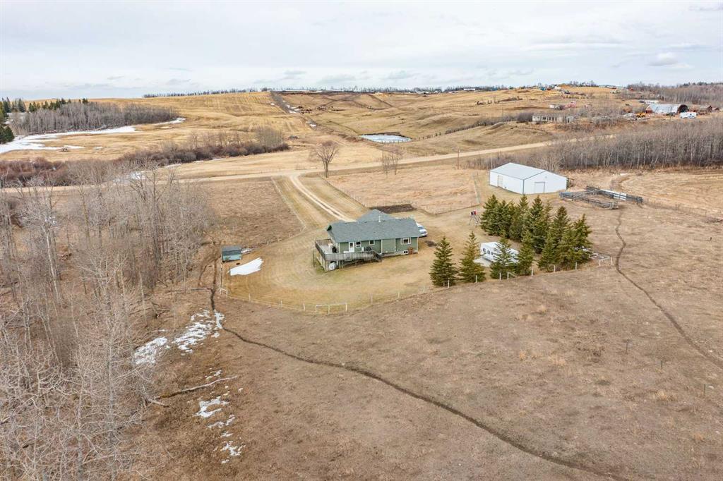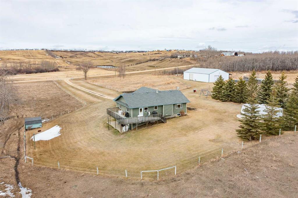 Acreage living at its finest! This stunning bungalow with a fully developed walkout basement is perfectly situated on 20 acres zoned AG, just 15 minutes from Lacombe—offering the ideal blend of privacy, space, and convenience. Custom built and thoughtfully designed, the home features an open-concept kitchen, dining, and living area with expansive windows that capture breathtaking views to the east, south, and west. The main floor offers 1,284 sq ft of comfortable living space, while the walkout basement adds an additional 1,180 sq ft, complete with three additional bedrooms (5 total), a 3-piece bathroom, large family room, and utility/laundry area—perfect for growing families or hosting guests. Step outside and enjoy peaceful country living from the east-facing deck, ideal for morning coffee, while the west-facing views from the living room provide unforgettable sunset backdrops. The property is well-equipped for hobbyists, farmers, or entrepreneurs with a 40’ x 60’ shop, offering ample space for equipment, storage, or workspace. Whether you’re looking to raise a family, escape the city, or downsize from a larger farm, this versatile and beautifully located acreage checks all the boxes. Move in and enjoy your summer on the acreage you’ve been waiting for!