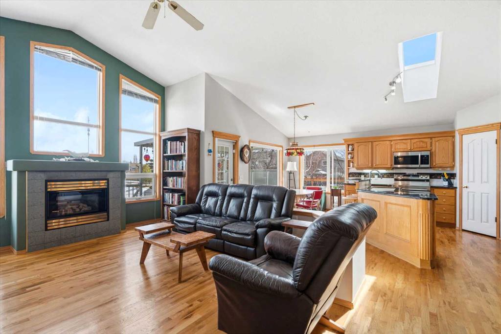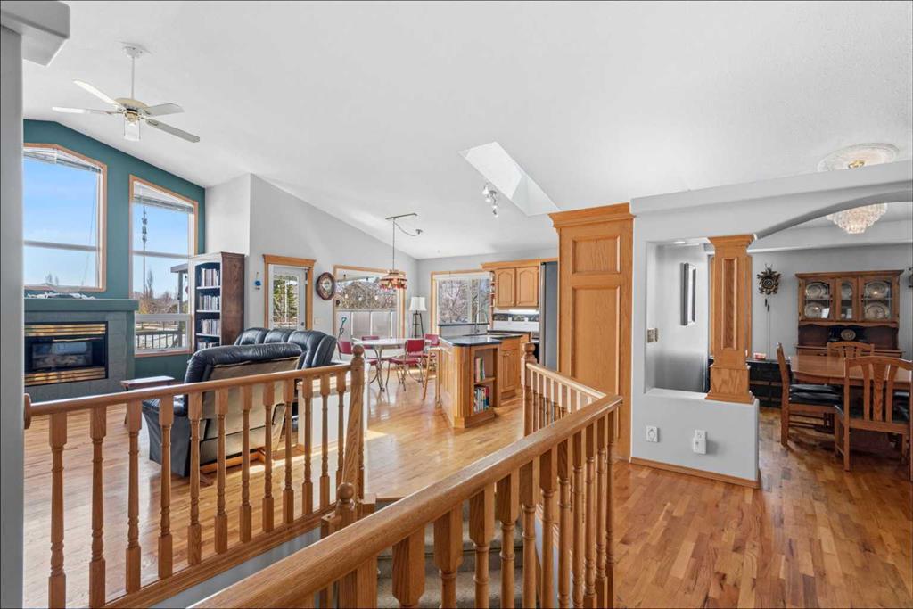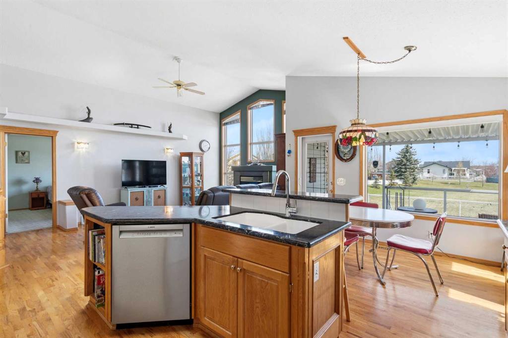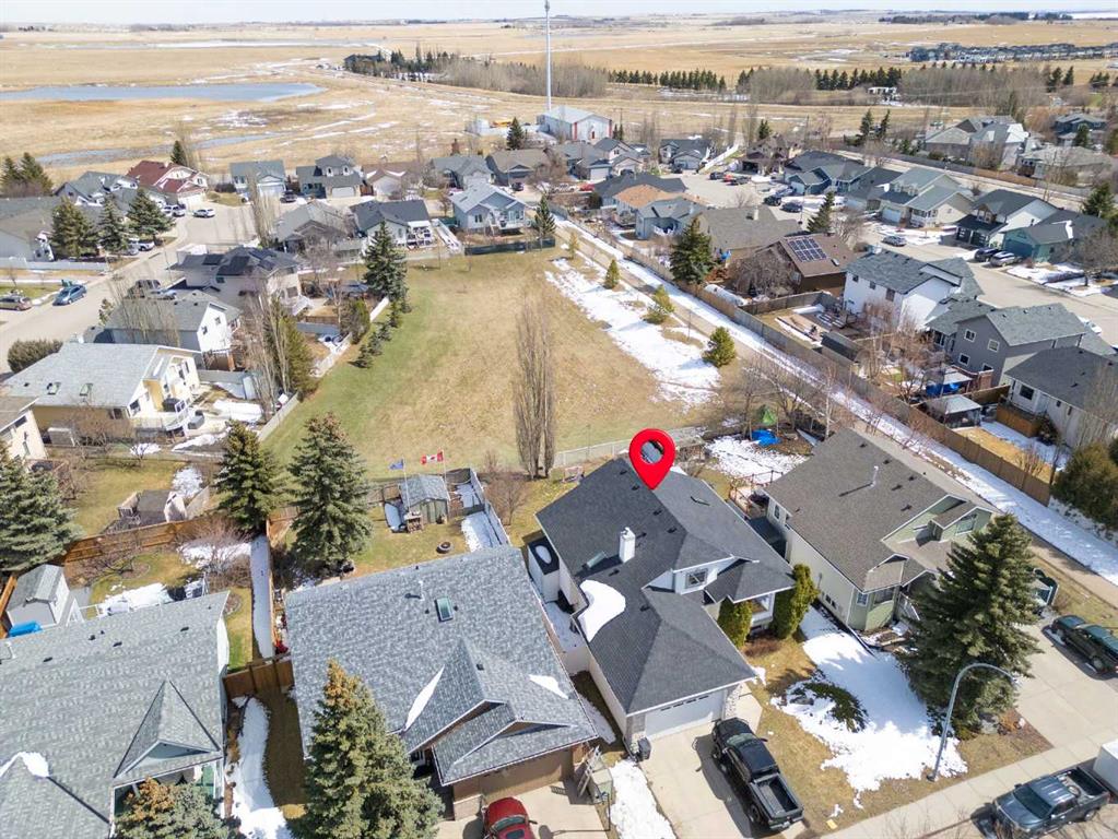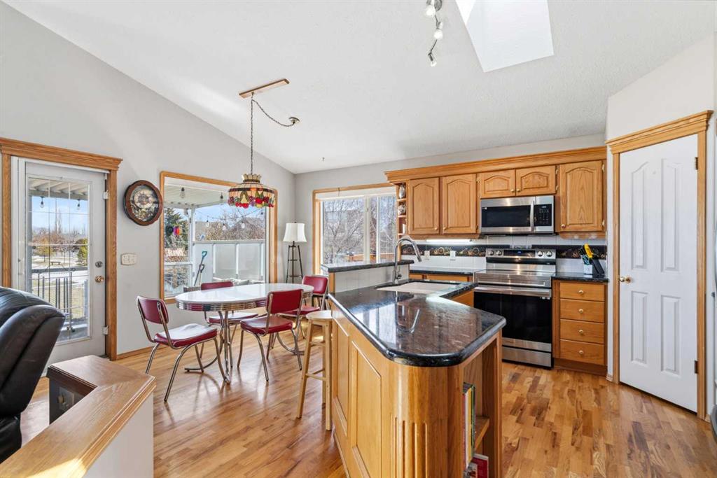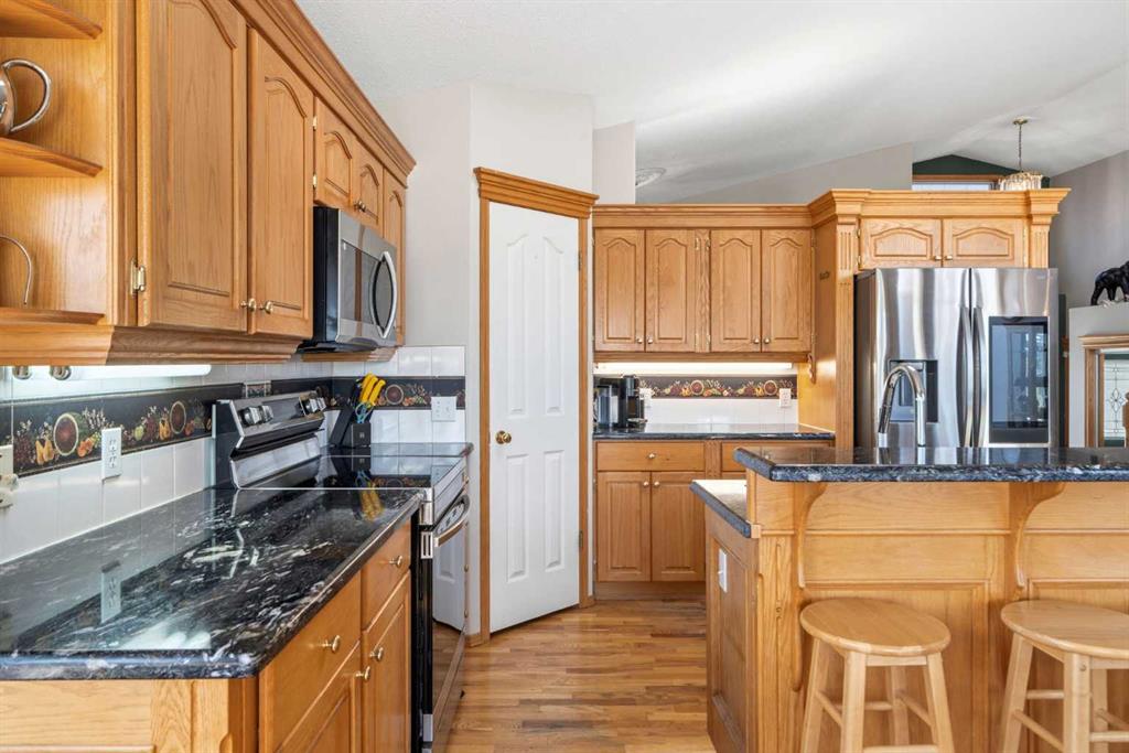 Welcome to this exceptional raised bungalow in the sought after community of Cambridge Glen in Strathmore, an ideal home for the discerning buyer seeking space, quality & a truly special setting. Backing directly onto a massive green space & park, this beautifully maintained & updated residence offers 1,482 sq. ft. above grade & 1,298 sq ft of professional development in the lower level, delivering outstanding functionality for families of all sizes. From the moment you arrive, the home’s curb appeal, featuring stone trim detail & an oversized, double-attached garage with direct interior access & thoughtful built-in storage, sets the tone for what lies within. Inside, the bright, open concept layout greets you, enhanced by soaring vaulted ceilings, new skylights, solid hardwood flooring & expansive windows that flood the home with natural light. The main floor is designed for both everyday comfort & elegant entertaining. A stunning great room features a cozy gas fireplace & a full wall of windows overlooking the park behind, while a formal dining room with artistic pillar detailing adds a touch of sophistication. The spacious kitchen is well appointed with granite countertops, newer stainless steel appliances, including a side-by-side fridge with front display, ample solid oak cabinetry, a central island with a raised eating bar, a corner walk-in pantry & an adjacent spacious nook area surrounded by windows. The primary suite is a true retreat, showcasing vaulted ceilings, a spacious walk-in closet & a luxurious 4 piece ensuite complete with a deep soaker tub, plus a separate shower & water closet area. A second main floor bedroom, also ideal as a home office, along with convenient main floor laundry enhances the home’s versatility. The raised bungalow design & oversized windows make the lower level incredibly bright & inviting, offering incredible additional living space. Here you’ll find three generous bedrooms, a large recreation and games area (perfect for a pool table or movie nights), a full 3-piece bathroom & abundant additional storage. Step outside to your private backyard oasis. The covered composite deck overlooks a beautifully landscaped, fully fenced yard that seamlessly extends into the expansive park / green space beyond, connecting you to many parks including Dinosaur Hill - an unbeatable setting for families, entertaining, or simply enjoying the outdoors. This home has been meticulously maintained & thoughtfully upgraded. Updates include new shingles (2025), fresh interior paint (2026), newer appliances, furnace serviced & air ducts cleaned(2025), water tank (2023), updated skylights (2023), removal of all Poly-B plumbing, central A/C, central vacuum & underground irrigation. With five bedrooms, 2.5 bathrooms, multiple living & entertaining spaces, plus a premium park location, this home offers an exceptional balance of luxury, practicality & lifestyle. Close to schools, pathways, recreation facilities, shopping, hospital, golf course