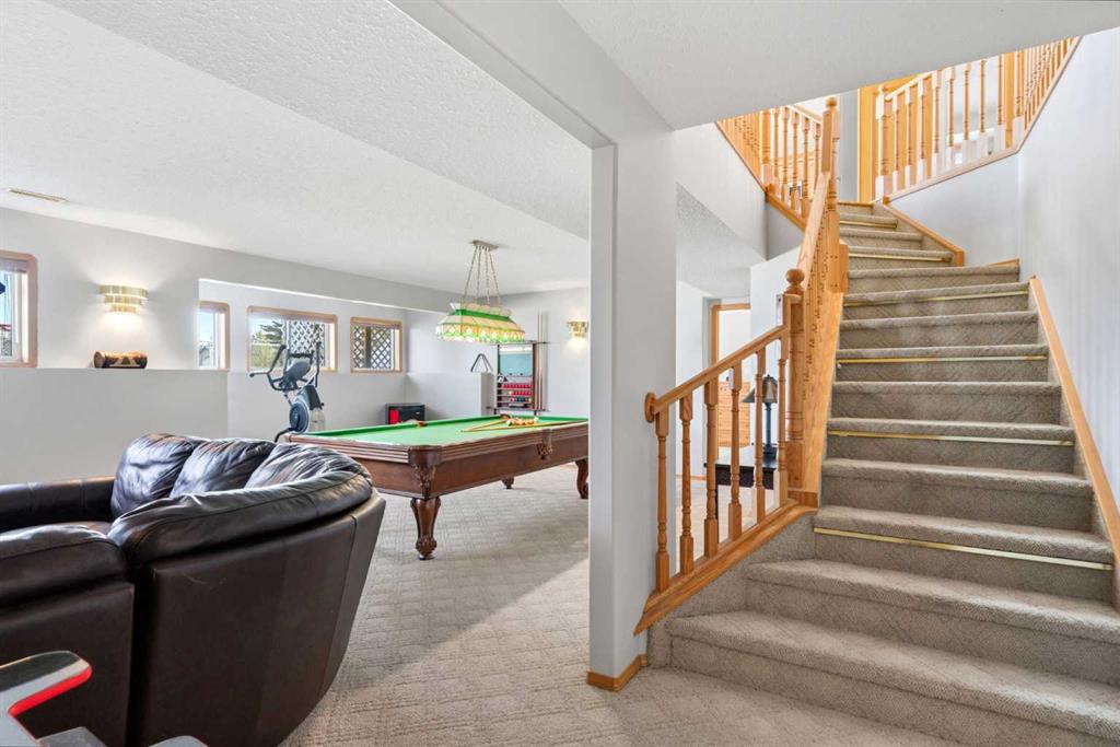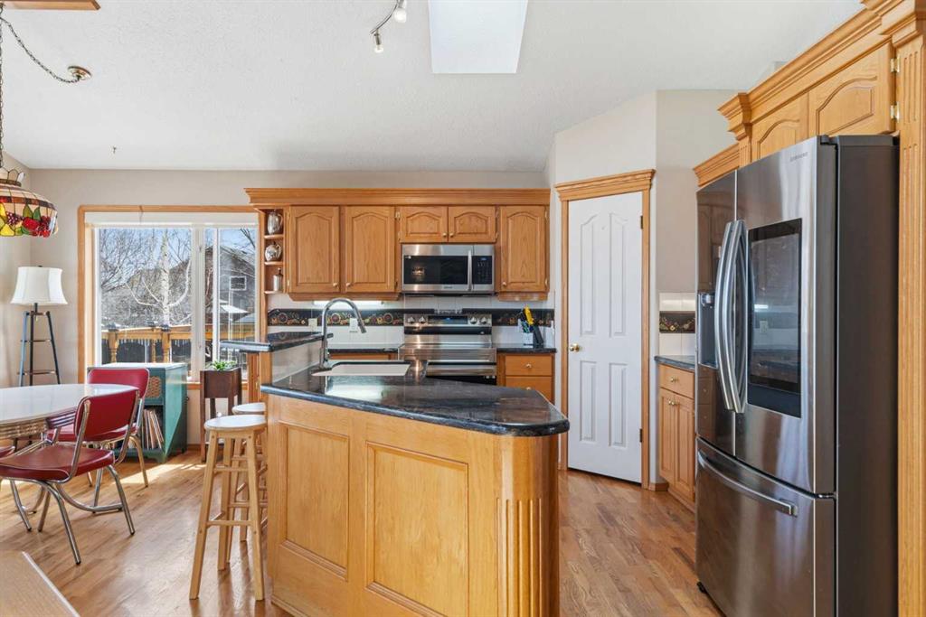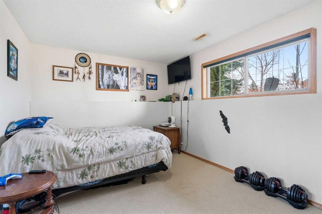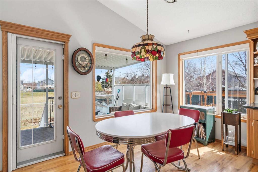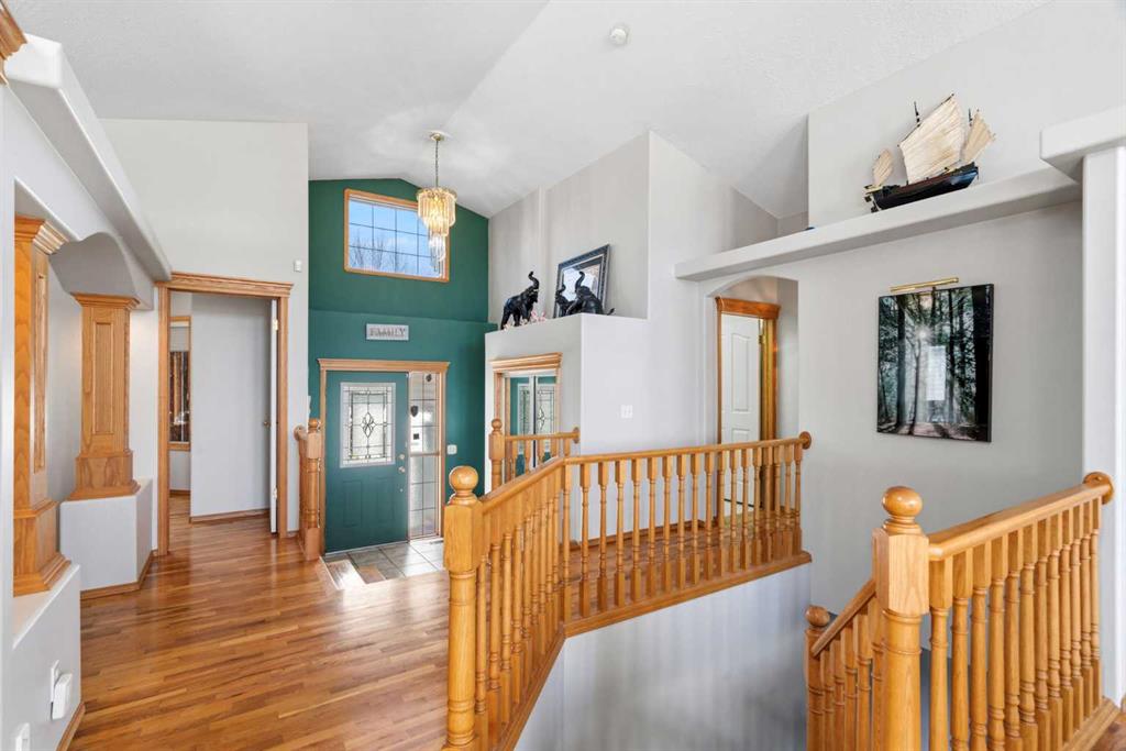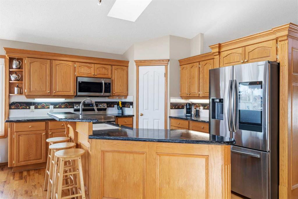 Welcome to this exceptional raised bungalow in the sought after community of Cambridge Glen in Strathmore, an ideal home for the discerning buyer seeking space, quality & a truly special setting. Backing directly onto a massive green space & park, this beautifully maintained & updated residence offers 1,482 sq. ft. above grade & 1,298 sq ft of professional development in the lower level, delivering outstanding functionality for families of all sizes. From the moment you arrive, the home’s curb appeal, featuring stone trim detail & an oversized, double-attached garage with direct interior access & thoughtful built-in storage, sets the tone for what lies within. Inside, the bright, open concept layout greets you, enhanced by soaring vaulted ceilings, new skylights, solid hardwood flooring & expansive windows that flood the home with natural light. The main floor is designed for both everyday comfort & elegant entertaining. A stunning great room features a cozy gas fireplace & a full wall of windows overlooking the park behind, while a formal dining room with artistic pillar detailing adds a touch of sophistication. The spacious kitchen is well appointed with granite countertops, newer stainless steel appliances, including a side-by-side fridge with front display, ample solid oak cabinetry, a central island with a raised eating bar, a corner walk-in pantry & an adjacent spacious nook area surrounded by windows. The primary suite is a true retreat, showcasing vaulted ceilings, a spacious walk-in closet & a luxurious 4 piece ensuite complete with a deep soaker tub, plus a separate shower & water closet area. A second main floor bedroom, also ideal as a home office, along with convenient main floor laundry enhances the home’s versatility. The raised bungalow design & oversized windows make the lower level incredibly bright & inviting, offering incredible additional living space. Here you’ll find three generous bedrooms, a large recreation and games area (perfect for a pool table or movie nights), a full 3-piece bathroom & abundant additional storage. Step outside to your private backyard oasis. The covered composite deck overlooks a beautifully landscaped, fully fenced yard that seamlessly extends into the expansive park / green space beyond, connecting you to many parks including Dinosaur Hill - an unbeatable setting for families, entertaining, or simply enjoying the outdoors. This home has been meticulously maintained & thoughtfully upgraded. Updates include new shingles (2025), fresh interior paint (2026), newer appliances, furnace serviced & air ducts cleaned(2025), water tank (2023), updated skylights (2023), removal of all Poly-B plumbing, central A/C, central vacuum & underground irrigation. With five bedrooms, 2.5 bathrooms, multiple living & entertaining spaces, plus a premium park location, this home offers an exceptional balance of luxury, practicality & lifestyle. Close to schools, pathways, recreation facilities, shopping, hospital, golf course