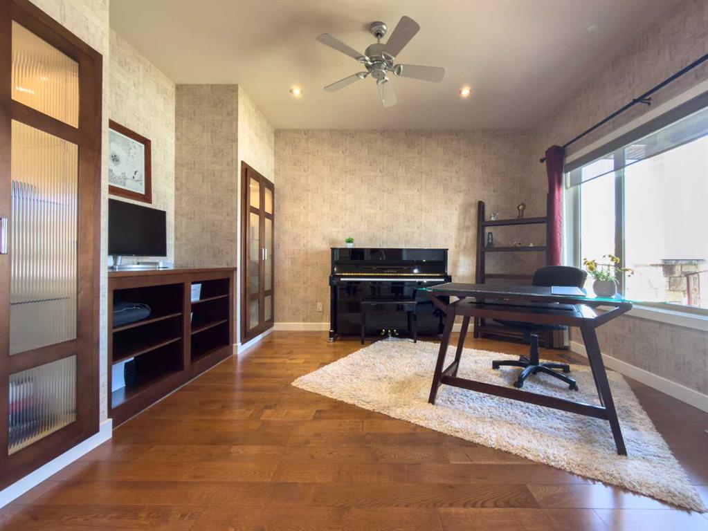 Experience refined luxury in this executive-style former Galko show home — a masterful blend of elegance, comfort, and exceptional design. Boasting over 4,000 sq. ft. of premium living space, including a bright walkout basement, this meticulously crafted residence offers breathtaking views of the lake and waterfall. Inside, you'll find rich hardwood floors, granite countertops, and a chef-inspired kitchen complete with a brand-new gas range, dual dishwashers, and generous prep and entertaining space. The dual-zone HVAC system,along with a furnace and hot water tank both approximately 3 years old, ensures efficient, year-round comfort throughout the home. The spa-inspired primary ensuite invites you to unwind with a marble shower and jacuzzi tub — your personal retreat for relaxation and rejuvenation. The fully finished walkout lower level is designed for entertaining and leisure, featuring a state-of-the-art theatre room, a fully equipped gym, wet bar, and a cozy gas fireplace. Another elegant fireplace graces the main living area, enhancing the home’s warmth and ambiance. Additional upgrades include brand-new carpeting throughout the basement, a new water softener, and numerous thoughtful touches that elevate both function and style. Located in the prestigious Paradise Canyon community, this one-of-a-kind property exemplifies upscale living at its finest — a true sanctuary of sophistication.
