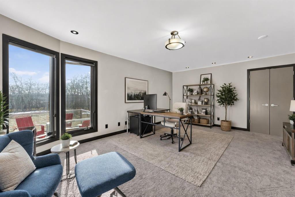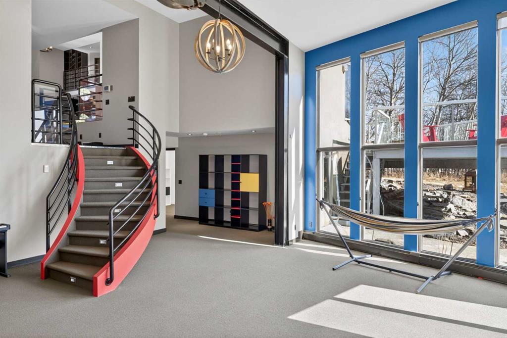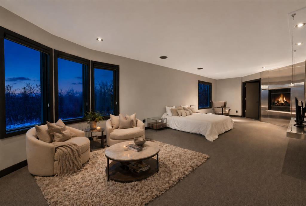 A legacy estate on 2 private acres in the exclusive Westbluff enclave — 8,000+ sq ft of architect-driven living just 20 minutes from downtown Calgary. Families are drawn here for the schools. Springbank High sits minutes away, with West Calgary's most sought-after options close at hand — Webber Academy, Rundle College, Calgary Academy — plus international French education. Private school pickup can arrive right at the door. Premium shopping and dining at Aspen Landing and West Springs are a short drive, and the Rockies are a direct route when it's time to escape. Soaring ceilings and walls of glass frame the grounds like living art. The chef's kitchen is equipped for any occasion — Sub-Zero, Gaggenau and Thermador appliances, a walk-in pantry, dramatic island, and exposed steel beams overhead. Open living and dining spaces flow to the patio for effortless indoor-outdoor entertaining. Upstairs is a true family retreat. The primary suite offers a sitting area, glass French doors, a double-sided fireplace, heated floors, his-and-hers vanities, and a 5-piece ensuite with steam shower and air-jet tub, alongside a walk-in built for serious wardrobes. Two additional bedrooms each feature their own 4-piece ensuite and walk-in, plus a library nook for study. The walkout lower level expands the lifestyle — heated floors throughout, a wet bar with tiered glass counter, another bedroom, a home gym that can function as a bedroom if needed, and large windows opening directly to the yard. Ample room to host, create, or carve out gym and studio zones. A main-floor executive office with closet and garden-facing windows offers flexibility — a second home office, guest space, or main-floor bedroom. The tiered seating theatre room is the ideal space to watch movies as a family. A separate multi-level industrial-chic office with exposed I-beams supports remote work or client meetings and the loft space is the perfect creative space for a home podcast or art studio. Outside the expansive decks, manicured grounds, and BBQ gas line create the ideal spot to entertain friends and family while enjoying the private greenery that surrounds you. Minutes to downtown. A direct route to the Rockies. Surrounded by top-tier schools and West Calgary's finest amenities. 43 Westbluff Place is a future-ready Springbank estate for families who think long-term and live intentionally.