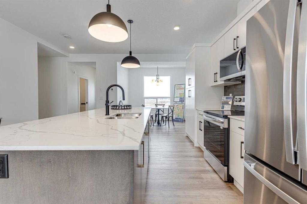 NO CONDO FEES! Stylish, modern 2 Storey Townhomes in the new area of Laredo. Say Goodbye to the stress of older homes & get Alberta New Home Warranty plus additional builder warranty on these Brand New homes built by Asset Builders Corp. Step onto your 7'x7' composite front SW deck, into your spacious entry & you are greeted by a bright & spacious open layout on this main floor. Check out all the natural sunlight through these large energy efficient triple pane windows & you will love this amazing vinyl plank flooring throughout w/cushy carpet in the bedrooms upstairs. The kitchen is the heart of the home, with a large island w/extended Quartz countertop (perfect for your stools, kids homework sessions, or long chats while cooking), built in pantry area, & 4 Stainless appliances included. Dining room will fit your large tables & extra family members. The favorite room of all parents out there is this separate mudroom w/half bath @ the back door that leads to your 10'6"x 10' NE facing back deck w/aluminum railing & yard, with fence between neighbors (done down sides only with back section open) with 2 car parking off the back lane. Upstairs you will find the area for your future washer & dryer, 2 good sized bedrooms, a full main bath + a primary bedroom that features a large walk in closet & full 4 piece ensuite. Extra bonus is the huge hallway closets that make the best use of space! Downstairs is open for your inspiration...planned for future bdrm, bath & family room w/plenty of natural light & extra storage. High efficient furnace & 80 gallon HWT so you never run out of hot water! GST included w/rebate to builder. This family neighborhood that's close to shopping, food & walking trails, parks & school areas! Single detached garage could be built in future. Interior finished pictures are from previous unit with the exact same layout & similar colors, currently under construction!!