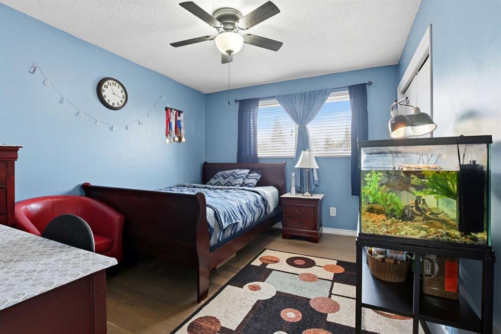 Welcome to this well-maintained 4-level split in a family-friendly area of Olds, backing directly onto the highly sought-after Frank Wong Park. With 4 bedrooms, 2 full bathrooms, and approximately 1,300 sq.ft. of living space, this home offers a functional layout that works especially well for young families. The main level features a bright kitchen, dining, and living area highlighted by large south-facing windows that flood the space with natural light. Mature spruce trees in the front yard provide added privacy and shade, creating a comfortable and inviting atmosphere throughout the day. Upstairs, you’ll find three bedrooms and a full bathroom, while the basement level offers a great family hangout space—currently set up as a kids’ rec room—along with a fourth bedroom and an additional full bath. The lowest level remains unfinished but includes large south-facing windows, offering excellent potential for future development with plenty of natural light. Over the past few years, the home has seen several updates, including fresh paint, flooring improvements, and some newer appliances. The roof and shingles are in great condition, adding peace of mind for the next owner. Outside, the property features a driveway with an attached carport and a spacious backyard with ample room to build a garage if desired. Included in the purchase is a large, newer garden shed, which is fantastic for extra storage! The direct access to Frank Wong Park is a standout feature, offering playground equipment and a popular toboggan hill just steps from your backyard. A solid home in a great location with room to grow—this is one you won’t want to miss.