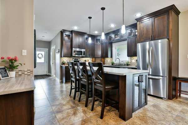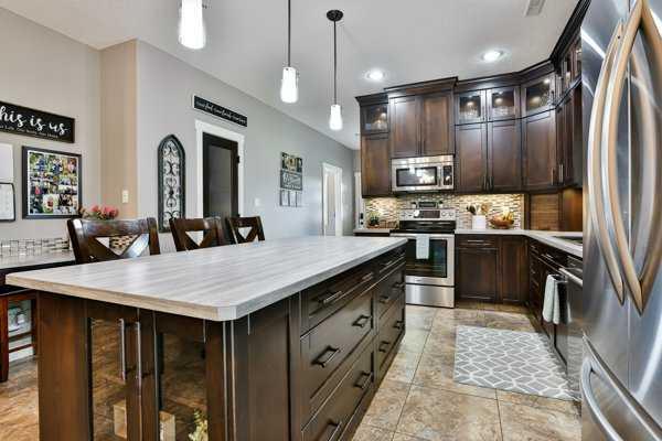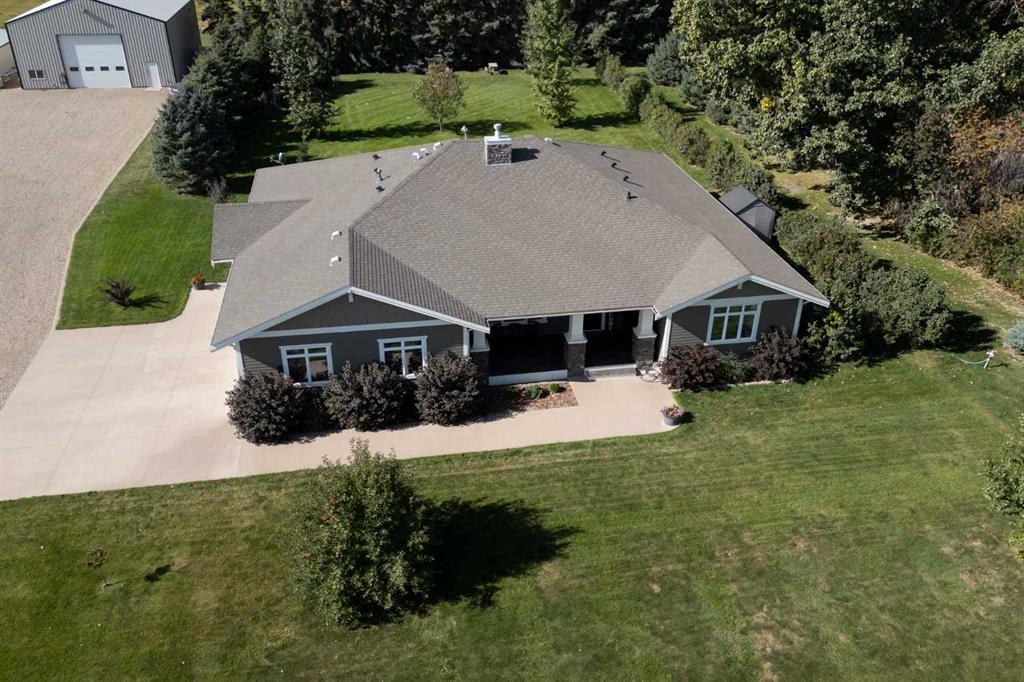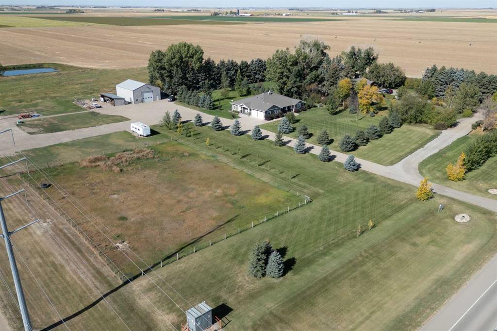 Welcome to your private acreage retreat just north of Coaldale along Highway 845. Nestled on 5.61 acres, this beautifully maintained property offers the perfect balance of peaceful country living, functional space, and modern comfort. This spacious bungalow features 3 bedrooms and 2.5 bathrooms all on one level—no basement—making it ideal for convenient, accessible living. The open-concept design creates a bright and inviting atmosphere, highlighted by hardwood and tile flooring, a cozy gas fireplace, and a thoughtfully designed layout perfect for both everyday living and entertaining. The heart of the home is the expansive kitchen, complete with a massive island, walk-in pantry, stainless steel appliances, and a built-in desk area. The adjoining dining space offers plenty of room for a large table with the flexibility to expand for gatherings. The primary suite is a true retreat, featuring a huge walk-in closet and a gorgeous ensuite with double sinks and a spacious walk-in shower. Step outside and take in the stunning surroundings. The front porch overlooks a beautifully landscaped yard with mature trees, while the back porch has a fully screened in hot tub area—accessible from the primary bedroom—creating a private space to relax year-round. The backyard is peaceful and quiet, complete with an entertaining area with ample space for seating and BBQs, plus a firepit area and plenty of room for kids, family, and pets to enjoy. Functionality meets versatility with the attached double garage and a well-appointed mudroom, along with a dedicated laundry room featuring built-in cupboards. The impressive 40’ x 50’ heated shop is fully equipped with a bathroom with shower, laundry area (washer), central vacuum, office space, tool room, and extensive storage—ideal for hobbyists or business use. With subdivision potential and room to grow, this exceptional acreage offers a rare opportunity to enjoy space, privacy, and a serene lifestyle just minutes from town.