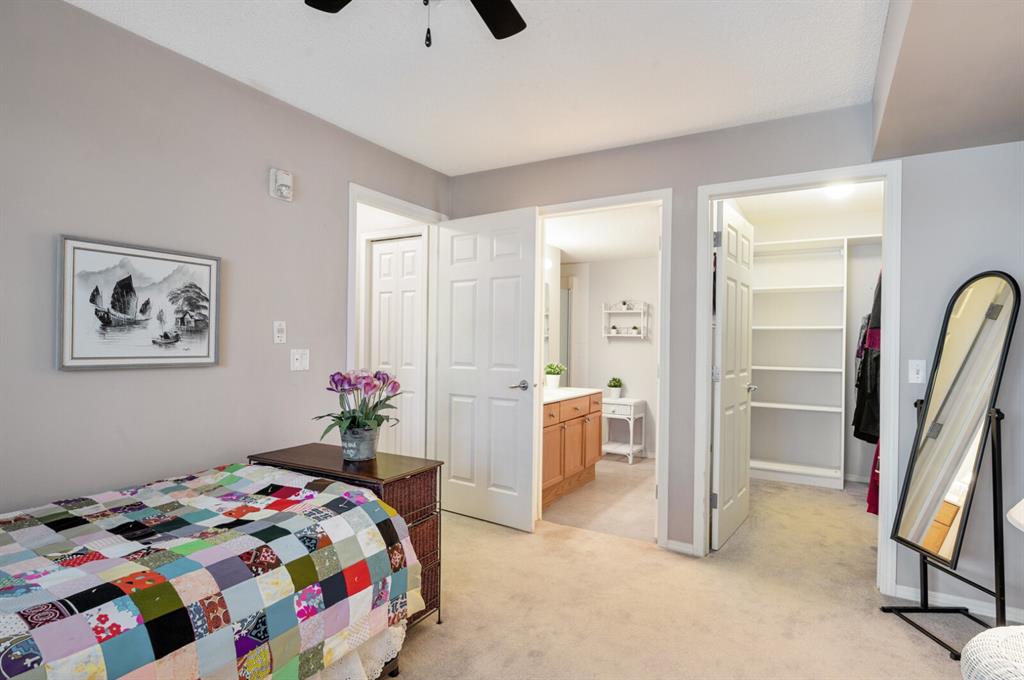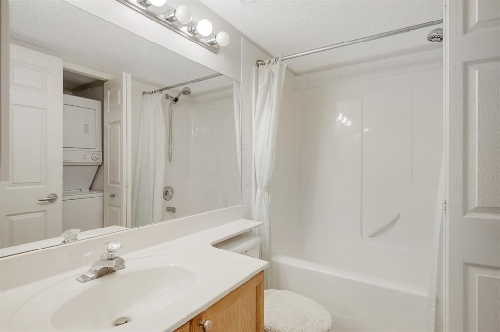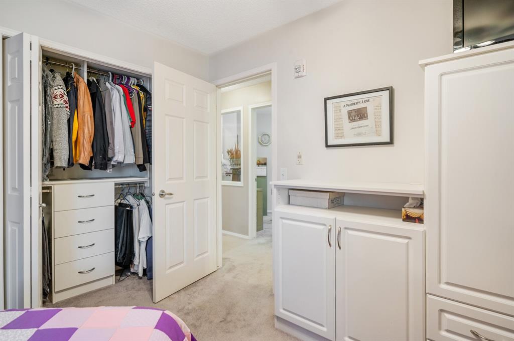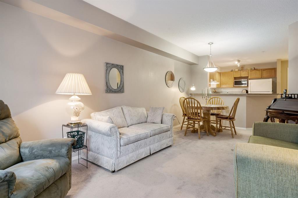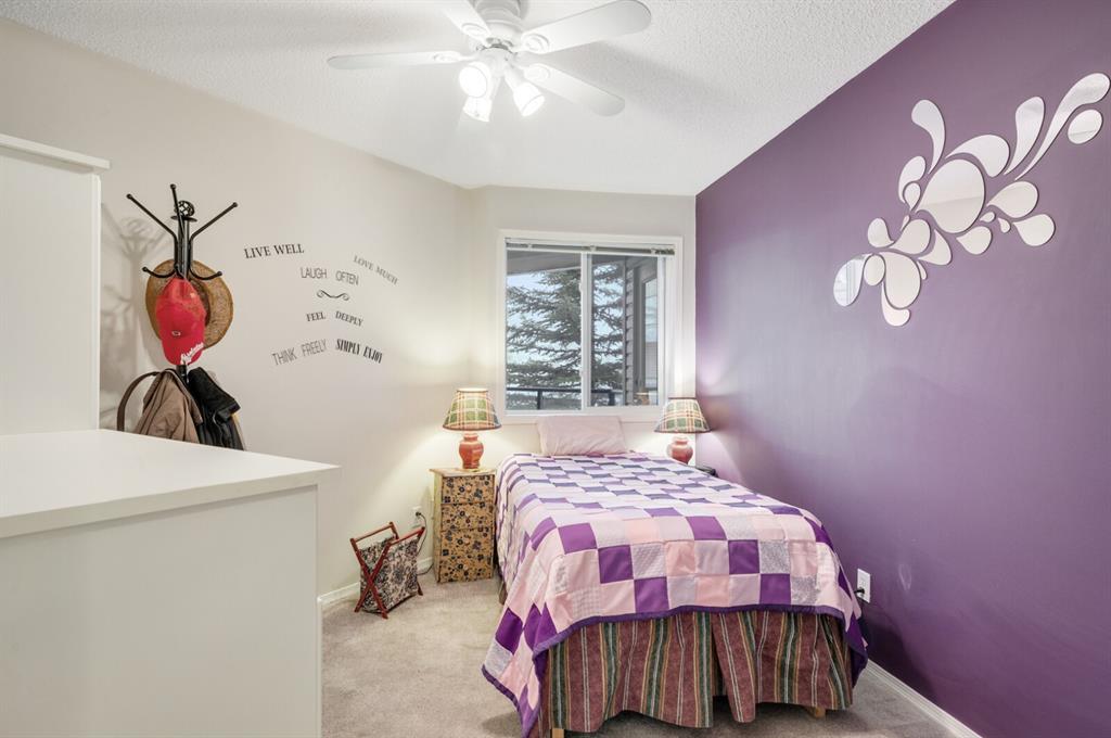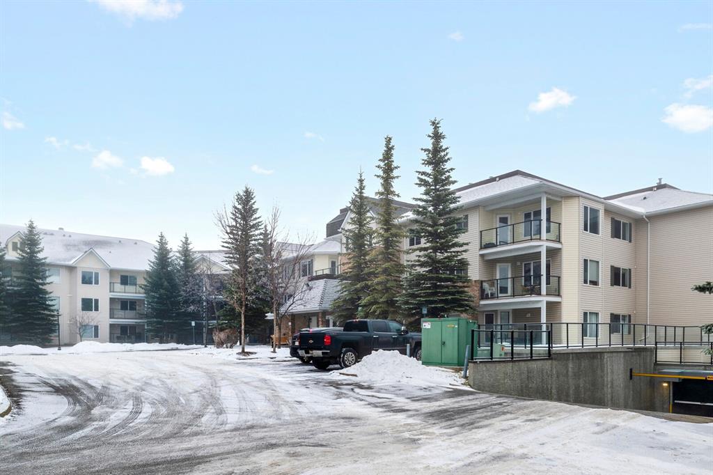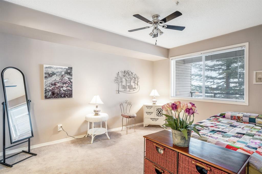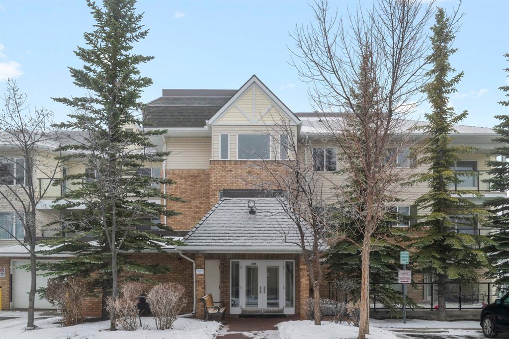 Welcome to this 2 bedroom plus den 2 bathroom in sought after Arbour Lake Landing. Note the pride of ownership as you enter. This home boasts an open kitchen with raised eating bar, dining area and large living room. The living area opens out to the spacious and very private deck (11'2"x7'8") nestled in the evergreens. The master bedroom has a large walk-in closet with beautiful built in shelving with organizer and 3 piece en suite with shower. The second bedroom offers a custom built in cupboard in addition to a closet organizer. Enjoy additional space in the den or flex room with glass window allowing light to flood the den from the hallway. A four piece bath finishes this area There is an underground assigned parking space #262 conveniently located close to the elevator, storage locker #30, bike rack, along with exercise/amenities room located off the parkade just steps from the elevator. Close to all amenities including: Arbour Lake offering boating, swimming, paddle boarding, kayaking, skating and tennis, pickleball & tennis courts (your HOA allows you access to Arbour Lake), Crowfoot Center with shopping and restaurant, YMCA, and c-train.