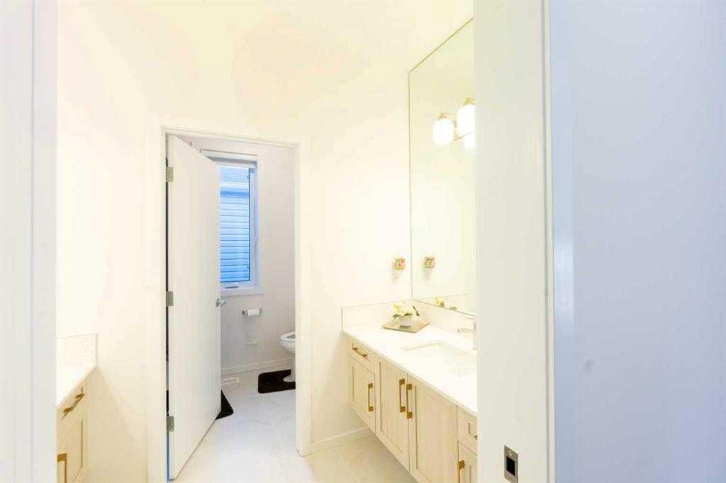 Welcome to 228 Windrow Link SW — a rare opportunity to own one of the most private and premium walkout lots in the community, backing directly onto a peaceful pond with unobstructed water views and facing a park right out front. No homes in front. No homes behind. Just open space, light, and privacy — something buyers chase but rarely find. From the moment you walk in, the home feels different. The open-concept main floor is filled with natural light from both directions, creating a bright, airy space that actually feels like a home — not just another listing. The great room is designed to stand out, featuring a sleek electric fireplace with a bold black accent wall, giving it a clean, modern edge without losing warmth. The kitchen is where this home separates itself. At the center is a custom oversized quartz island with soft curved edges — a detail you almost never see, and one that completely changes how the space feels. It’s built for real living — whether that’s hosting friends, family dinners, or everyday moments. Paired with full-height cabinetry, built-in appliances, and a modern finish, the entire kitchen delivers both style and function. And then there’s the spice kitchen — a feature buyers immediately understand the value of. Cook freely, entertain cleanly, and keep your main space looking perfect. A main floor office adds flexibility for remote work, business use, or a quiet study space. Upstairs, you’ll find four generously sized bedrooms, including a comfortable primary retreat with a walk-in closet and private ensuite — designed for both privacy and everyday convenience. The layout works especially well for growing families or multigenerational living. The walkout basement is where the opportunity really opens up — whether you’re thinking future development, extended family living, or additional income potential (subject to approvals). Step outside onto your glass-railed deck and take in the full pond view — this is the kind of setting that turns a house into a lifestyle. Morning coffee, evening sunsets, complete privacy. It’s a premium lot, a functional layout, and a lifestyle upgrade — all in one of Airdrie’s most desirable communities.