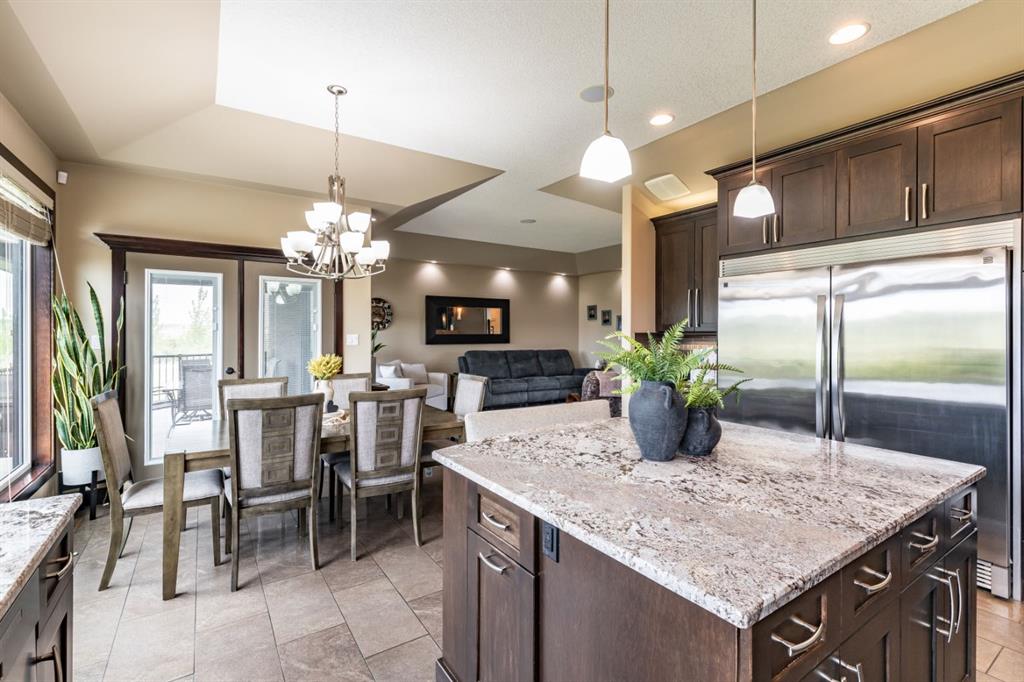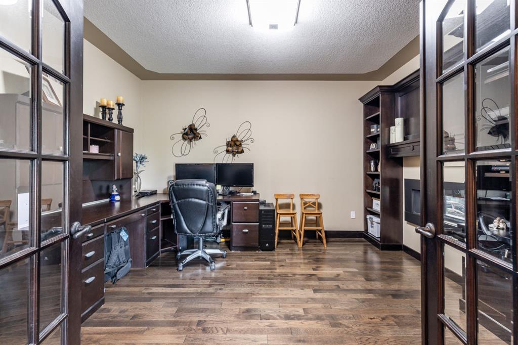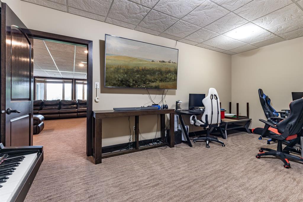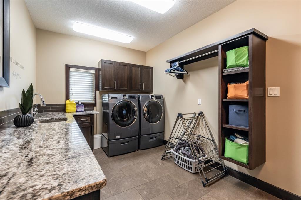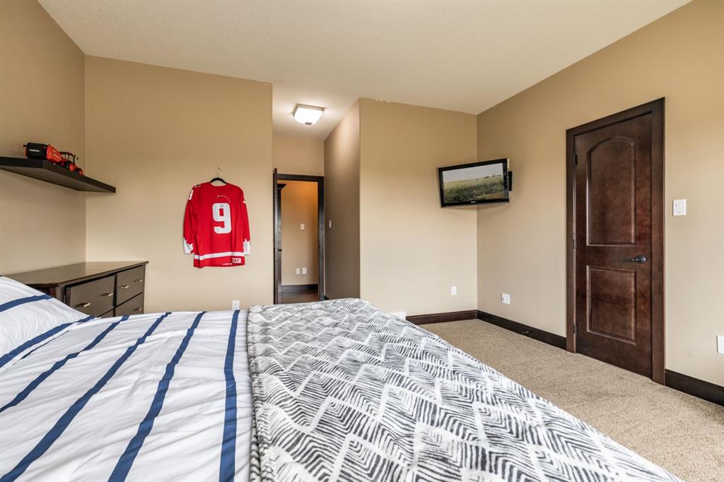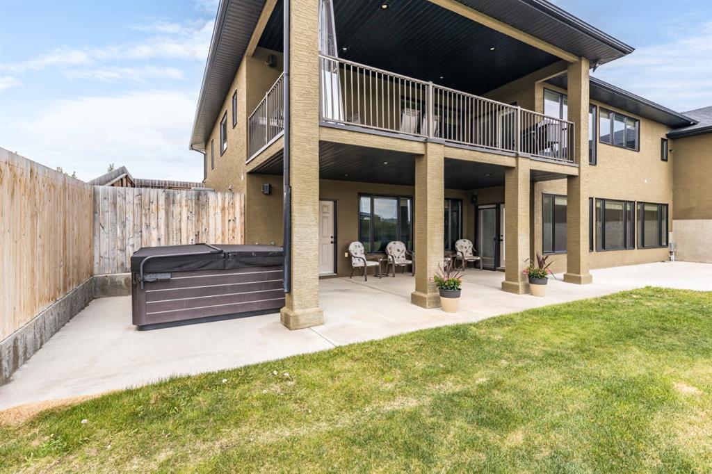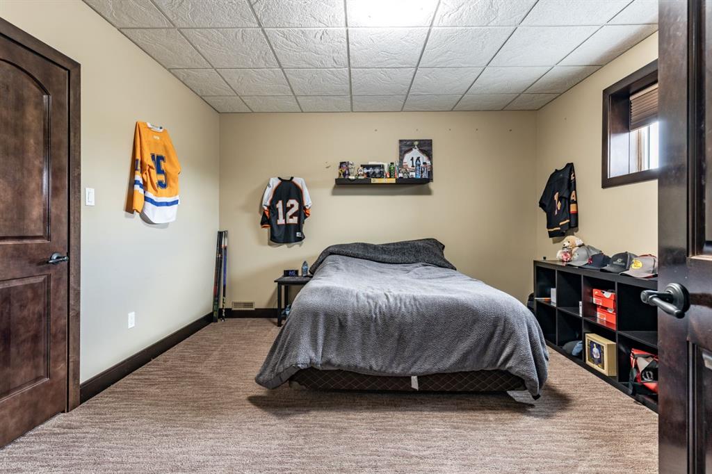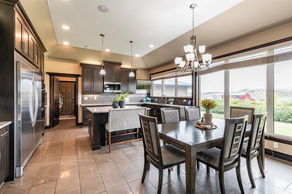 Refined Living. Expansive Land. Unmatched Opportunity. Welcome to an exceptional, meticulously maintained acreage just minutes from the city, offering a rare combination of luxury living, functional infrastructure, and breathtaking views. This impressive 2,522 sqft walkout bungalow is thoughtfully designed with 5 bedrooms, an office, den, and 4 full bathrooms, delivering both comfort and versatility. From the moment you arrive, the pride of ownership is evident. Step inside to a bright, open-concept main floor featuring 9 ft ceilings, tray ceiling detail, rich hardwood flooring, and expansive windows that frame the stunning landscape. A striking double-sided stone fireplace anchors the living space and connects seamlessly to the private office, complete with French doors, built-in desk, shelving, and cabinetry. The chef-inspired kitchen is truly a showpiece, offering a double oven, oversized fridge/freezer, prep island, and abundant cabinetry, all flowing effortlessly into the dining area where oversized windows showcase incredible views. Step out onto the covered deck with gas BBQ hookup—an ideal setting for summer dining and entertaining. Designed for everyday ease, the spacious laundry and mudroom includes a sink, ample counter space, and direct access to the walk-through pantry and attached quad garage. The primary suite is a true retreat, featuring generous space for a sitting area, a spa-like 4 pc ensuite, and a large walk-in closet. An additional bedroom and full bathroom complete the main level. The walkout basement is equally impressive, offering a massive recreation room with wet bar, direct access to the covered patio and hot tub area, a large den perfect for a home gym or media space, 2 additional bedrooms, 2 full bathrooms, and substantial storage. Set on 4.1 acres and zoned Country Residential, this property is fully equipped for a range of rural lifestyles and business opportunities. The land includes all fencing, corrals, and a stock waterer. Outbuildings are a standout feature, including an 80’x40’ insulated shop with two overhead doors and a 2 pc bathroom, a 50’x30’ insulated shop, and a 21’x26’ shop—providing exceptional flexibility for work or storage needs. This is a rare opportunity to own a turn-key acreage that seamlessly blends upscale living with the freedom and functionality of country life, just a short drive from city amenities. This property must be sold with attached 74.7 acre Agricultural land; MLS A2303885. Asking price includes both properties.
