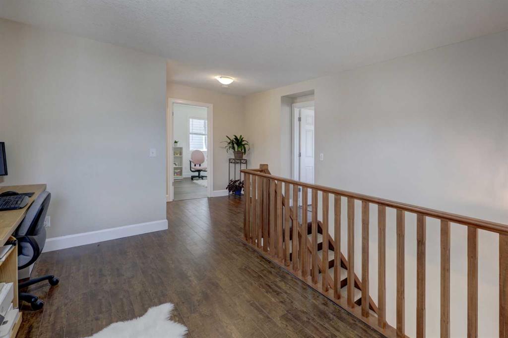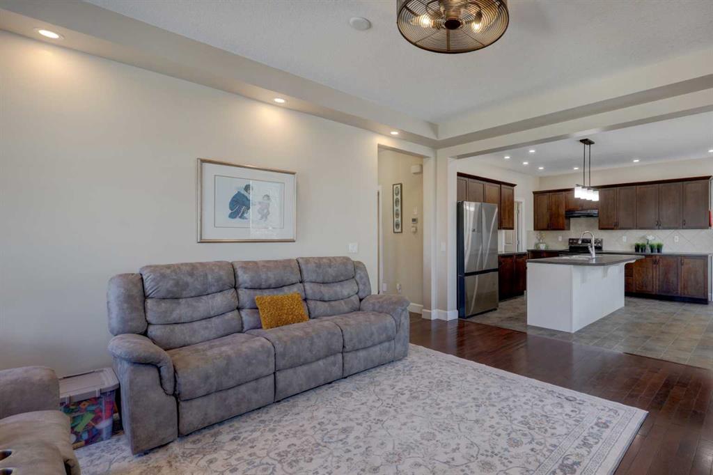 Welcome to this wonderful FAMILY home being offered for sale by its original owners. This 4 bed, 3.5 bath home has over 2825 sq ft developed & has a nice set up for extended family to live downstairs if desired. One of the perks of this property is the location - the corner lot leaves lots of room for street parking as well as a good sized backyard & you are within walking distance to the Windsong school (but far enough away to avoid some of the school traffic). You also have close proximity to the amenities of COOPER’S PROMENADE as well as parks, pathways & playgrounds. The layout of this home is also beneficial in that there is a MAIN FLOOR OFFICE/DEN space right off of the generous foyer - perfect for a small business, music studio or work from home set up & flooded w/east & south sunlight. This main floor room is also large enough to be a bedroom for aging parents - there is a half bath conveniently located close by. Continue on to your OPEN CONCEPT LIVING SPACE, again noting the extra windows you only get from a cornet lot home - natural light graces the space from every angle. The living room has an upgraded GAS FIREPLACE w/wood mantle & a built out surround. This room (as well as the front den) are host to real hardwood floors. The kitchen is generous w/large island, WALK IN PANTRY/MAIN FLOOR LAUNDRY, lots of cupboards/counter space & SS appliances. As you climb the stairs to the second level note the WOOD RISERS & upgraded wood railings - both add a classic & timeless look to the staircase. At the top of the stairs you find a flex space currently being used as a home office (lots of WORK FROM HOME options in this property). Both of the secondary bedrooms are a good size & are serviced by a 4 pc bath. The PRIMARY SUITE boasts 4 large windows, space for a king bed & a lovely feature wall. The 5 PC ENSUITE w/SOAKER TUB, sep shower, 3 more HUGE WINDOWS & tiled shower is a wonderful retreat. On the lower level you will find the 4th bedroom w/desk area (currently used as a nursery space), generous living room /kitchenette area & a 3 pc bath w/washer & dryer set up. Cork floors make this space feel warm & inviting. Outside enjoy your interlocking brick patio & large area for kids to run & play. Lastly, this property is completed with the DOUBLE ATTACHED GARAGE. Don’t wait - this home may just be the one you have been waiting for!