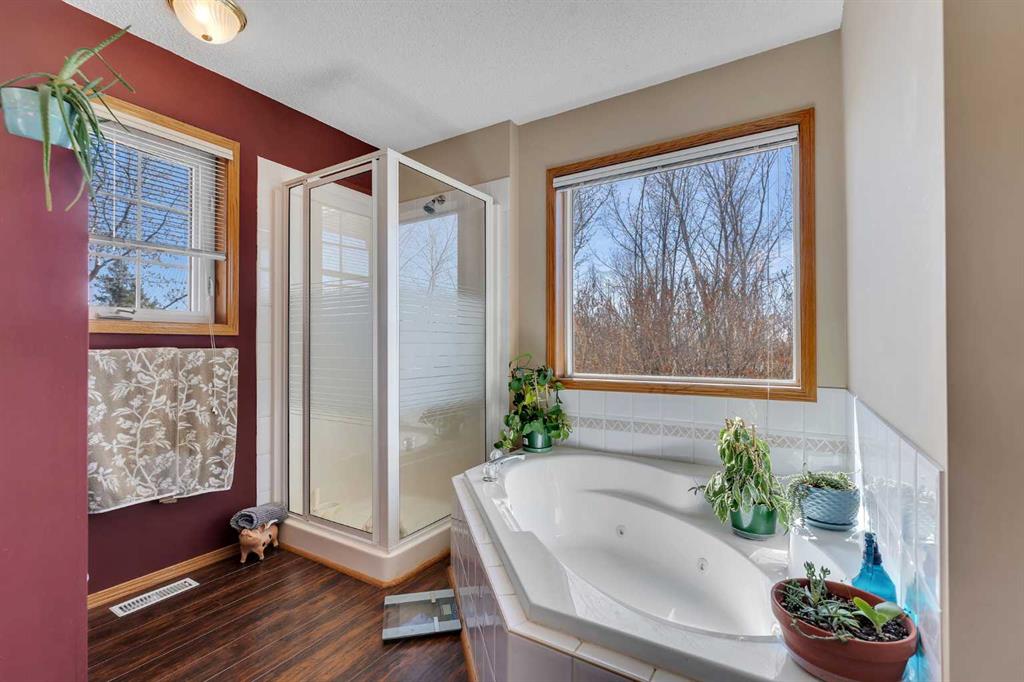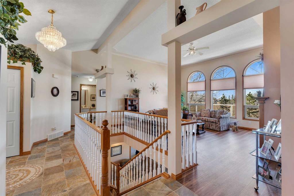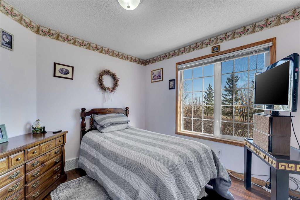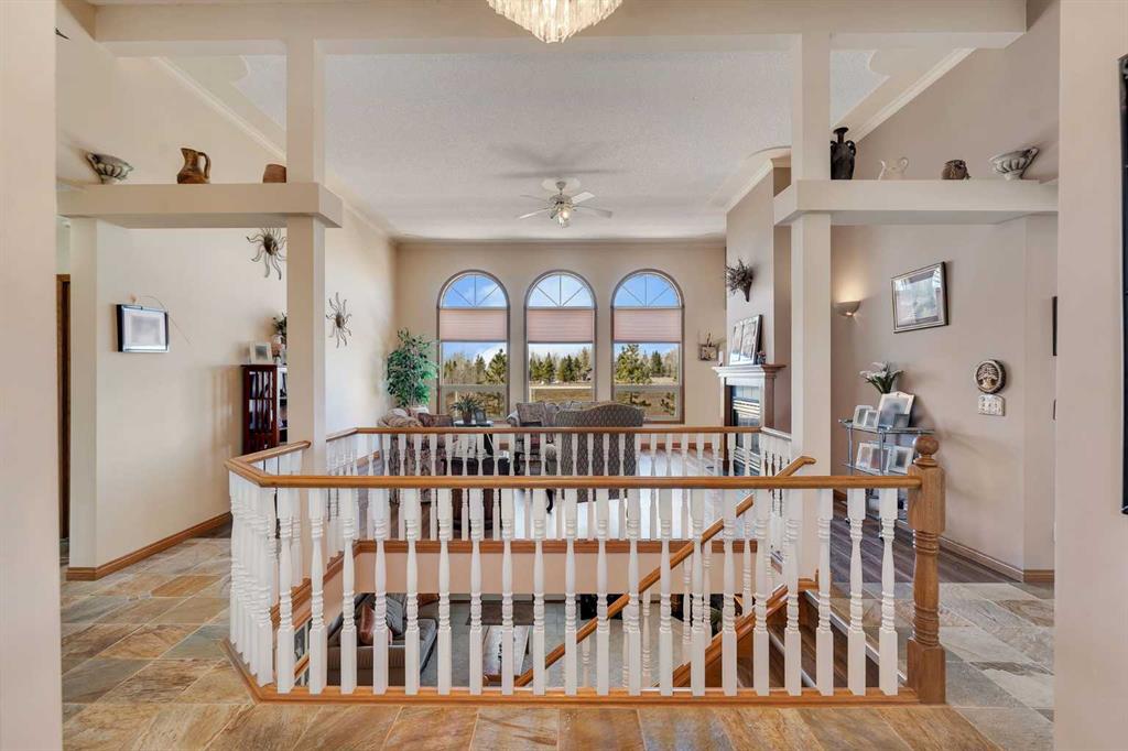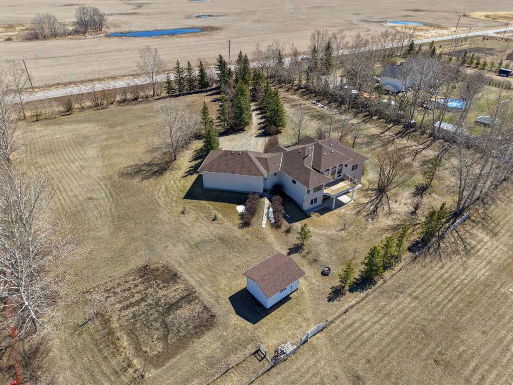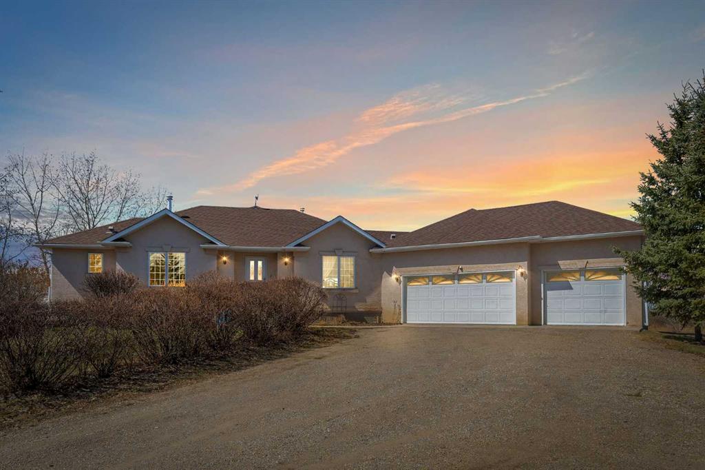 Walkout Bilevel on 4 acres with a triple attached garage and over 3000 sq. ft. of developed living space. This is the kind of property that offers both space and flexibility—inside and out. The main floor is bright and open with high ceilings that make the entire home feel even larger. The living room is anchored by a gas fireplace and flows easily into the white kitchen, complete with ample cabinetry, generous counter space, and a sunny breakfast nook overlooking the property. A formal dining room adds the perfect spot for hosting family dinners or special occasions. There are two bedrooms on the main level, including the primary with its own ensuite, offering a comfortable and private retreat. The fully developed walkout basement expands your living space with 2 additional bedrooms and a den, a large rec room with 2nd fire place, and direct access to the outdoors—ideal for guests, a growing family, or multi-generational living. Outside, the 4 acres provide endless possibilities. Enjoy the privacy, the views, and the freedom to use the land the way you want—all just a short drive from amenities.