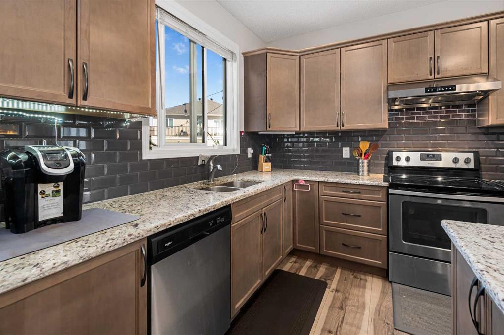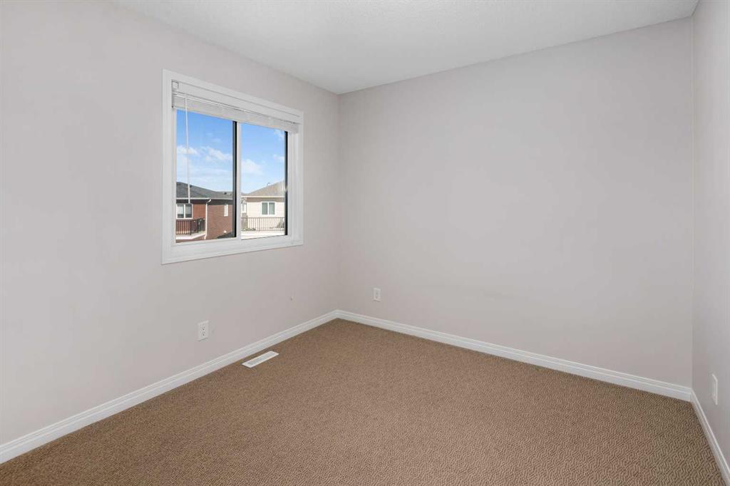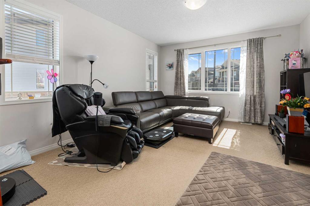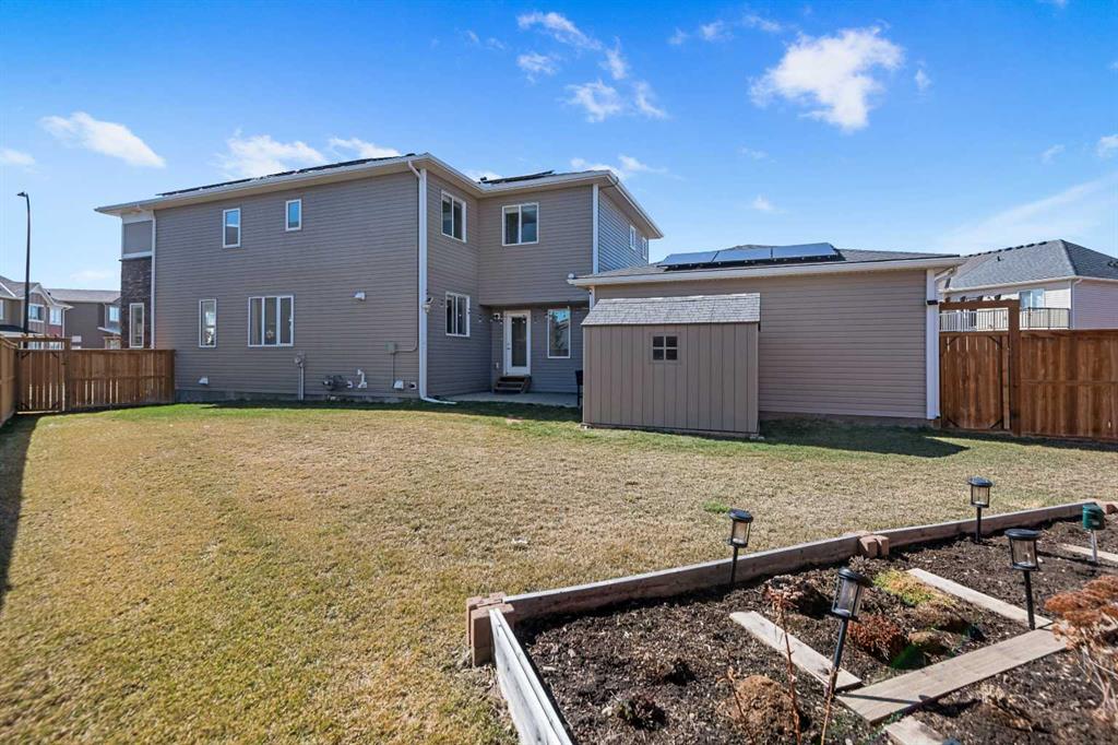 NO CONDO FEE!!!!! LOCATION, LOCATION, LOCATION!!!!! Brand new solar panels! This 1968 sf two level duplex is tucked in on a quiet inner street of Carrington and yet just one block away from all the convenient amenities like supermarkets (No frills, Sobeys, Save on foods, Co-op), gas stations, schools, restaurants, coffee shops, clinic, pharmacy, bus stops, parks and playground. Also you are mins away from Superstore, Canadian Tire, Dollarama, Shoppers Drug Mart, Winners, Michaels, Staples, Home Depot, Vivo Recreation Center, IMAX movie theatre. The house has an easy access to Stoney trail, Deerfoot trail, Bedlington Trail and 144 Ave which will be a main road in the NW. It is built on a pie lot, it has a huge fenced east facing side yard that you can enjoy all day in the spring and summer, You will have lots of room to play with your pet, your kids, turn it into a garden, build your green house, build your sunroom….your imagination is the limit. Upon entering the house from the front door, you can relax in a south facing living room where large windows invite in natural light. And it flows into a large dining room that can accommodate a large full size dining table. The kitchen, overlooking the large side yard, has an oversized granite countertop with tons of storage and maple cabinets. All stainless-steel appliances like Fridge, dishwasher, glass top stove, oven and a recently installed powerful hood fan are all included. A large attached insulated double garage is connected to the back of the house with long driveway, that puts you further away from your neighbor. Upstairs it has a large master bedroom with 3 pcs ensuite and a walk-in closet and south facing large windows. There are two other bedrooms and a separate 3pcs bathroom. There is also a laundry room that comes with high end Samsung washer and dryer with steam clean function 21 Solar panels have been installed on the brand new roof in the summer of 2025, that give you ample power to offset whatever amount of power you use. This house also has around 800 ft of undeveloped basement with rough in for another bathroom. You pay for a duplex and get all the benefits of a single house with a giant yard.