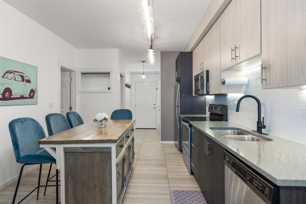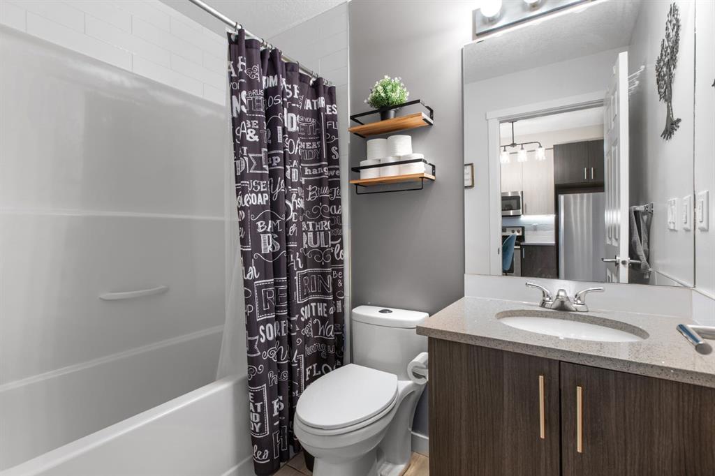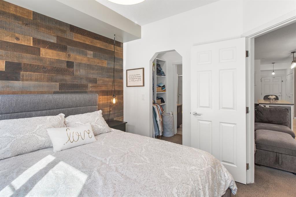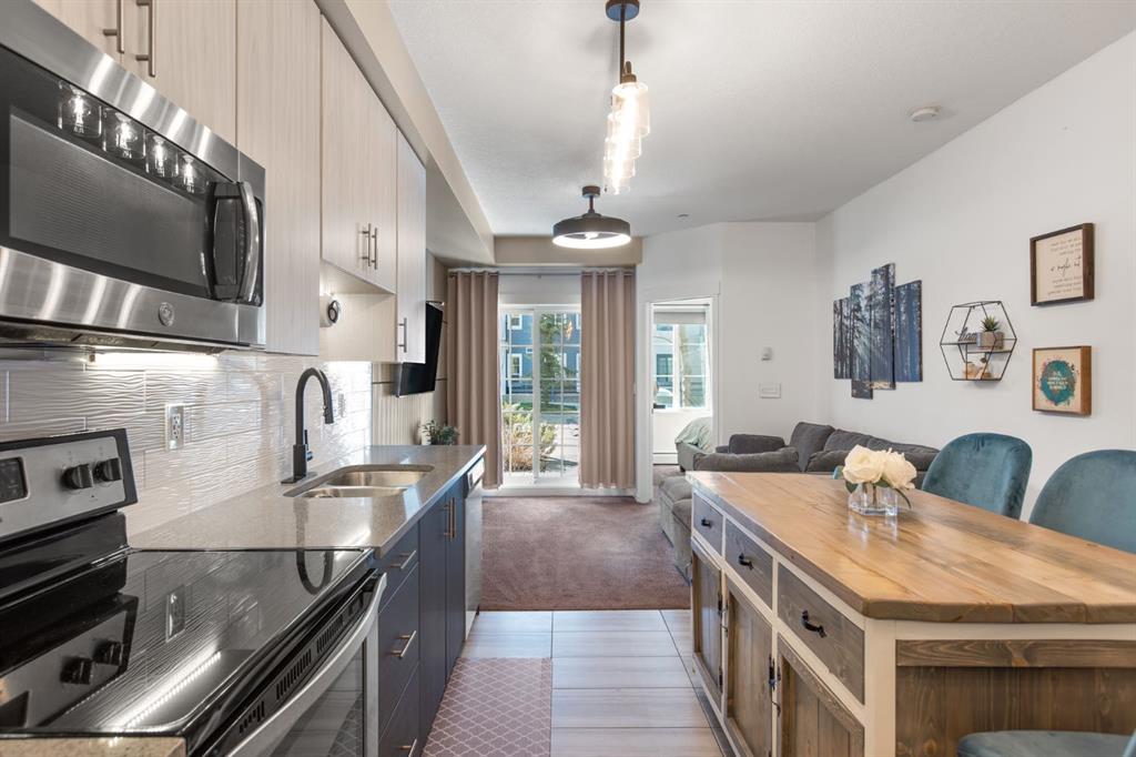 SUPERB VALUE for this immaculate 2 bedroom, 2 bathroom home! Move in ready and waiting for you! Conveniently located on the main floor with a bright and functional floor plan, boasting 9 FT CEILINGS and West facing windows. The kitchen features GRANITE COUNTERTOPS, stainless steel appliances, under cabinet lighting and a kitchen island. Spacious primary bedroom has a large walk-thru closet and 3-pc ensuite with walk-in shower. The second bedroom is perfectly suited for guests or a home office. Enjoy the sunshine from your sunny, WEST FACING PATIO with BBQ gas line. And don't forget about the UNDERGROUND TITLED PARKING and additional STORAGE LOCKER. Other bonuses include: NEWER WASHER & DRYER and reasonable condo fees that include heat and water. This is a PET FRIENDLY and well managed complex, right across the road from a kids play park. Sturdy brick and Hardie board construction. Easy access to schools, tons of shopping and Stoney Trail. You will love living in Legacy, surrounded by beautiful walking paths and a 300 acre environmental reserve. This property has everything you want, for the price you need! Check out our 3D TOUR and book a showing before it's too late.