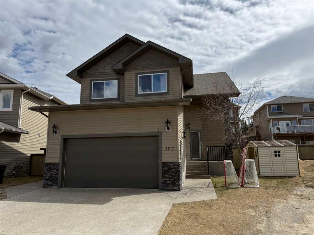 This well-appointed two-storey home was built by Jareth Homes, a respected local builder in Hinton known for quality craftsmanship and a strong reputation. Offering over 2,150 sq ft across the main and upper levels, this home provides a functional and spacious layout ideal for family living. The main floor features a large, inviting living room complete with a cozy gas fireplace, a well-designed kitchen with a convenient breakfast bar, and a dining area that overlooks the backyard with direct access to the lower rear deck. This level also includes a 2-piece powder room and a generous mudroom off the garage, adding to the home’s practicality. Upstairs, you’ll find three good sized bedrooms, a 4-piece main bathroom, and a versatile den that could easily be converted into a fourth bedroom or used as a home office. The den also offers access to a second-level deck that spans the back of the home an ideal spot to enjoy your morning coffee. The primary suite is spacious, featuring a large walk-in closet and a 4-piece ensuite. For added convenience, the laundry room is also located on this upper level. The basement includes a fourth bedroom and a comfortable family room providing additional living space. Situated on a pie-shaped lot, the property offers a large backyard with plenty of room to enjoy. The location is equally impressive—set in Hinton’s only golf course community, just minutes from the course, and close to the mall and a variety of restaurants. A well-built, thoughtfully designed home in a fantastic location—ready for its next owners.