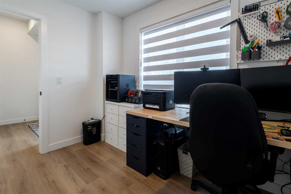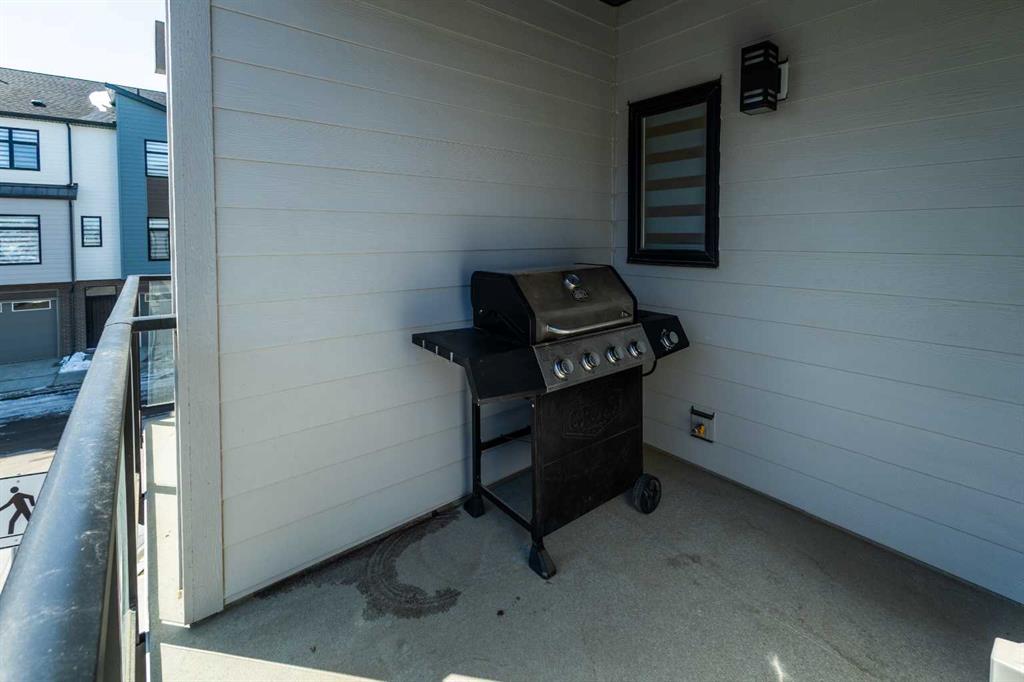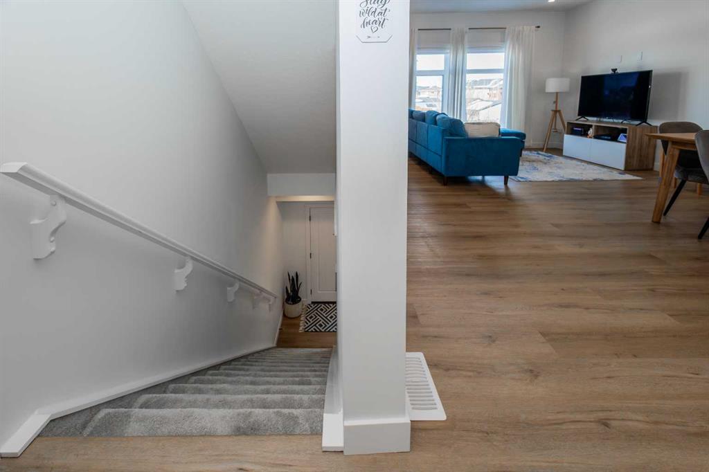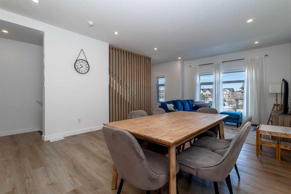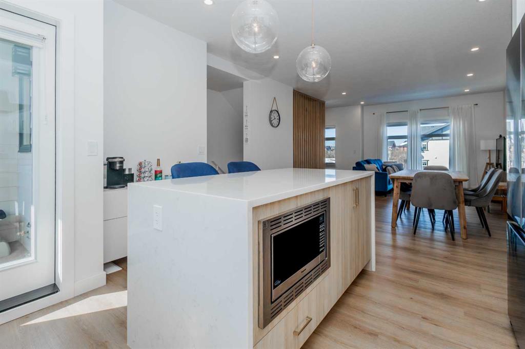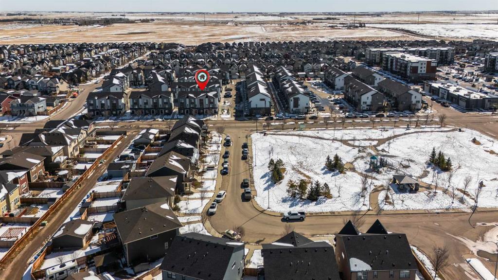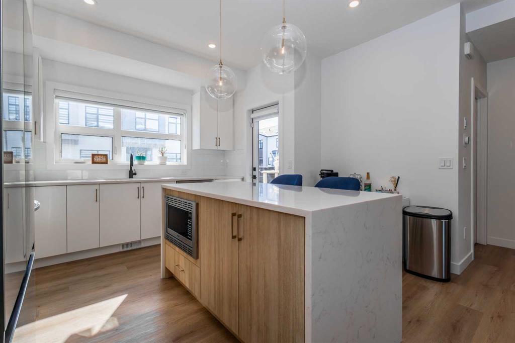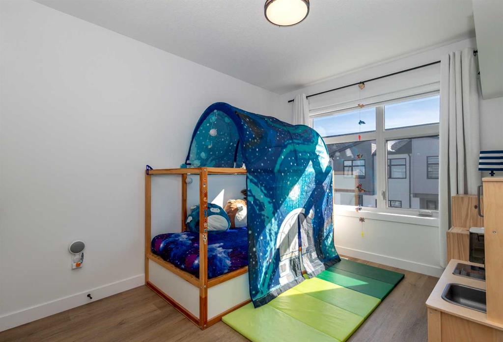Welcome to refined living in this beautifully appointed townhome, where elegance meets everyday comfort. Bathed in an abundance of natural light, this residence offers a warm and inviting atmosphere from the moment you step inside. The entry level features a thoughtfully designed foyer, complemented by a private, enclosed office—ideal for working from home—alongside a spacious double attached garage. Ascending to the main level, you are greeted by a sophisticated open-concept layout that seamlessly blends the living, dining, and kitchen areas. This space is enhanced by high-end finishes and premium appliances, creating a perfect setting for both entertaining and daily living. Step out onto the balcony to enjoy a peaceful morning coffee or unwind with an evening barbecue. The upper level hosts a generously sized primary bedroom, complete with a walk-in closet featuring built-ins and a beautifully designed ensuite. Two additional well-proportioned bedrooms, a full bathroom, and a conveniently located laundry area complete this floor. This exceptional home is further elevated by modern comforts, including automated blinds throughout and air conditioning to keep you cool during the warmer months. Situated in the sought-after community of Mahogany, residents enjoy access to an unparalleled array of amenities—from scenic parks and playgrounds to schools, shops, and recreational opportunities. This vibrant lake community offers a lifestyle so complete, you may never need to leave the neighborhood.