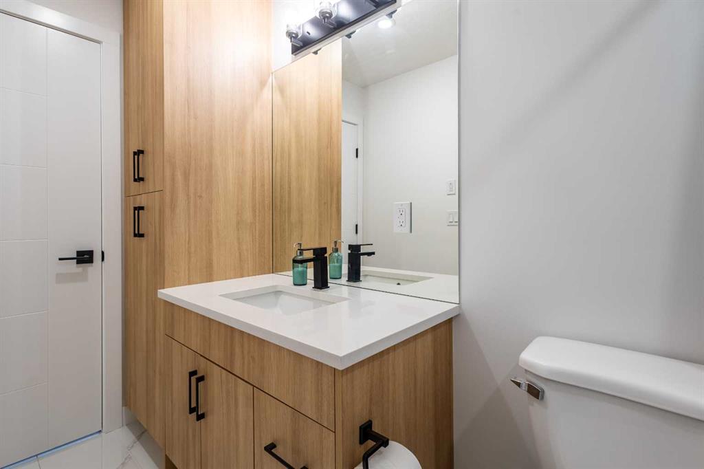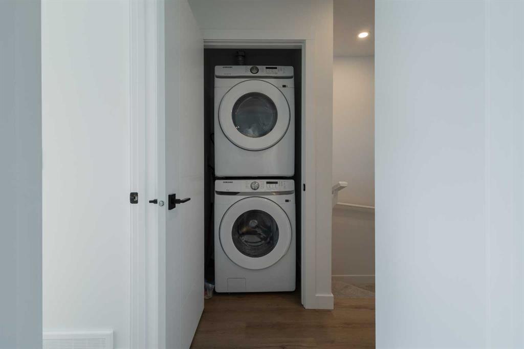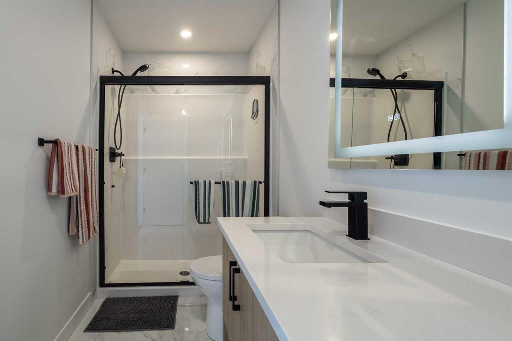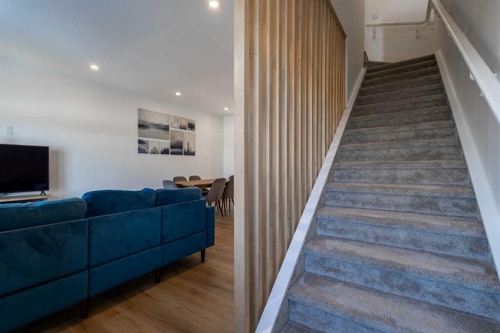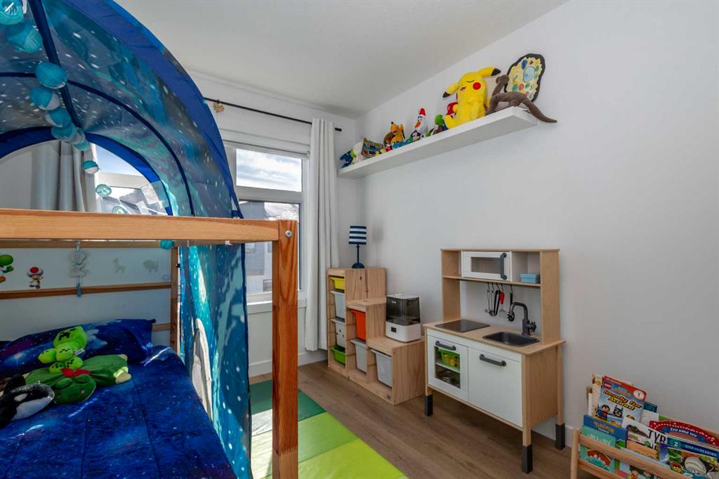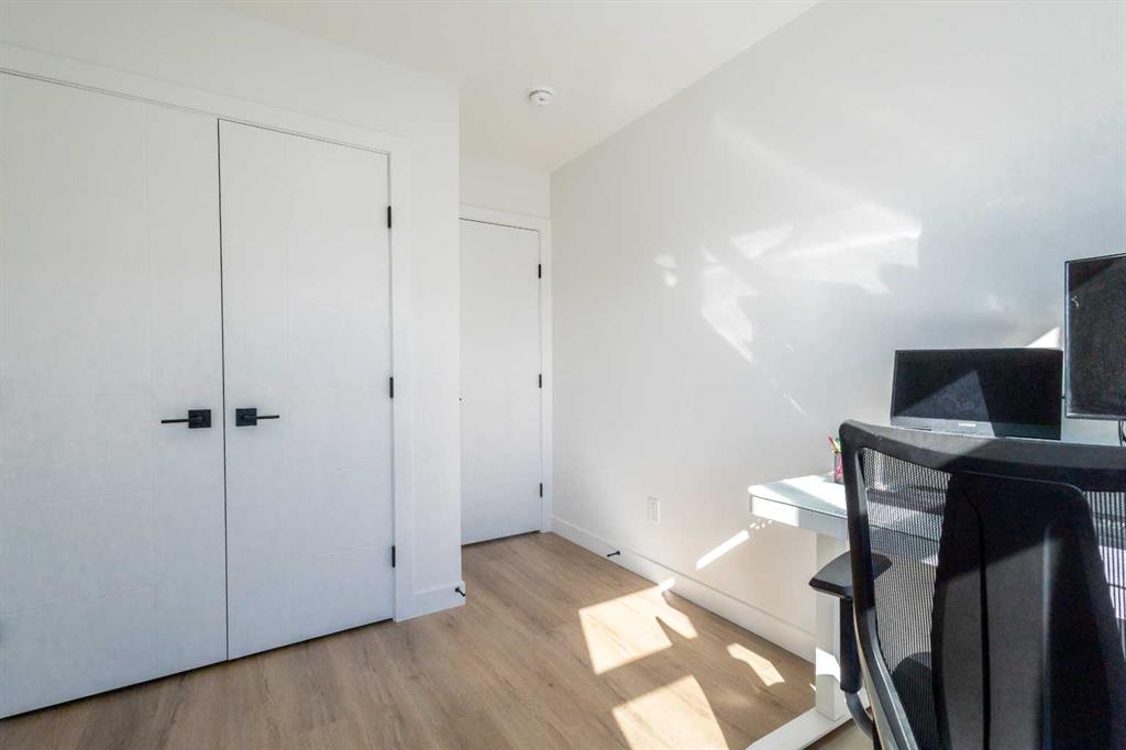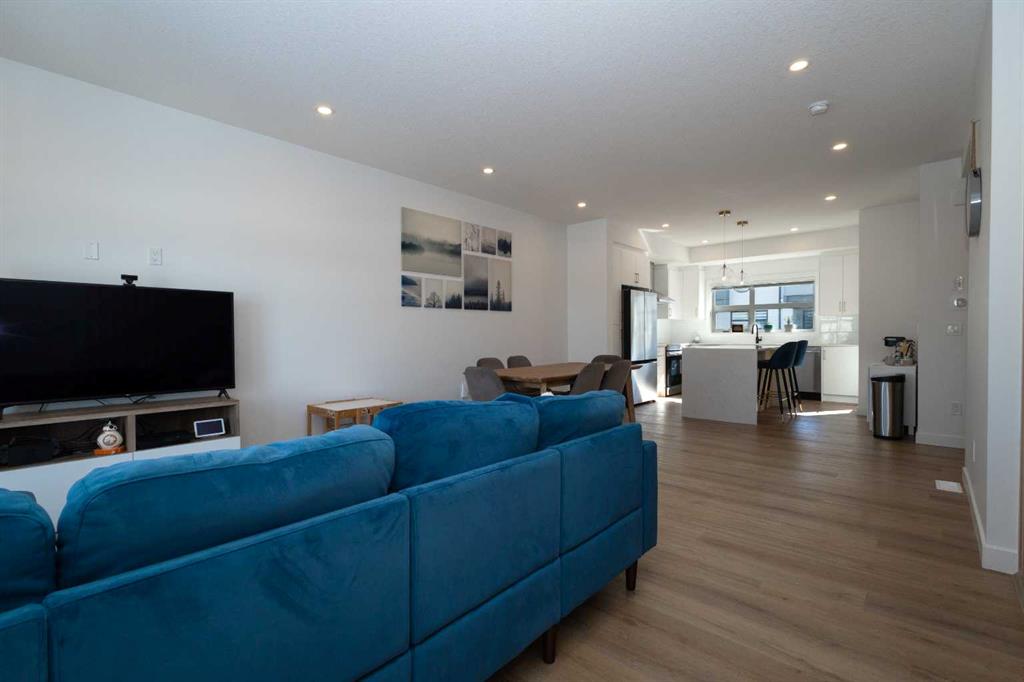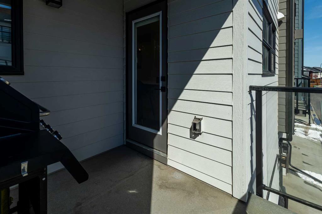 Welcome to refined living in this beautifully appointed townhome, where elegance meets everyday comfort. Bathed in an abundance of natural light, this residence offers a warm and inviting atmosphere from the moment you step inside. The entry level features a thoughtfully designed foyer, complemented by a private, enclosed office—ideal for working from home—alongside a spacious double attached garage. Ascending to the main level, you are greeted by a sophisticated open-concept layout that seamlessly blends the living, dining, and kitchen areas. This space is enhanced by high-end finishes and premium appliances, creating a perfect setting for both entertaining and daily living. Step out onto the balcony to enjoy a peaceful morning coffee or unwind with an evening barbecue. The upper level hosts a generously sized primary bedroom, complete with a walk-in closet featuring built-ins and a beautifully designed ensuite. Two additional well-proportioned bedrooms, a full bathroom, and a conveniently located laundry area complete this floor. This exceptional home is further elevated by modern comforts, including automated blinds throughout and air conditioning to keep you cool during the warmer months. Situated in the sought-after community of Mahogany, residents enjoy access to an unparalleled array of amenities—from scenic parks and playgrounds to schools, shops, and recreational opportunities. This vibrant lake community offers a lifestyle so complete, you may never need to leave the neighborhood.
