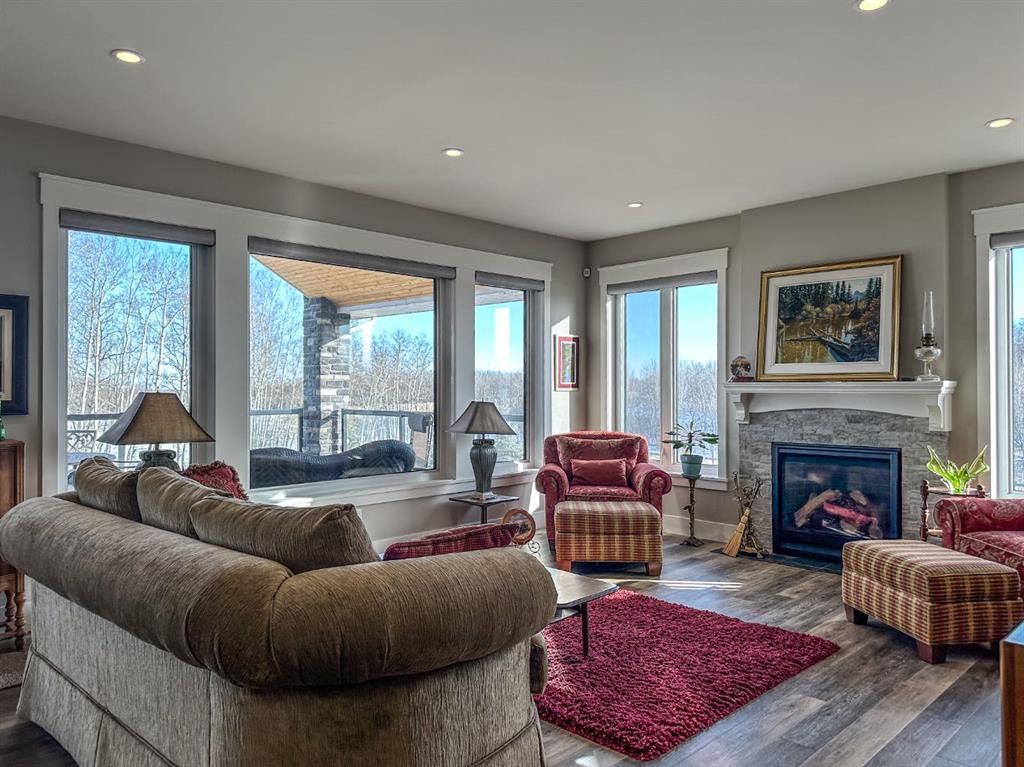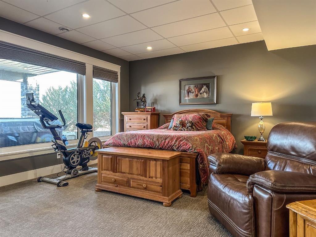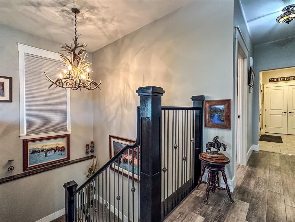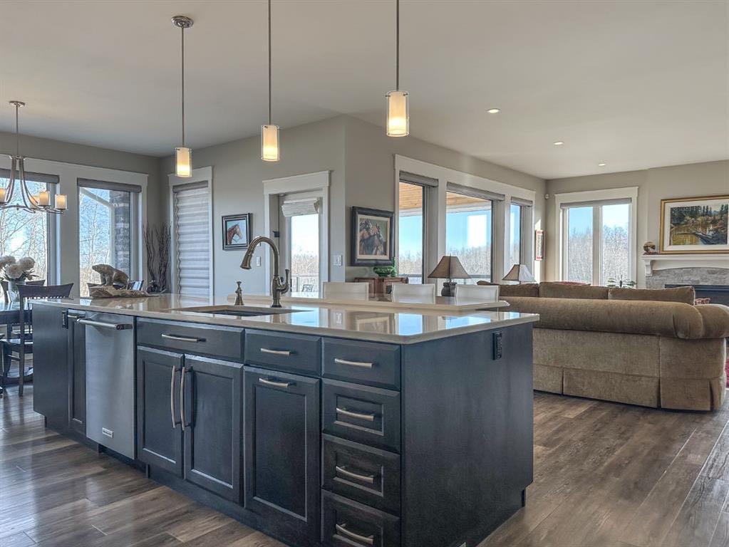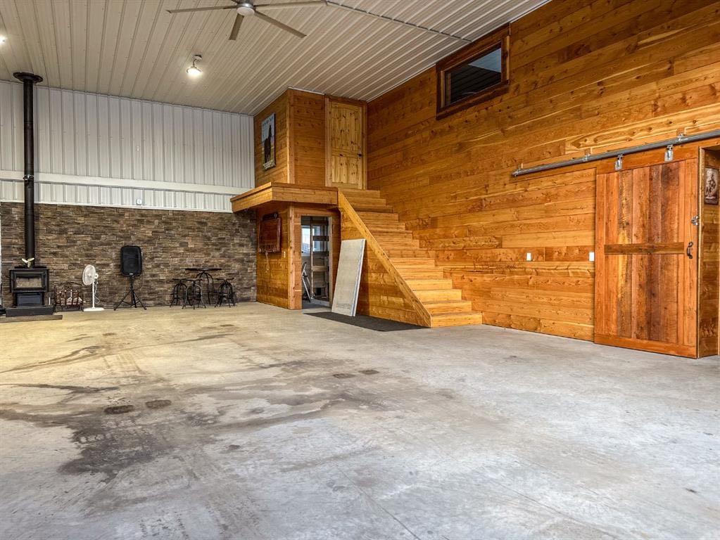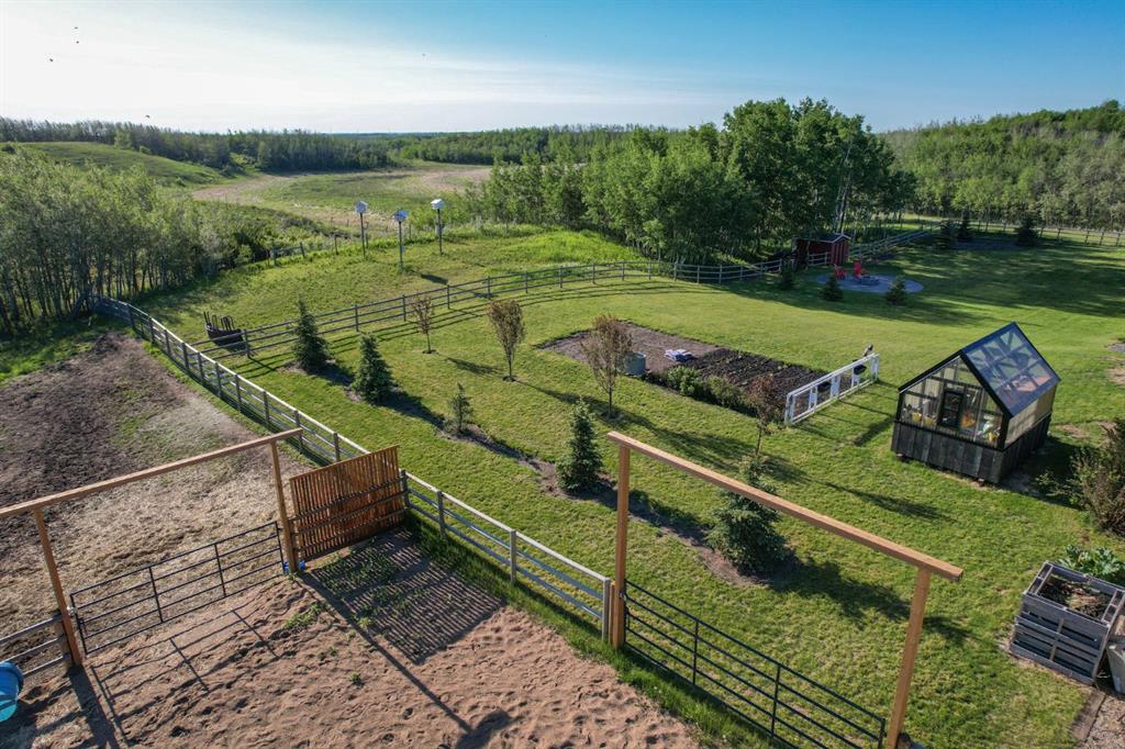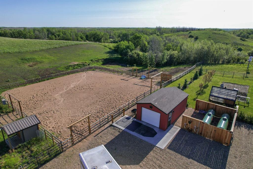 WELCOME TO ALBERTA! On offer is an immaculate acreage nestled in the hills of beautiful No. 6 Stettler County for those who want to spend their days in the epitome of western luxury. At over 4100 square feet of living space between the main level and walkout basement, no expense was spared in its premium finishes and masterful design. The grand entry makes a statement showcasing outstanding works of art, welcoming you through into the open concept kitchen and living area. Be awestruck by the gorgeous custom cabinetry, quartz counter tops, gas fireplace and covered balconies: one for visiting, the other just off the kitchen for barbecuing. Ultra high end stainless appliances including a gas cooktop, built-in oven and convection microwave, dishwasher and refrigerator and even a wine fridge tucked under the end of the sit-up island. A micro office hidden off to the side is very practical and very cool, the walk-in pantry at the other end checks off all the boxes to make this a dream kitchen. Vistas to the North, West & East incorporate the beautiful natural surroundings into your day. The Master is the gem we'd expect in a home of this calibre, dual vanity ensuite with walk in shower and walk-in closet. Spacious second bedroom on the main floor conveniently next door to the main floor bathroom. If the kitchen is the heart of the home, this basement is the pulse with a central family room ideal for entertaining with the pool table, wet bar and adorned with more brilliant artwork! Out on the patio for a quick dip in the hot tub and then back inside to the suite on the north end, or the pair of bedrooms on the south to tuck in for the night, even though we can't technically call the one bedroom a bedroom because the windows are solid. Massive three car garage set up to keep the vehicles clean and pristine and the SideXSide or ATV's in their own space, complete with its own washroom bringing the house total to 5. Out to the shop and you'll find everything needed for a hotblooded North American! 40X60', in-floor heat, totally finished and looking like a showroom for the tools. The office, a touch of class, with a bonus rec. room upstairs for a multitude of uses. A wood burning stove in the centre of it to keep things cozy or act as a backup heat source. A 20' lean-too built off the end for covered storage and a 10X20' overhang added on the front for a western flare while keeping the rain and mud away from the front door with the help of a new concrete skirting at the shop. Excellently set up for horses complete with outdoor riding arena, built in-shelter in the NW corner of the shop, covered hay storage and many paddocks + sheds & water bowls! The whole property is cross fenced, and the north field produces good hay. Even the greenhouse looks like it belongs in a magazine! The regional water line services the house and a good well takes care of the yard & stock. Lastly, multiple spots to have a bonfire and howl at the moon in the rolling hills of this 9.88 acre Masterpiece!