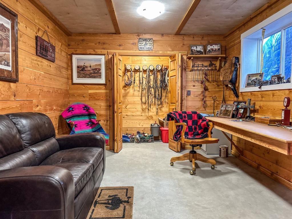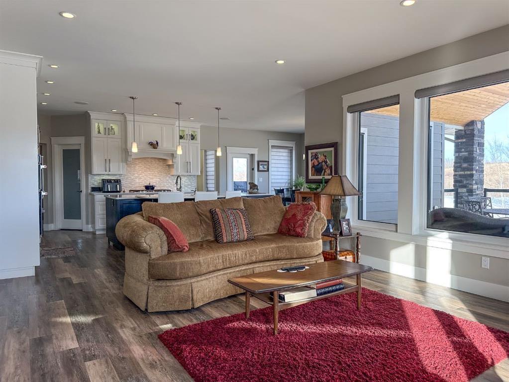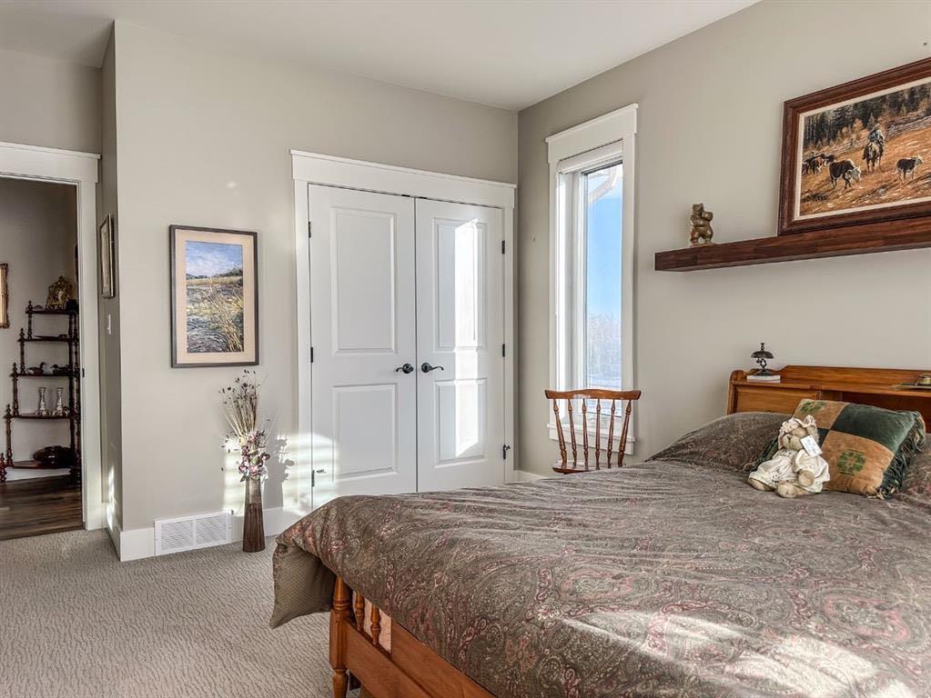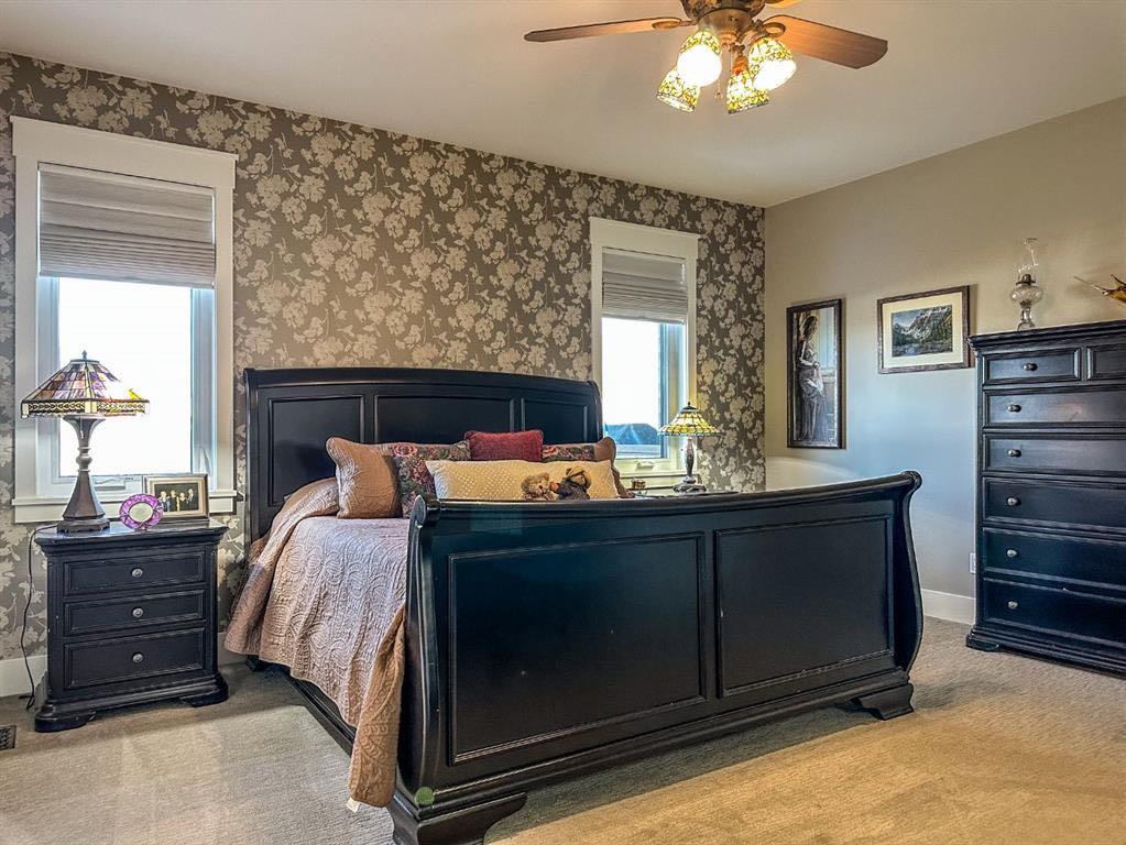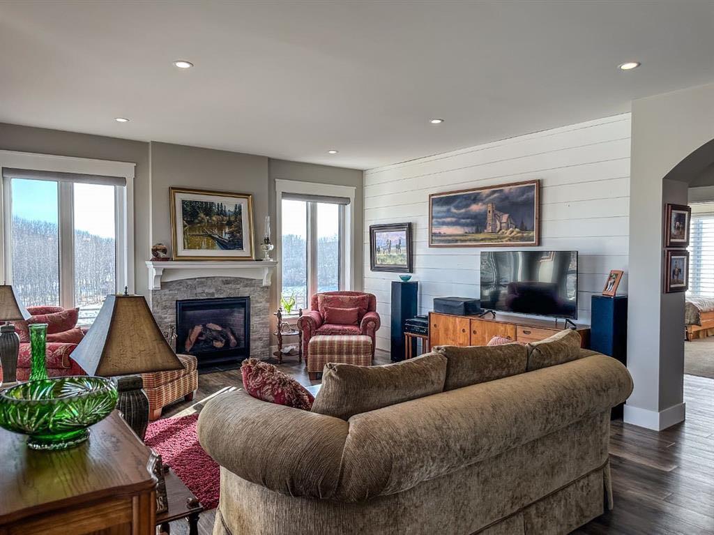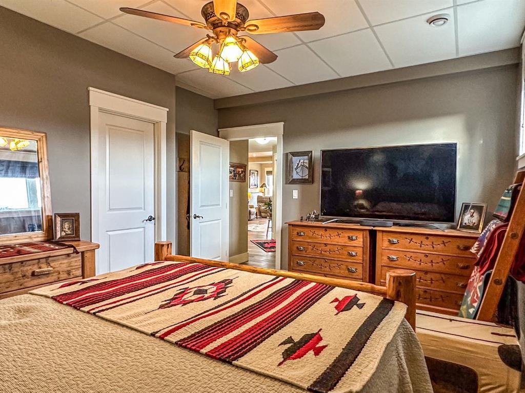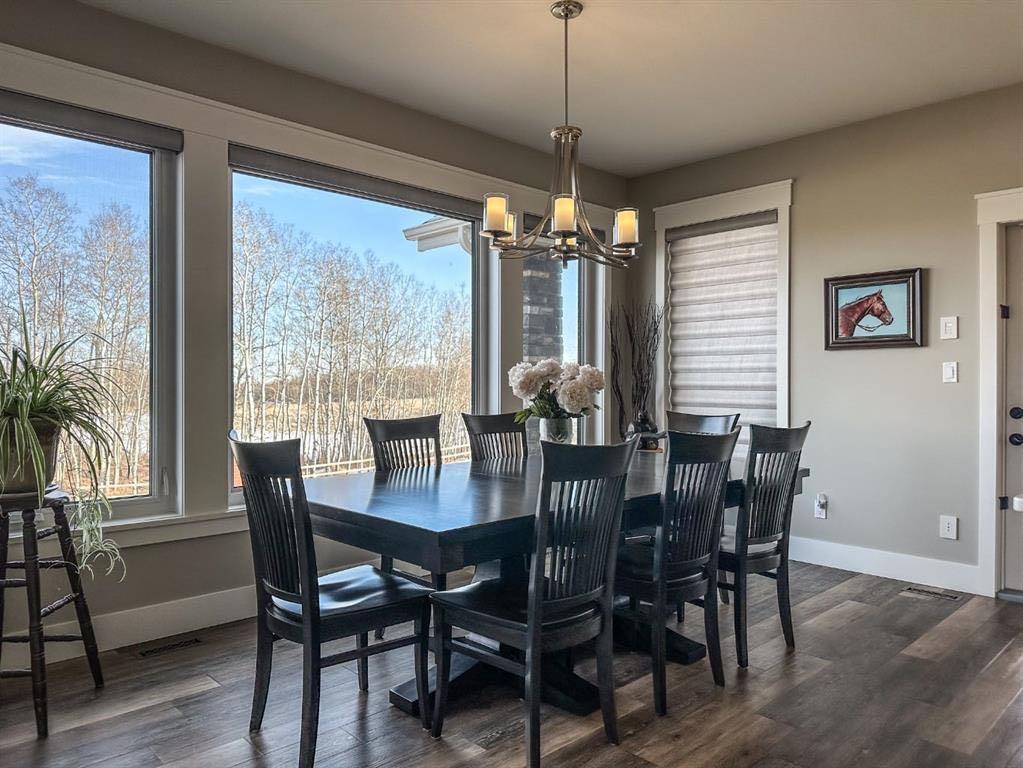 WELCOME TO ALBERTA! On offer is an immaculate acreage nestled in the hills of beautiful No. 6 Stettler County for those who want to spend their days in the epitome of western luxury. At over 4100 square feet of living space between the main level and walkout basement, no expense was spared in its premium finishes and masterful design. The grand entry makes a statement showcasing outstanding works of art, welcoming you through into the open concept kitchen and living area. Be awestruck by the gorgeous custom cabinetry, quartz counter tops, gas fireplace and covered balconies: one for visiting, the other just off the kitchen for barbecuing. Ultra high end stainless appliances including a gas cooktop, built-in oven and convection microwave, dishwasher and refrigerator and even a wine fridge tucked under the end of the sit-up island. A micro office hidden off to the side is very practical and very cool, the walk-in pantry at the other end checks off all the boxes to make this a dream kitchen. Vistas to the North, West & East incorporate the beautiful natural surroundings into your day. The Master is the gem we'd expect in a home of this calibre, dual vanity ensuite with walk in shower and walk-in closet. Spacious second bedroom on the main floor conveniently next door to the main floor bathroom. If the kitchen is the heart of the home, this basement is the pulse with a central family room ideal for entertaining with the pool table, wet bar and adorned with more brilliant artwork! Out on the patio for a quick dip in the hot tub and then back inside to the suite on the north end, or the pair of bedrooms on the south to tuck in for the night, even though we can't technically call the one bedroom a bedroom because the windows are solid. Massive three car garage set up to keep the vehicles clean and pristine and the SideXSide or ATV's in their own space, complete with its own washroom bringing the house total to 5. Out to the shop and you'll find everything needed for a hotblooded North American! 40X60', in-floor heat, totally finished and looking like a showroom for the tools. The office, a touch of class, with a bonus rec. room upstairs for a multitude of uses. A wood burning stove in the centre of it to keep things cozy or act as a backup heat source. A 20' lean-too built off the end for covered storage and a 10X20' overhang added on the front for a western flare while keeping the rain and mud away from the front door with the help of a new concrete skirting at the shop. Excellently set up for horses complete with outdoor riding arena, built in-shelter in the NW corner of the shop, covered hay storage and many paddocks + sheds & water bowls! The whole property is cross fenced, and the north field produces good hay. Even the greenhouse looks like it belongs in a magazine! The regional water line services the house and a good well takes care of the yard & stock. Lastly, multiple spots to have a bonfire and howl at the moon in the rolling hills of this 9.88 acre Masterpiece!