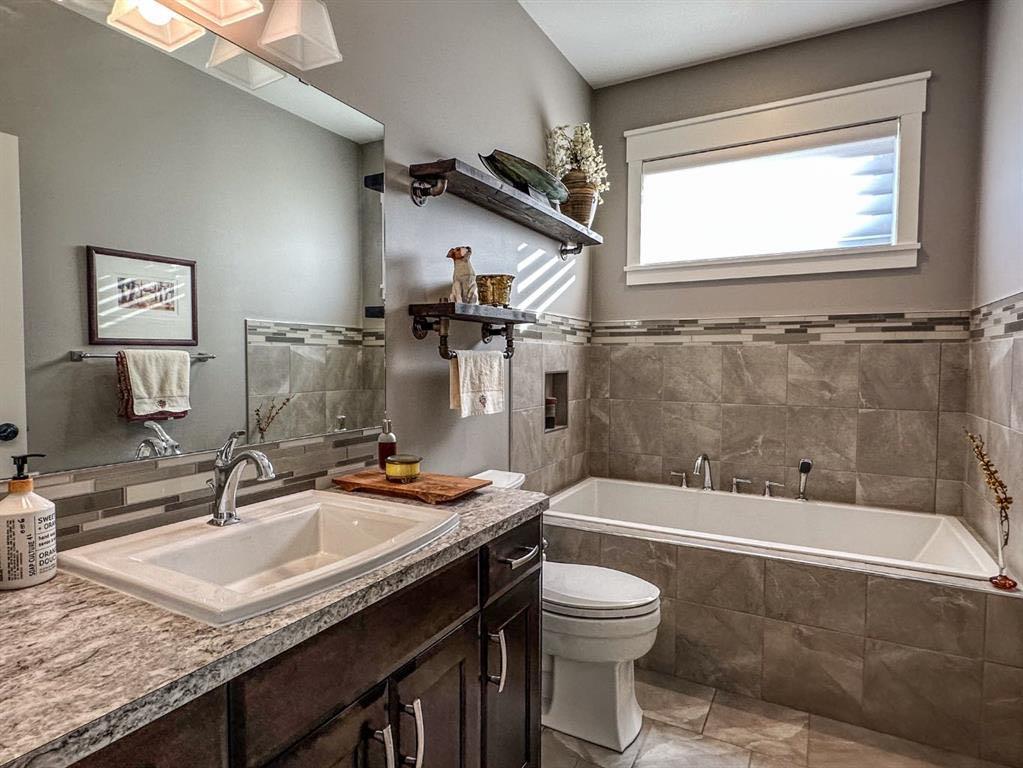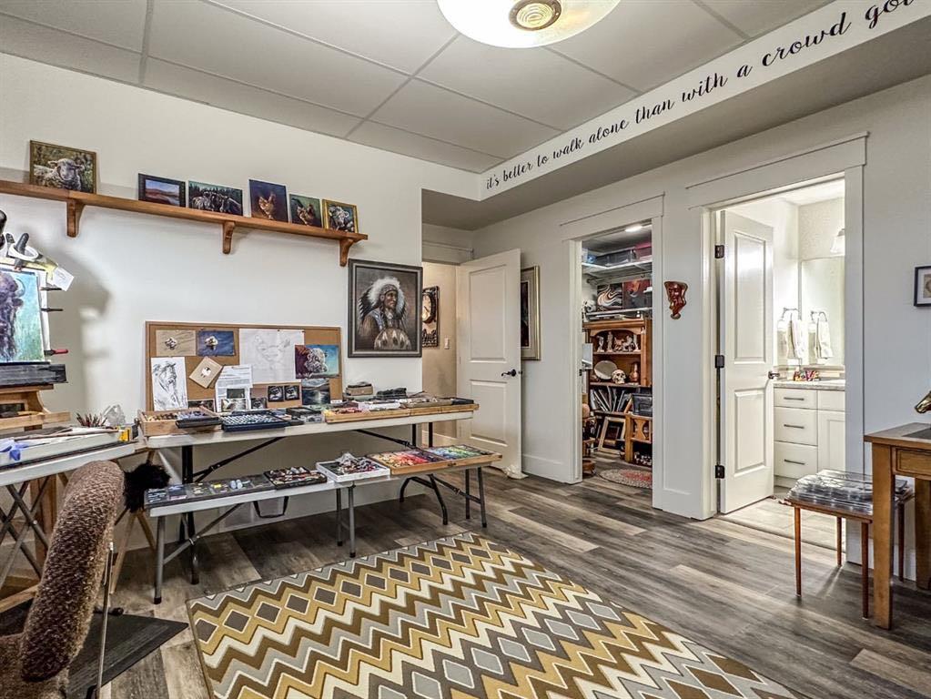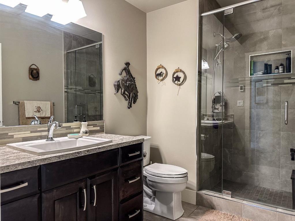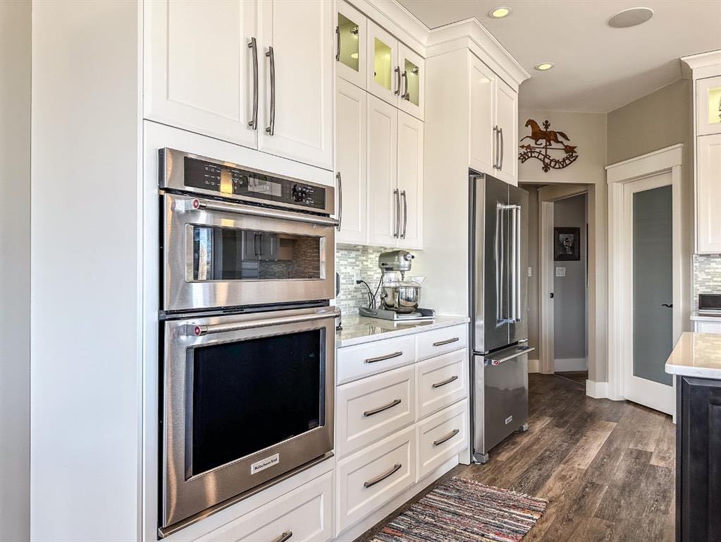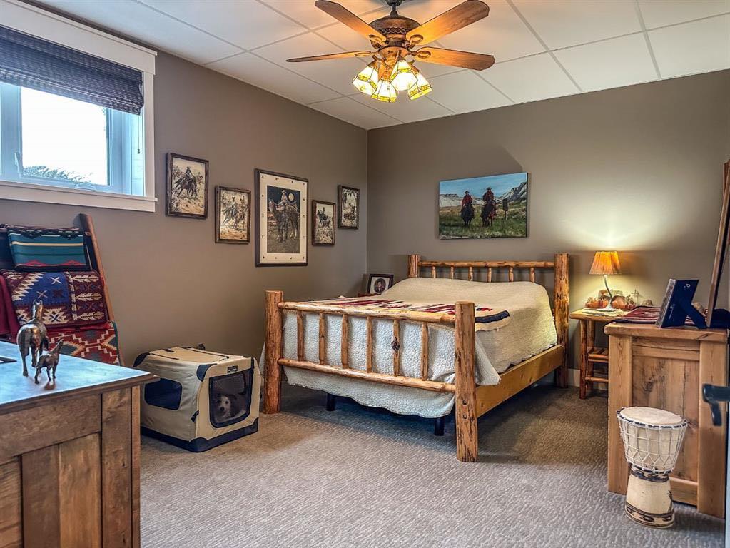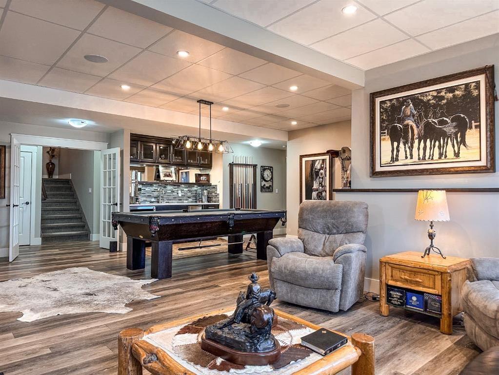 WELCOME TO ALBERTA! On offer is an immaculate acreage nestled in the hills of beautiful No. 6 Stettler County for those who want to spend their days in the epitome of western luxury. At over 4100 square feet of living space between the main level and walkout basement, no expense was spared in its premium finishes and masterful design. The grand entry makes a statement showcasing outstanding works of art, welcoming you through into the open concept kitchen and living area. Be awestruck by the gorgeous custom cabinetry, quartz counter tops, gas fireplace and covered balconies: one for visiting, the other just off the kitchen for barbecuing. Ultra high end stainless appliances including a gas cooktop, built-in oven and convection microwave, dishwasher and refrigerator and even a wine fridge tucked under the end of the sit-up island. A micro office hidden off to the side is very practical and very cool, the walk-in pantry at the other end checks off all the boxes to make this a dream kitchen. Vistas to the North, West & East incorporate the beautiful natural surroundings into your day. The Master is the gem we'd expect in a home of this calibre, dual vanity ensuite with walk in shower and walk-in closet. Spacious second bedroom on the main floor conveniently next door to the main floor bathroom. If the kitchen is the heart of the home, this basement is the pulse with a central family room ideal for entertaining with the pool table, wet bar and adorned with more brilliant artwork! Out on the patio for a quick dip in the hot tub and then back inside to the suite on the north end, or the pair of bedrooms on the south to tuck in for the night, even though we can't technically call the one bedroom a bedroom because the windows are solid. Massive three car garage set up to keep the vehicles clean and pristine and the SideXSide or ATV's in their own space, complete with its own washroom bringing the house total to 5. Out to the shop and you'll find everything needed for a hotblooded North American! 40X60', in-floor heat, totally finished and looking like a showroom for the tools. The office, a touch of class, with a bonus rec. room upstairs for a multitude of uses. A wood burning stove in the centre of it to keep things cozy or act as a backup heat source. A 20' lean-too built off the end for covered storage and a 10X20' overhang added on the front for a western flare while keeping the rain and mud away from the front door with the help of a new concrete skirting at the shop. Excellently set up for horses complete with outdoor riding arena, built in-shelter in the NW corner of the shop, covered hay storage and many paddocks + sheds & water bowls! The whole property is cross fenced, and the north field produces good hay. Even the greenhouse looks like it belongs in a magazine! The regional water line services the house and a good well takes care of the yard & stock. Lastly, multiple spots to have a bonfire and howl at the moon in the rolling hills of this 9.88 acre Masterpiece!
