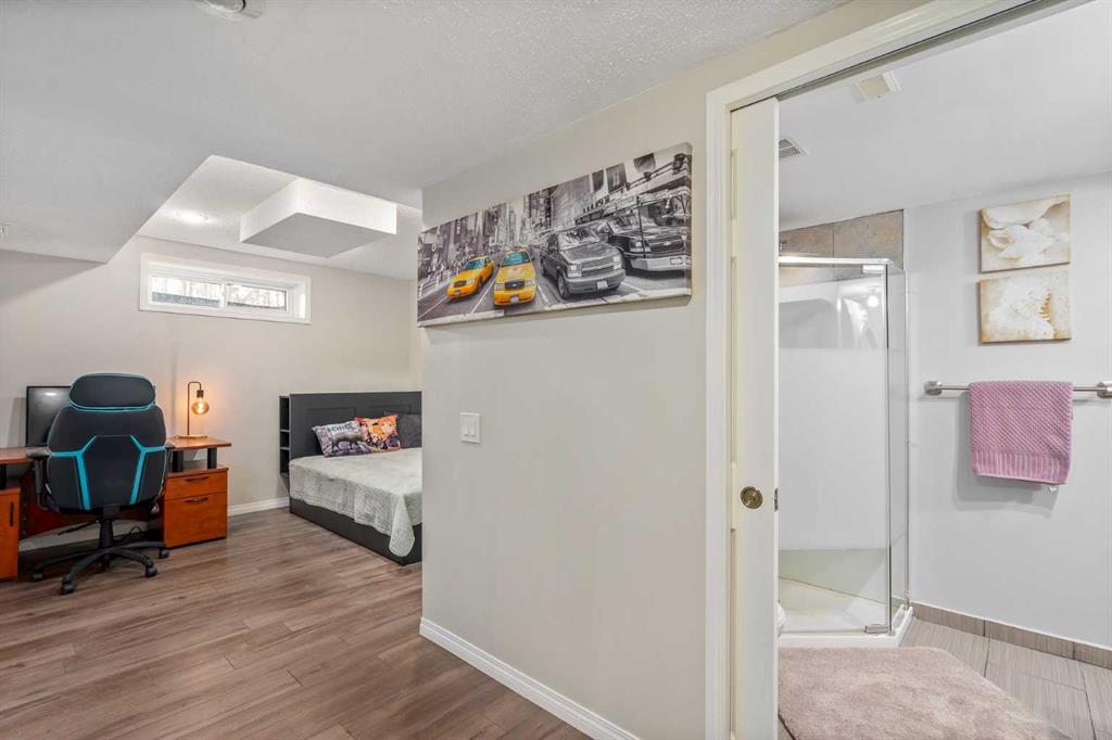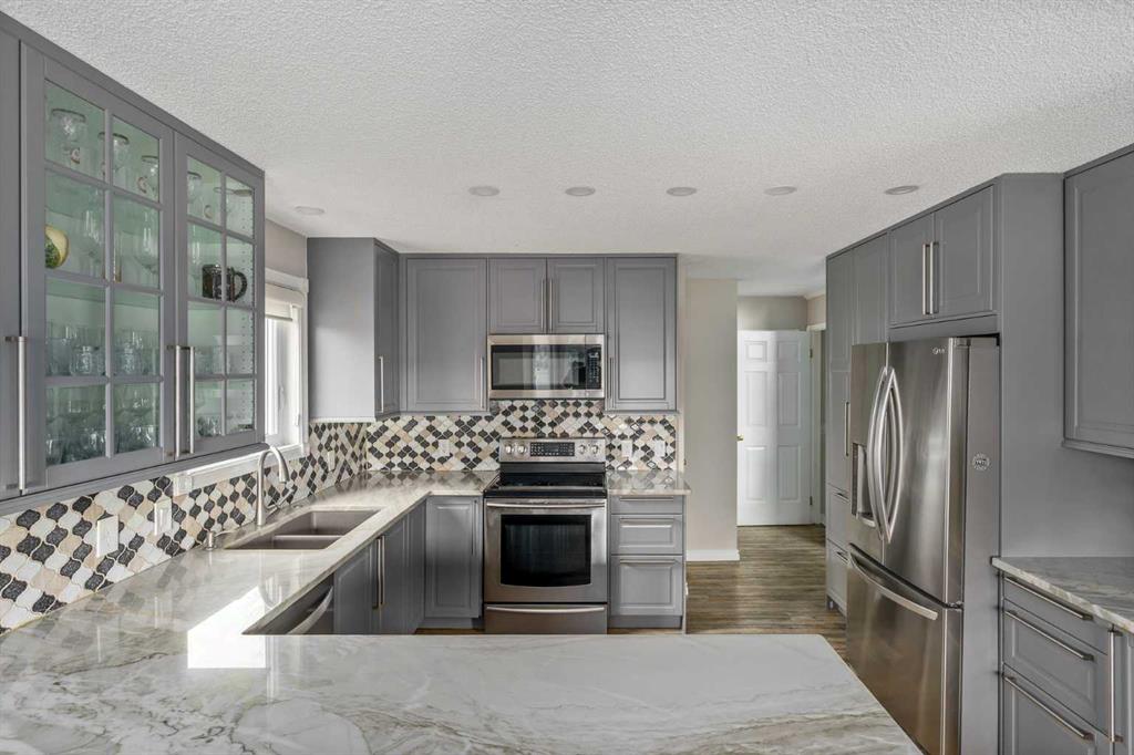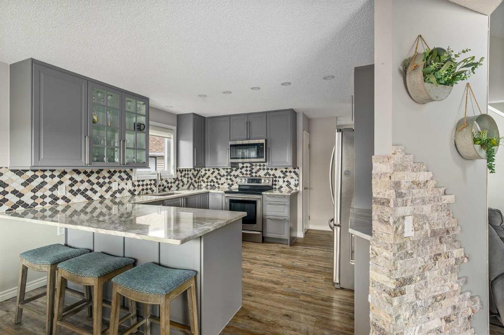 Rare opportunity in Douglas Glen. This home sits on a premium pie-shaped cul-de-sac lot, offering a significantly larger and more private backyard than typical properties in the area. Minimal traffic, more usable space, and a setting that’s hard to find. featuring a large composite deck with a gazebo, leading to a custom stamped concrete keyhole fireplace area perfect for entertaining or private relaxation. This property offers nearly 2,300 sq ft of fully developed living space, including a fully finished basement with a bedroom and ensuite. Inside, you’ll find a fully renovated kitchen that elevates the entire home. The living room welcomes you with a soaring vaulted ceiling and large windows, filling the space with natural light and creating an open, airy feel, anchored by a striking stone-faced fireplace feature wall. The dining area overlooks the expansive backyard, featuring a mature apple tree, beautifully maintained flower beds and raspberry bushes creating a peaceful and scenic setting. This property stands out with extensive upgrades, giving buyers peace of mind and true move-in-ready living. Major components have been addressed, including the roof, furnace, vinyl flooring throughout the main level, triple-glazed windows, AC, upgraded light fixtures and a kitchen sink garburator. This home is just minutes from golf courses, tennis courts, playgrounds and seasonal skating. Explore the outdoors with pathways leading to Fish Creek Park and the Bow River, ideal for walking, biking, and year-round enjoyment. Walk to Quarry Park or Douglas Square for everyday essentials including shopping, restaurants, the YMCA, medical services, and transit. Commuting is effortless with quick access to Deerfoot Trail, along with alternative routes like Ogden Rd providing efficient access all the way into downtown.