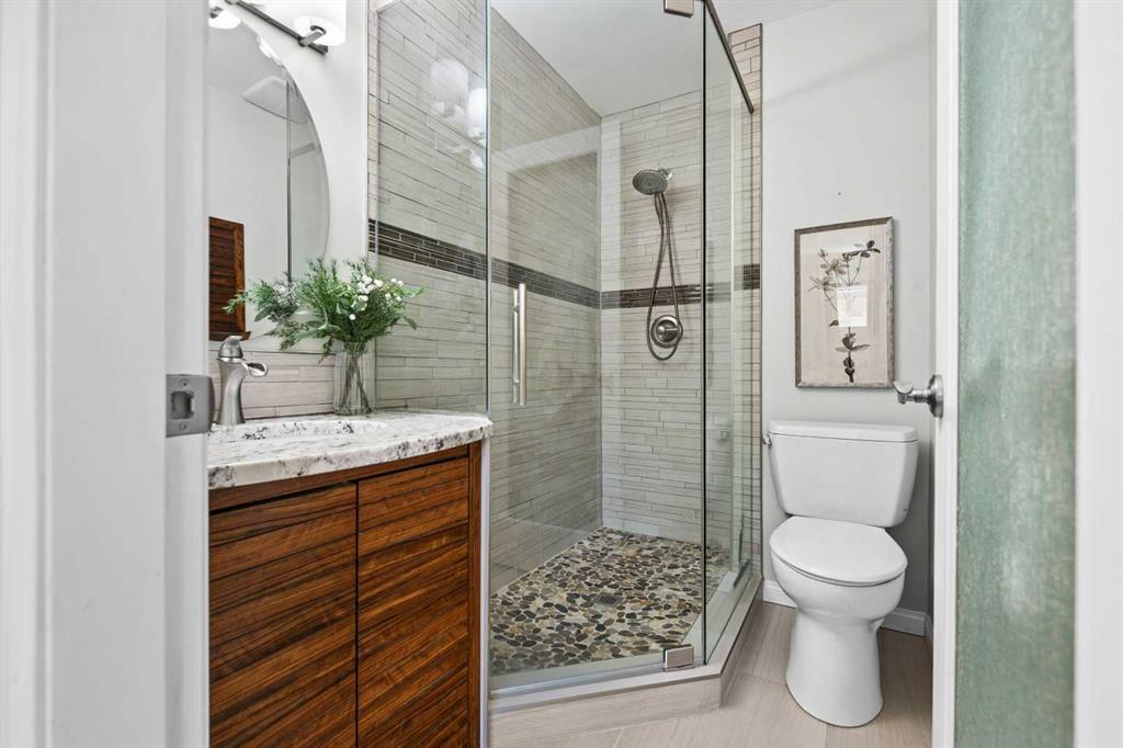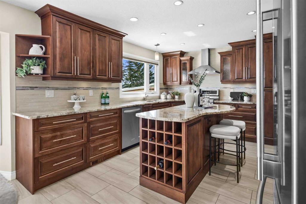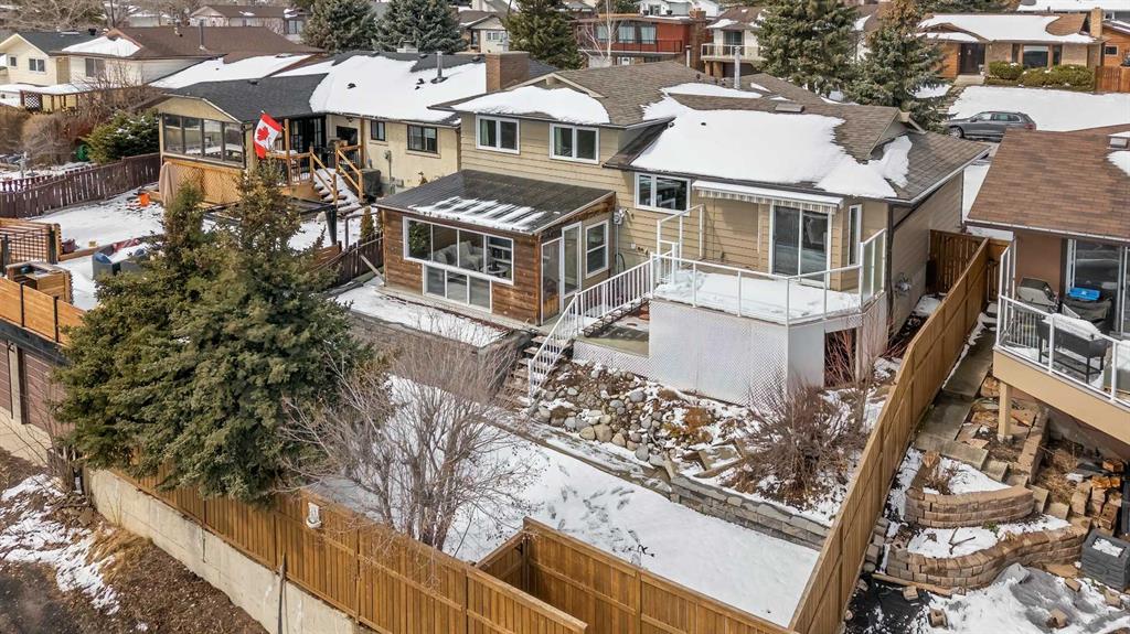 Tucked into a quiet pocket of North West Calgary, 7715 67th Avenue NW is a home that has been deeply cared for and thoughtfully reimagined over time. This cherished residence shows absolute pride of ownership with every renovation curated with intention. Not to be missed, the stunning panoramic views from the back of the city, COP and the mountains. The split-level design offers an expansive layout, delivering over 2,300 sq/ft of developed living space that adapts beautifully to family life. With four bedrooms, three full bathrooms, and a convenient half bath off the family room, the home provides both comfort and flexibility. Upstairs, you'll find three well-appointed bedrooms, one of which is the primary, accompanied by a 3-piece ensuite. The second bathroom on this level provides ample space and function for the rest of the family. All three full bathrooms have been completely renovated with custom cabinetry. The lower level introduces a second primary suite complete with its own fully renovated 3 piece ensuite—ideal for any family combination. At the heart of the home, the kitchen stands as a testament to craftsmanship. Custom solid maple cabinetry, with soft-close drawers and dove-tailed joinery, pairs seamlessly with heated tile flooring and granite countertops. The refrigerator and the gas range with its double oven are brand new, literally weeks old and never used! Throughout the home, extensive renovations reflect careful attention to detail that goes beyond the surface, such as Burmese Teak Hardwood floors with inlaid tile on the stairs. The family room and sunroom level invites family time. Retractable, automated metal blinds on the windows make for great movie nights and the gas fireplace adds coziness. Major upgrades and updates will remove any worry around those "big ticket" home ownership fears. The roof, installed in 2014, comes with a transferable limited lifetime warranty featuring a hail-resistant Legacy Malarkey Shingle System. Outdoors, a newly constructed retaining wall in 2025 adds both structure and visual appeal to the landscape. The fence is newer and the exterior of the home has been clad in aluminum. A natural gas line for the BBQ has been added to the back deck. The eavestroughs were replaced five years ago, and the sunroom underwent a makeover in 2021. The sunroom is one of the home’s most captivating features: a light-filled sanctuary that captures sweeping city and mountain views. It’s a space that invites quiet mornings, Summer dinners and events with family, and general three season enjoyment. A bonus to the home is an oversized double attached, gas heated garage... no more cold and snow covered cars! It also comes complete with work benches and a compressor, perfect for the project enthusiast in the family. Set in a family-friendly community, the location is just as compelling as the home itself with schools nearby and a quick walk to the LRT. This is a forever home, ready for its next chapter. Comes with great neighbours too!