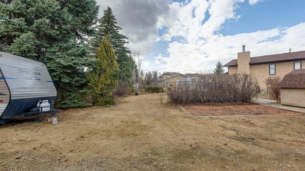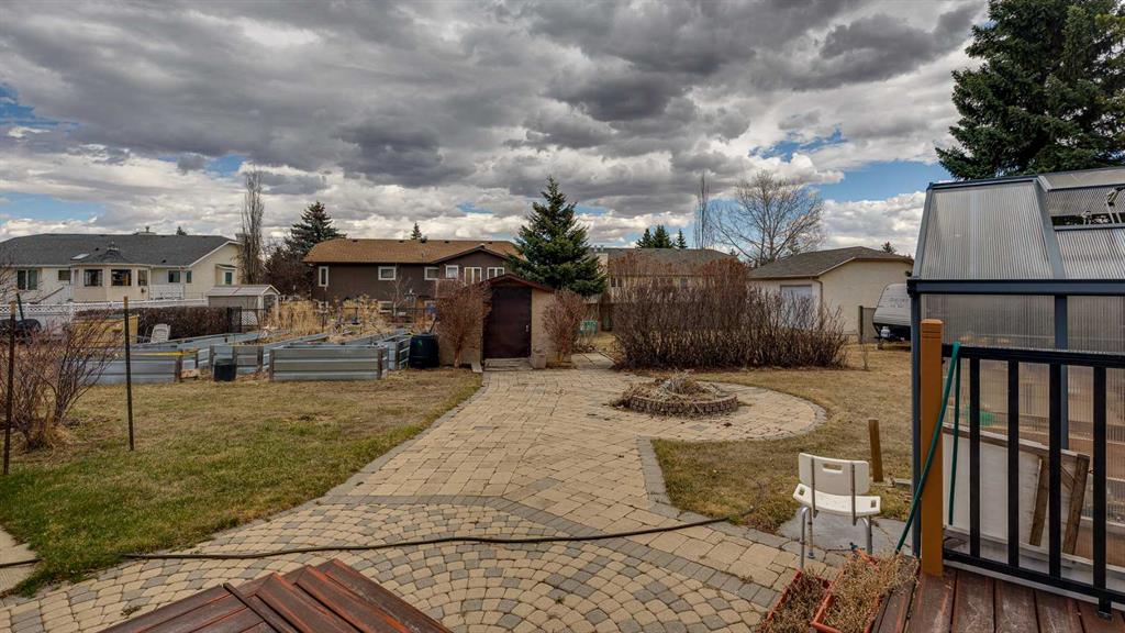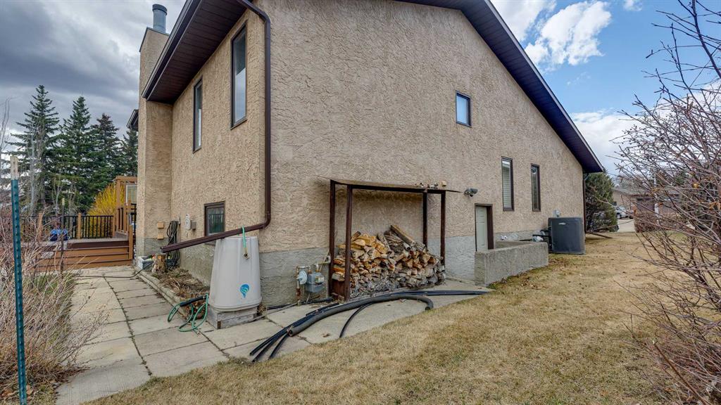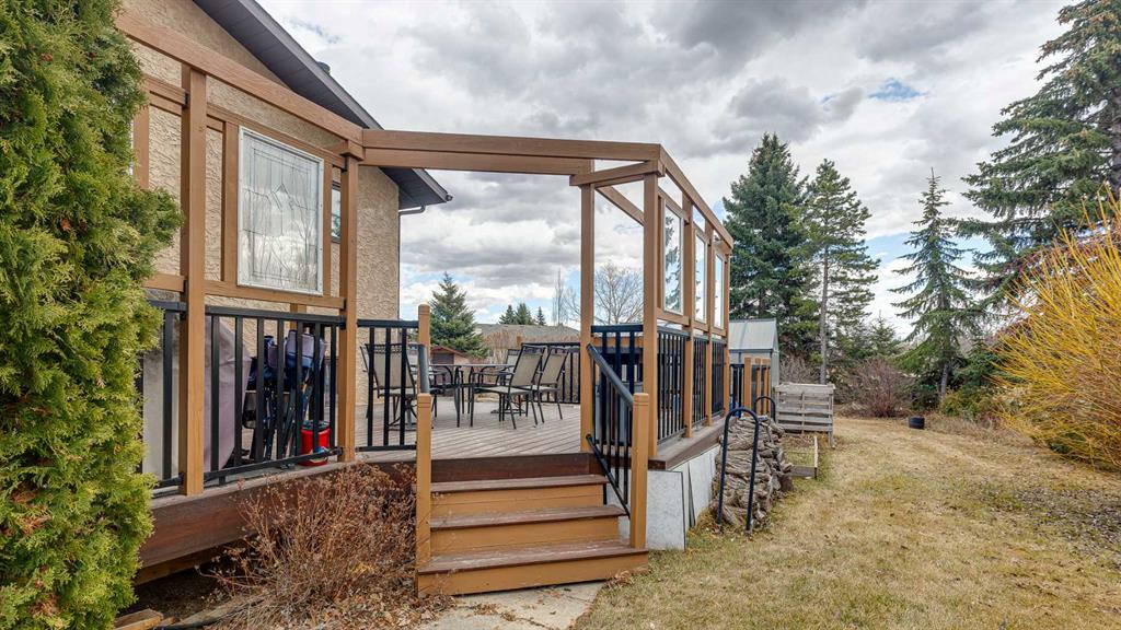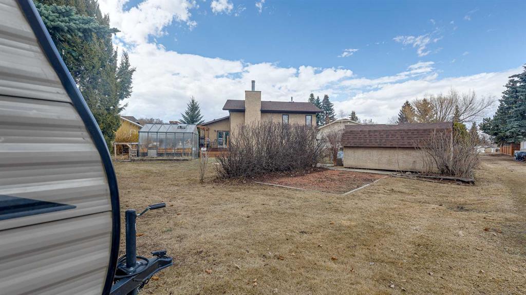 5019 60 Street Close is ideally located in one of Lacombe's most desirable neighborhoods. Curb appeal is high with the home's stucco and brick exterior. The private, pie-shaped backyard will check all the boxes for most homeowners. Parking and RV parking (with plenty of room for long trailers or a large motorhome) is easily accessible from the back lane. The large deck covered with composite deck material features privacy glass, built-in drink counters, and a natural gas line for the cooking grill. The paving stone patio area with fire pit provides additional space for rest, relaxation, and entertaining. Large trees offer some shade, but not too much, as the raised garden beds (included in sale) and greenhouse (also included) catch plenty of sun during the growing season. You will appreciate the extra storage space in the garden shed. Step inside through the front door to spacious entry and open living/dining area with vaulted ceilings. The modern kitchen features a large double sink, stainless steel appliances, gas top stove, striking hood fan, separate oven, glass tile backsplash, and luxurious stain-resistant countertops. A built-in workstation is smartly tucked into a light filled corner with pleasant outside views. Three bedrooms fill the upper level. The good-sized primary bedroom is connected to a stunning 3 piece bathroom. (All the bathrooms in this home have been significantly upgraded.) The tile work is impressive. The shower is barrier-free (no step is required). The other two bedrooms are perfect for little ones and/or guests. These rooms share a second, 3 piece bathroom on this floor. It too, has been renovated and features amazing tile work and a barrier-free shower. The spacious family room in the lower level has a wood burning fireplace faced with tile and brick. The fourth bedroom is located just off the family room. The 4 piece ensuite bathroom attached to the bedroom is impressive. Finished similarly to the upstairs bathrooms, this spa-like bathroom has a steam shower with sitting bench and a bonus jetted tub. The laundry room is situated on this level as well. The separate entrance to the side yard on this level is readily accessed from the front driveway or backyard parking pad. The 2nd lower level gives the homeowner further options. The largest space can function as a recreation area, theater room, craft area, or exercise room. There is storage galore on this level including a true cold room. The utility room is loaded with quality appliances: high efficiency furnace, hot water tank, water softener, automatic humidifier control, central vacuum, and heat recovery ventilator that provides energy efficient air exchange and improved air quality. All this, plus a high quality air conditioner. The attached heated garage (with drain) offers convenient access to the kitchen (for grocery days). 5019 60 Street Close is a terrific family home. Homes with special yards like this are hard to find in the City of Lacombe.