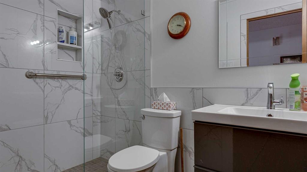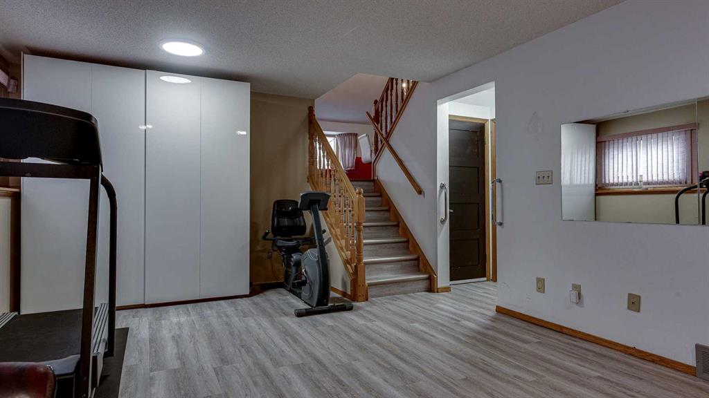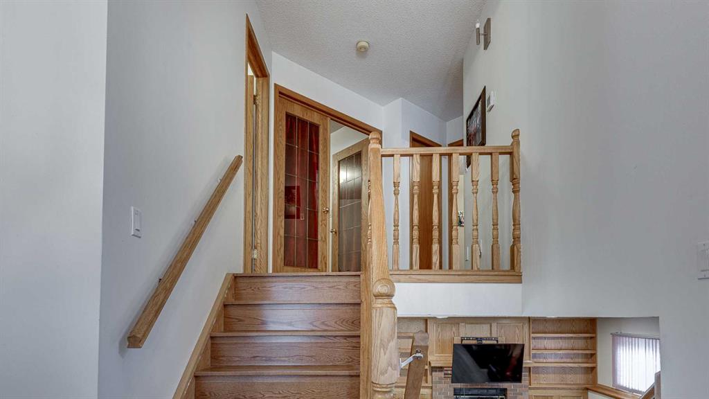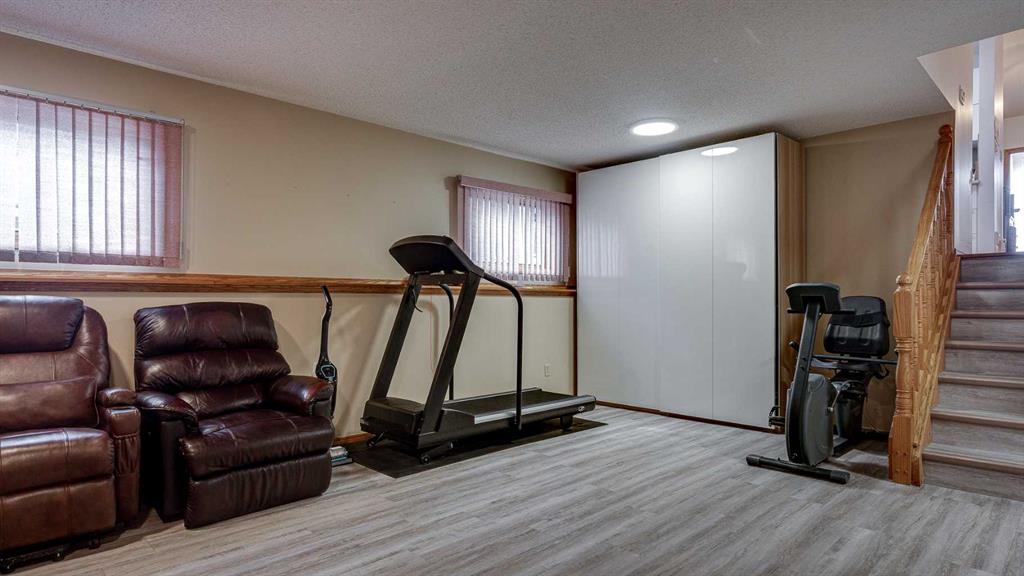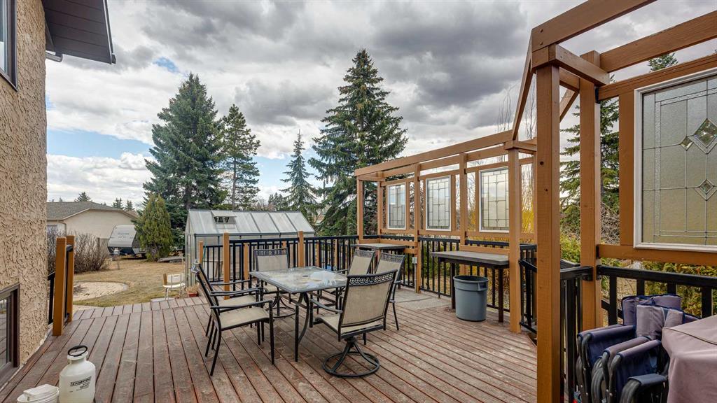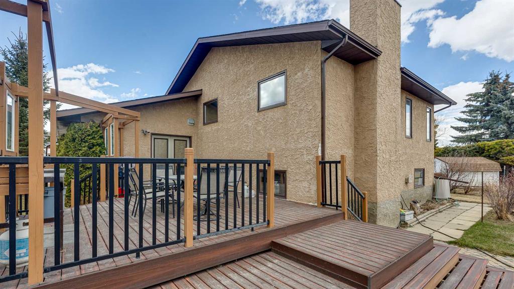 5019 60 Street Close is ideally located in one of Lacombe's most desirable neighborhoods. Curb appeal is high with the home's stucco and brick exterior. The private, pie-shaped backyard will check all the boxes for most homeowners. Parking and RV parking (with plenty of room for long trailers or a large motorhome) is easily accessible from the back lane. The large deck covered with composite deck material features privacy glass, built-in drink counters, and a natural gas line for the cooking grill. The paving stone patio area with fire pit provides additional space for rest, relaxation, and entertaining. Large trees offer some shade, but not too much, as the raised garden beds (included in sale) and greenhouse (also included) catch plenty of sun during the growing season. You will appreciate the extra storage space in the garden shed. Step inside through the front door to spacious entry and open living/dining area with vaulted ceilings. The modern kitchen features a large double sink, stainless steel appliances, gas top stove, striking hood fan, separate oven, glass tile backsplash, and luxurious stain-resistant countertops. A built-in workstation is smartly tucked into a light filled corner with pleasant outside views. Three bedrooms fill the upper level. The good-sized primary bedroom is connected to a stunning 3 piece bathroom. (All the bathrooms in this home have been significantly upgraded.) The tile work is impressive. The shower is barrier-free (no step is required). The other two bedrooms are perfect for little ones and/or guests. These rooms share a second, 3 piece bathroom on this floor. It too, has been renovated and features amazing tile work and a barrier-free shower. The spacious family room in the lower level has a wood burning fireplace faced with tile and brick. The fourth bedroom is located just off the family room. The 4 piece ensuite bathroom attached to the bedroom is impressive. Finished similarly to the upstairs bathrooms, this spa-like bathroom has a steam shower with sitting bench and a bonus jetted tub. The laundry room is situated on this level as well. The separate entrance to the side yard on this level is readily accessed from the front driveway or backyard parking pad. The 2nd lower level gives the homeowner further options. The largest space can function as a recreation area, theater room, craft area, or exercise room. There is storage galore on this level including a true cold room. The utility room is loaded with quality appliances: high efficiency furnace, hot water tank, water softener, automatic humidifier control, central vacuum, and heat recovery ventilator that provides energy efficient air exchange and improved air quality. All this, plus a high quality air conditioner. The attached heated garage (with drain) offers convenient access to the kitchen (for grocery days). 5019 60 Street Close is a terrific family home. Homes with special yards like this are hard to find in the City of Lacombe.