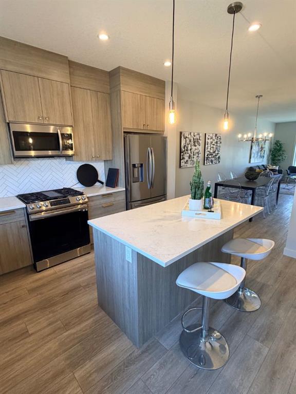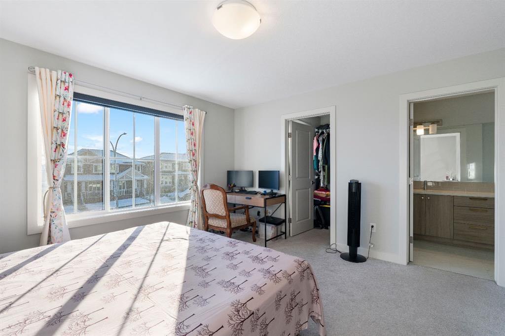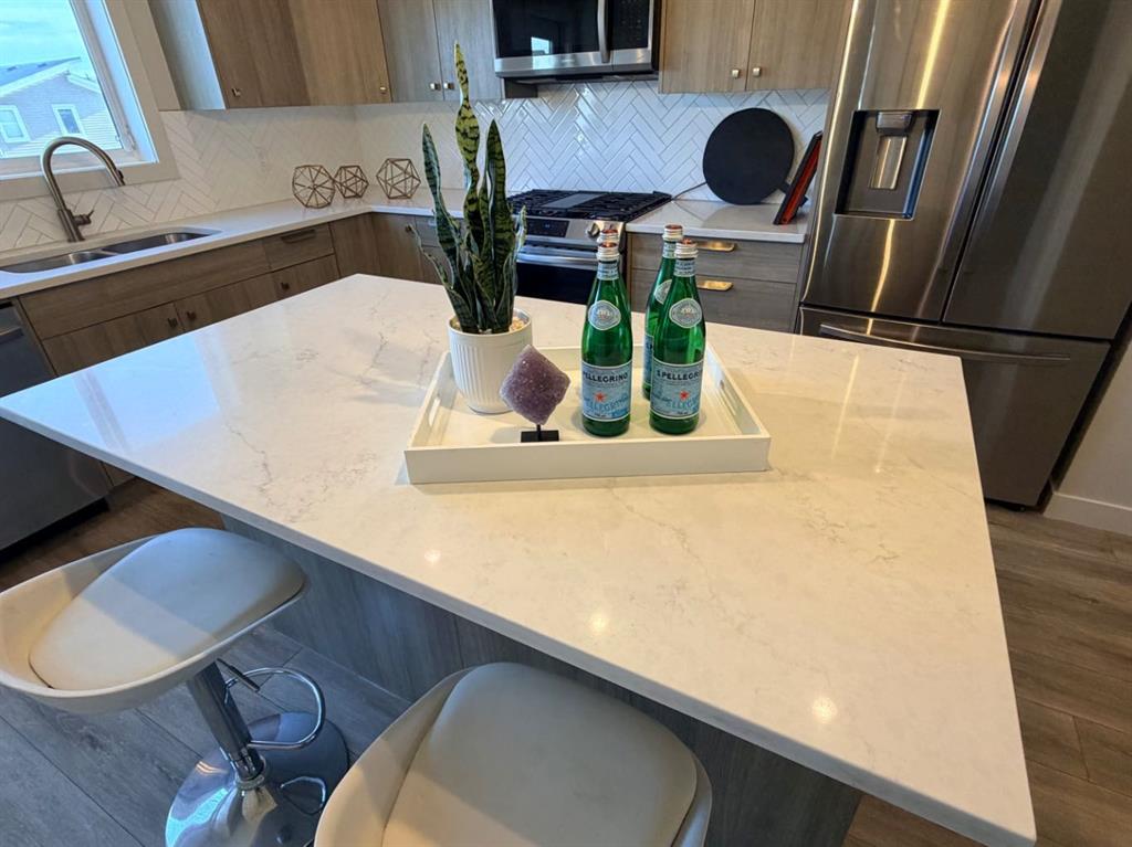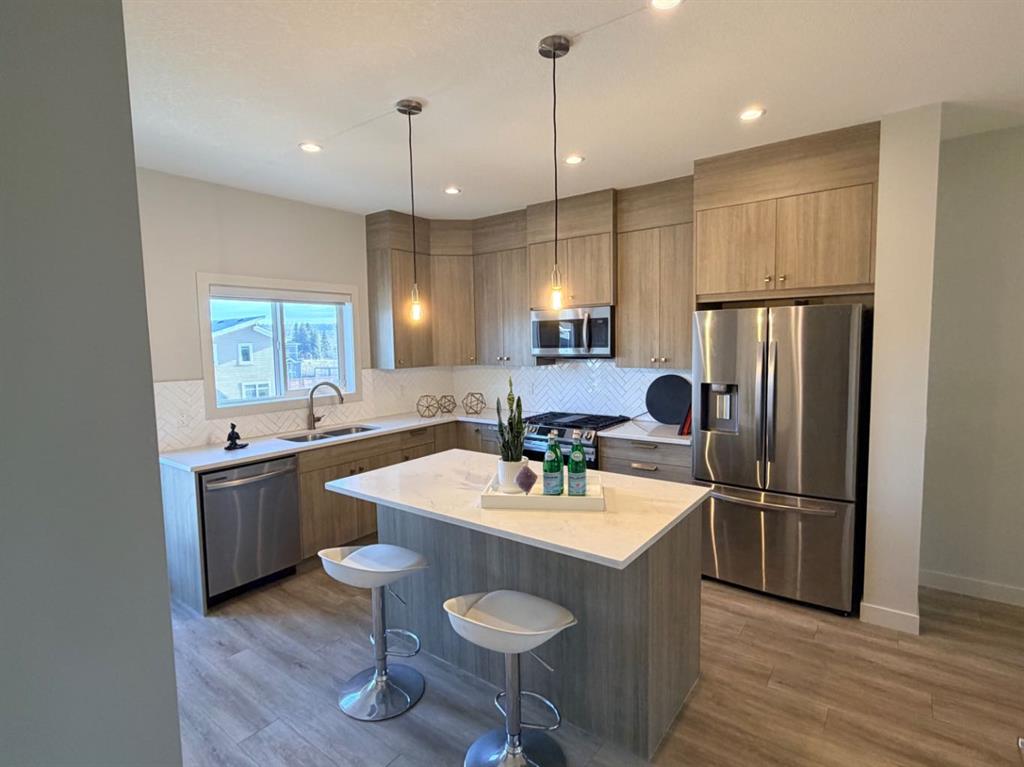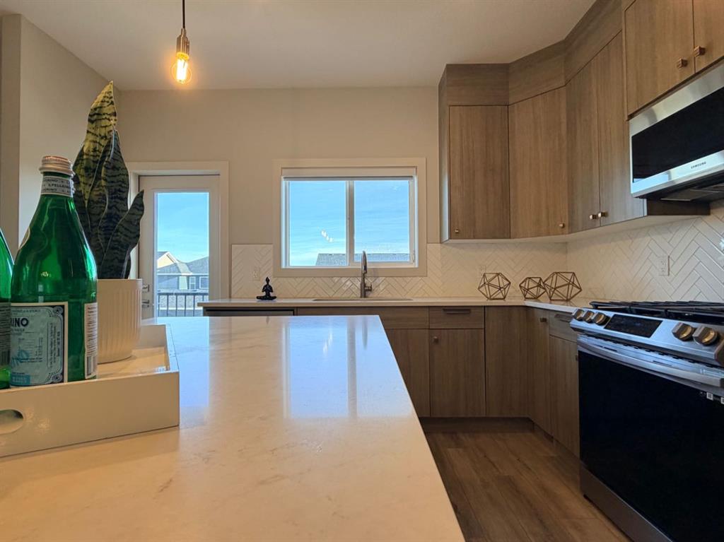 Welcome to this stunning, sun-filled, and thoughtfully designed fully finished semi-detached home, complete with a walkout illegal basement suite currently rented for $1,300/month plus 40% utilities, located in one of Cochrane’s most sought-after communities—Rivercrest. Framed by breathtaking mountain views and just steps from Bow Valley School, this home offers an exceptional setting for families and investors alike. Boasting over 2,100 sq. ft. of well-planned living space, this home delivers a complete package featuring 4 bedrooms, 3.5 bathrooms, a main-floor den, an open-concept layout, an upgraded kitchen, a walkout basement, and an oversized double garage (22'3" x 24'). As you step inside, you are immediately welcomed by a bright and inviting living area, enhanced by large windows and automated blinds for added comfort and convenience. The dining space flows effortlessly into the impressive chef-inspired kitchen, showcasing quartz countertops, premium appliances, full-height cabinetry, elegant gold hardware, and a matching gold faucet. A spacious centre island doubles as the perfect breakfast bar. Tucked away on the main floor is a private den—ideal for a home office or study. Step outside onto the upper deck, the perfect place to enjoy your morning coffee while taking in the scenic surroundings. A side staircase leads down to the backyard, offering additional outdoor space for entertaining or relaxation. Upstairs, you’ll find a charming tech or kids’ play nook, followed by three generously sized bedrooms, many with beautiful valley views. The primary suite features a well-appointed ensuite with dual vanities, a walk-in closet, and a glass-enclosed standing shower. A full shared bathroom and stacked laundry complete this level. The fully finished walkout basement is a standout feature, offering a bright and spacious living area with large windows, a complete kitchen with quartz countertops and stainless steel appliances, a modern upgraded bathroom, and a sunny, well-sized bedroom. A separate laundry set adds further functionality and appeal. Ideally located with quick access to Calgary (20 minutes), Downtown Calgary (30 minutes), and Canmore (1 hour), this home offers the perfect balance of scenic living and everyday convenience. With strong rental potential estimated at $3,800–$4,200 per month, this property presents an outstanding opportunity for homeowners and investors alike. Don’t miss your chance to make Cochrane home.