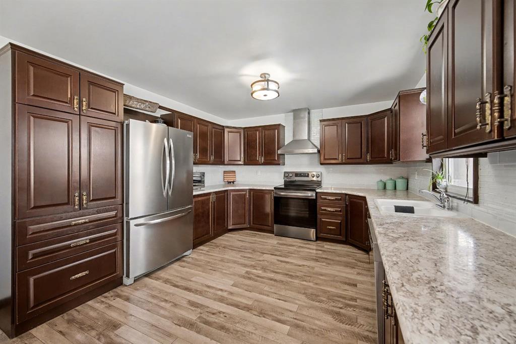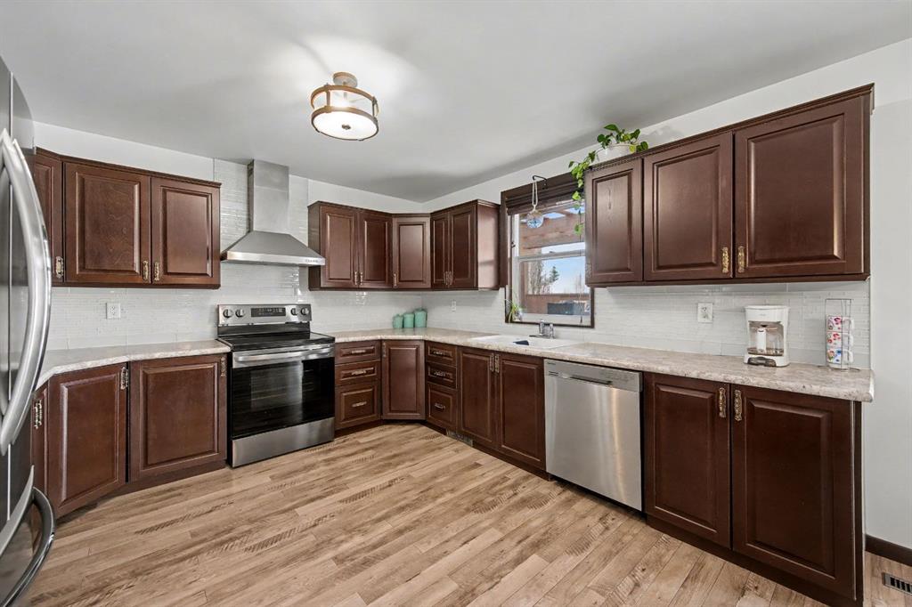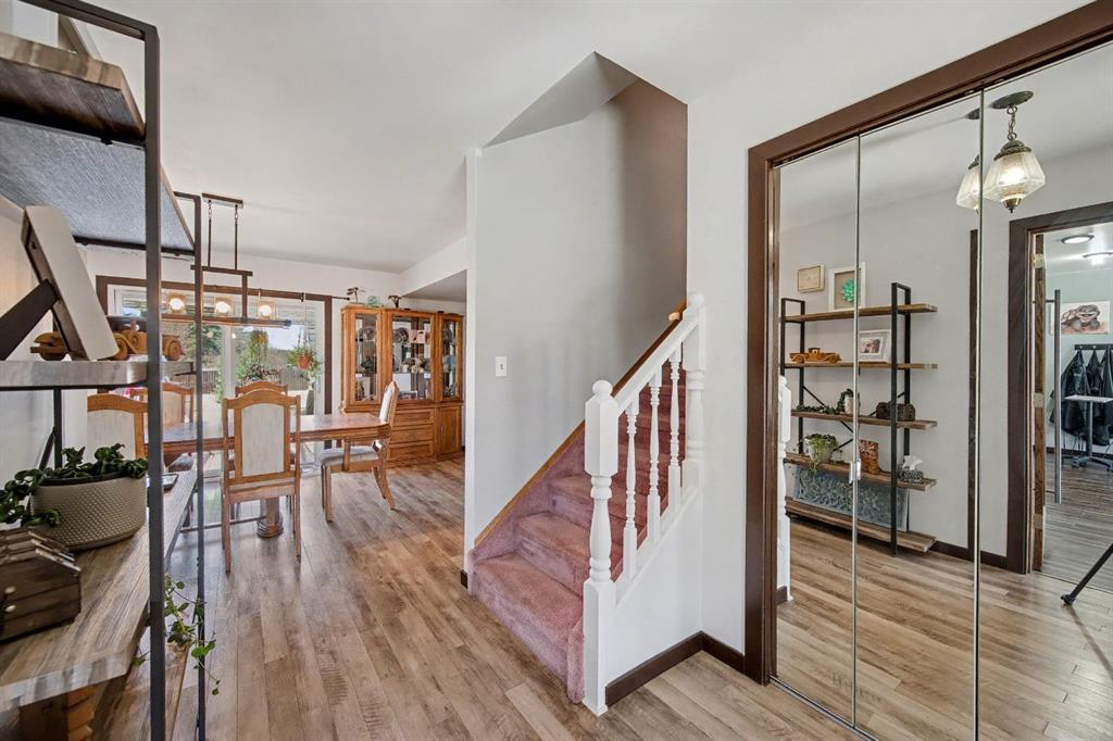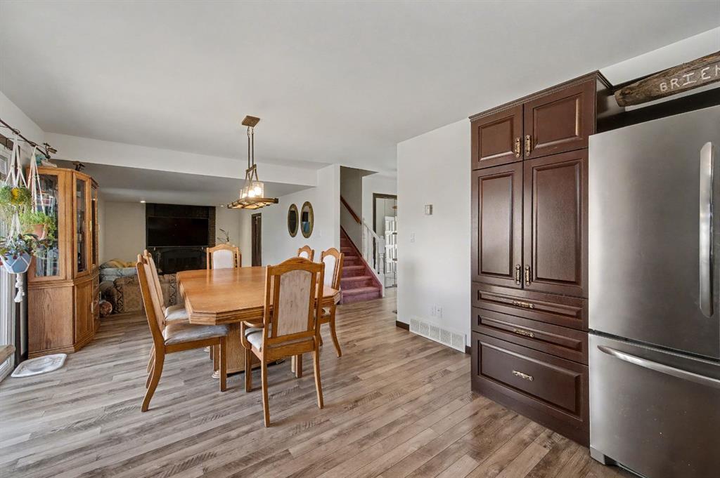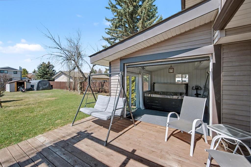 Imagine your escape in Carstairs- away from the hustle and bustle of the city, but yet close and easy access! A MASSIVE private BACKYARD oasis awaits: beautifully landscaped with 4 apple trees and and many other trees. Sit back and relax on your deck or soak in the enclosed hot tub. The main floor features a front living room- which is very versatile could be used for home office, kids playroom, and so much more. The UPDATED kitchen has STAINLESS STEEL appliances and plenty of of cabinets and counter space. The dining area will easily accommodate a large table, and it overlooks the family room with a cozy WOODBURNING FIREPLACE. There is main floor laundry and and updated bathroom. upstairs you will be 3 spacious bedrooms, 2 UPDATED bathrooms including and ENSUITE in the primary bedroom. The basement is FINISHED with 2 additional bedrooms, a large family/rec room. Plenty of storage and rough in plumbing for a bathroom. There is also a DOUBLE ATTACHED GARAGE + Walking distance to schools and many more amenities. You will not want to miss out on this great home on one of the best lots in Carstairs!!