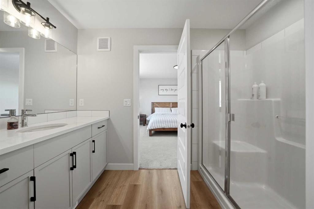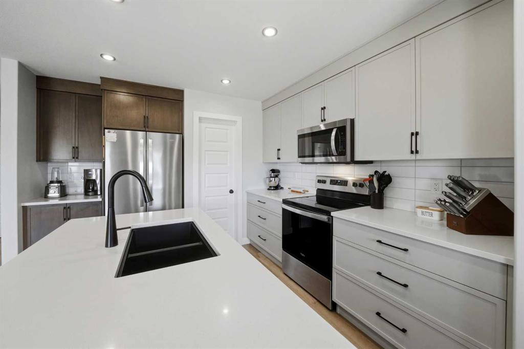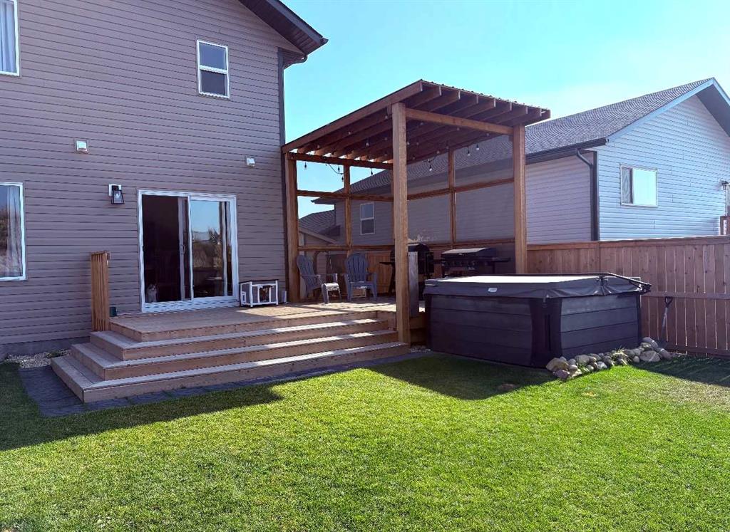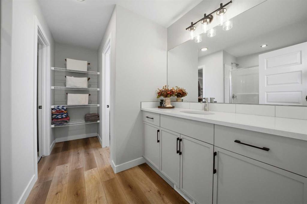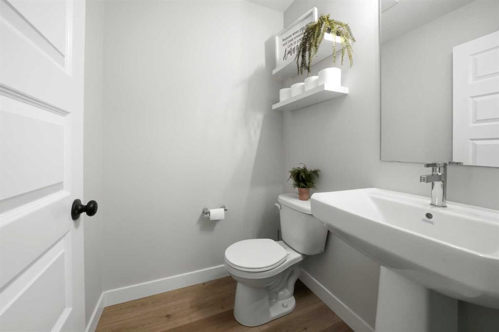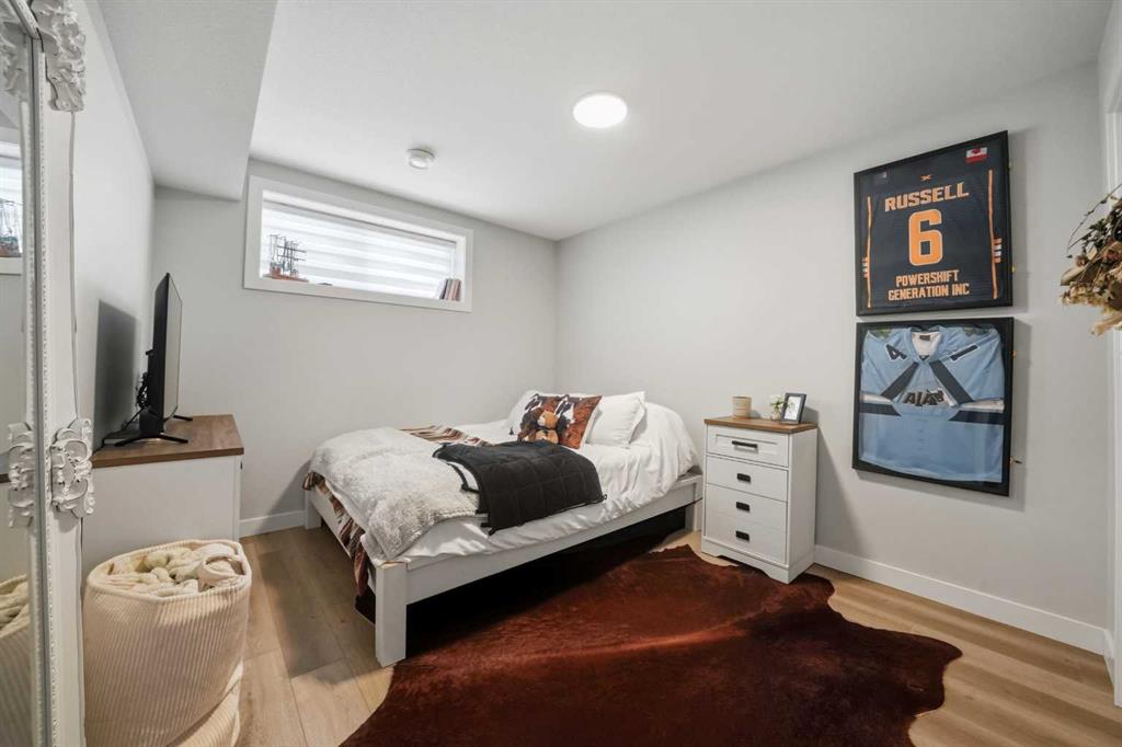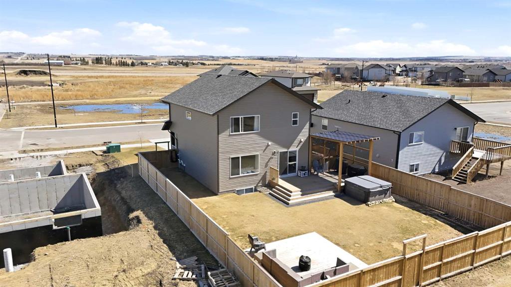 Welcome to this stunning fully finished two-storey home in the desirable community of Trinity Crossing. Offering the perfect blend of location, functionality, and modern design, this home is ideally situated just steps from a large green space, scenic pond walking paths, a school, and a playground. Making it an excellent fit for families looking to stay connected to outdoor living and everyday convenience. The thoughtfully designed 1,870 sq ft layout features a bright, open-concept main floor with luxury vinyl plank flooring, large windows, and clean, modern finishes throughout. The kitchen is both stylish and functional, showcasing two-toned cabinetry, quartz countertops, stainless steel appliances, a full tile backsplash, and a spacious sit-up island, along with a walk-in pantry for added storage. The adjacent dining area offers direct access to the back deck through oversized patio doors, creating a seamless flow for everyday living and entertaining. The living room is warm and inviting, filled with natural light and designed for comfort. Upstairs, you’ll find a spacious bonus room, two generously sized bedrooms, each complete with their own walk-in closet, a well-appointed 4-piece bathroom, and conveniently located upper-level laundry. The primary suite serves as a private retreat, featuring a large walk-in closet and a 3-piece ensuite with walk-in shower and a separate water closet for added privacy. The fully finished basement extends the living space even further, offering a large family room with a dry bar, an additional bedroom, and a 4-piece bathroom, perfect for guests, teens, or flexible use. Step outside and into your fully fenced and landscaped west facing backyard and enjoy the outdoor living space, complete with 2 decks, pergola and shed. Additional Features: Celebright Lighting (front of house), Underground Sprinklers, Finished & Heated Attached Double Garage. This 2-year-old home also offers the balance of the Alberta New Home Warranty Program, providing added peace of mind.