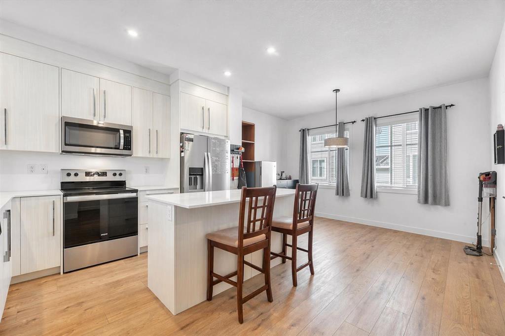 Stylish, spacious, and incredibly functional—this 3-storey END UNIT townhouse in Savanna is the one you’ve been waiting for. Less than 4 years old and offering the peace of mind of the remaining new home warranty, this property stands out with a versatile layout designed for modern living. Step inside and you’ll immediately appreciate the bright ground-level 4th bedroom—perfect as a home office, guest space, a private workspace for today’s lifestyle needs or a 4th bedroom for your family. Upstairs, the heart of the home shines with a sun-filled open-concept living, dining, and kitchen area, ideal for both everyday living and entertaining. The kitchen offers style and function in equal measure, while the spacious living room flows seamlessly to a large private balcony—perfect for morning coffee or unwinding at the end of the day. A convenient 2-piece powder room completes this level. The top floor is thoughtfully designed for comfort and privacy, featuring a generous primary retreat with a 4-piece ensuite and large walk-in closet, along with two additional bedrooms and a full 4-piece main bathroom—ideal for families or shared living. Additional highlights include a convenient 2-car attached garage, plenty of storage throughout, visitor parking in the complex and the added privacy and natural light that comes with being an end unit. Located in the vibrant and growing community of Savanna in Saddle Ridge, you’re close to schools, shopping, transit, and all essential amenities—making this not just a home, but a smart investment in lifestyle and location. Move-in ready, packed with value, and priced for today’s market—this is a home you don’t want to miss. * Some photos are virtually staged.