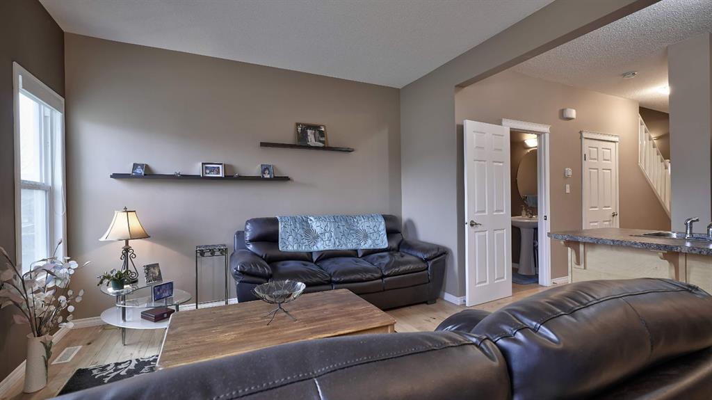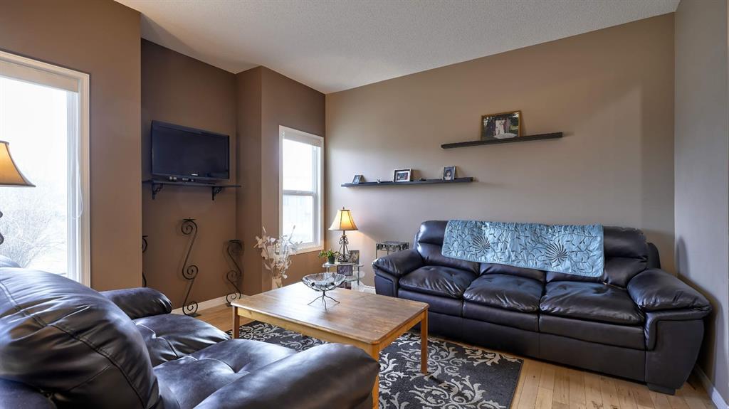 Great location for this unit, close to Catholic high school, public high school and numerous amenities as well as restaurants. The main floor has solid hardwood throughout giving a natural warm feel. Convenient half bath on the main. Hi there is a good size kitchen with numerous cupboards, a pantry and pot drawers. The eating area and living room overlook a beautiful green space. Step outside from here to the cement patio to enjoy the south backyard. Downstairs is fully finished, which includes the laundry area and spacious rec room, potential office or kids hangout area. Upstairs welcomes you with a good size landing, which feels nice and open. Primary bedroom is large with a walk-in closet and a 4 piece ensuite. Two spare bedrooms at the end of the hall with a 4 piece main bath. The single attached garage gives you a good space for your vehicle.