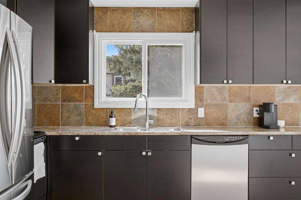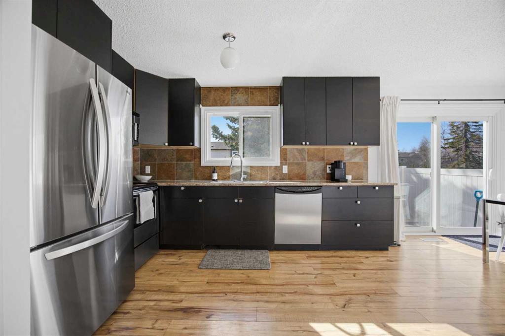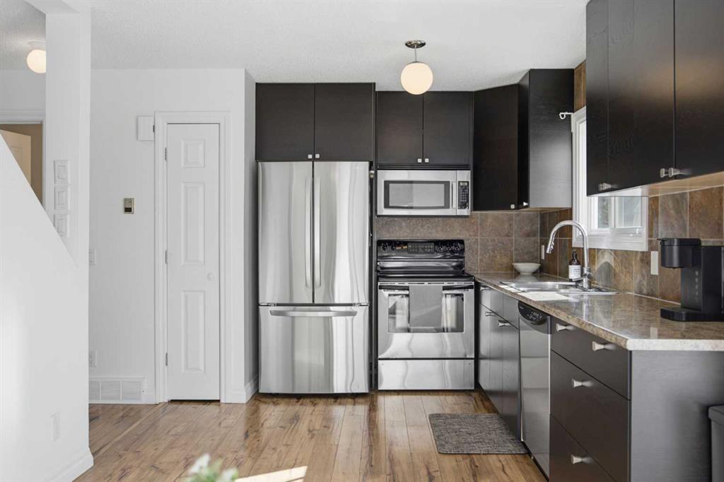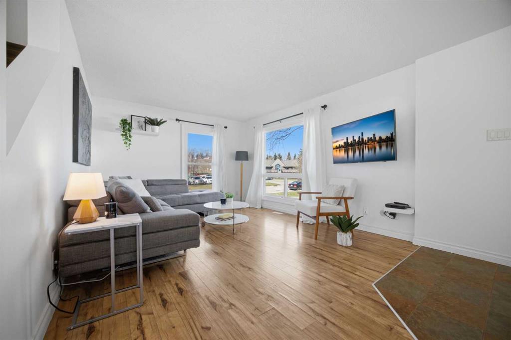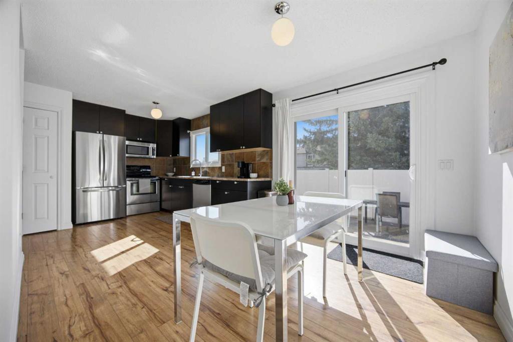 **Open House Saturday, April 25 12:00pm-3pm**| Don't miss this attractively priced and thoughtfully renovated 2-bedroom + den END UNIT boasting 1,168 square feet of bright, open living area. Recent updates provide peace of mind and modern appeal, including newer flooring, newer windows, a full kitchen renovation, and updated fencing. On the main floor you will be immediately greeted with a sunny and spacious living room flowing into renovated kitchen and dining room with sliding patio doors. The upstairs features a generous sized primary bedroom, 4 piece bathroom, second bedroom and a versatile den. Enjoy your south facing private backyard, which features a beautiful stamped concrete patio for a low-maintenance outdoor retreat. Fantastic walkability defines this location, as you are just steps away from coffee, groceries, fuel, entertainment, and parks. Living stays affordable with low condo fees and convenience is unmatched with your parking stall located just a couple of steps from your door. With unlimited street parking right outside, in-suite laundry, and plenty of storage, this home is as practical as it is charming. Flexible possession is available, so don't miss out—call your favorite Realtor TODAY for more information!