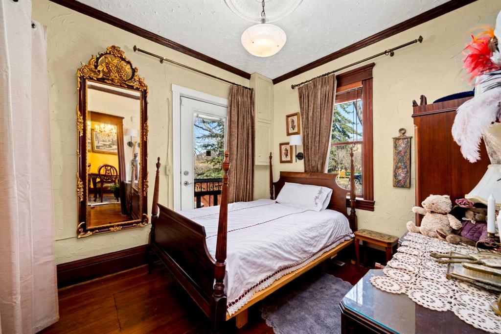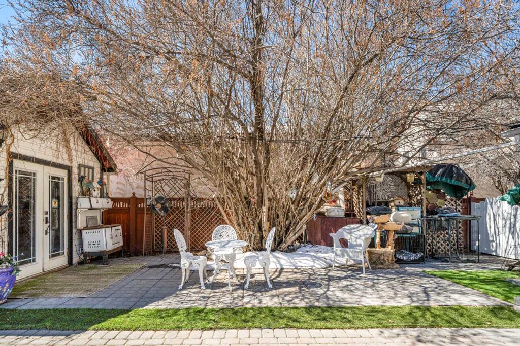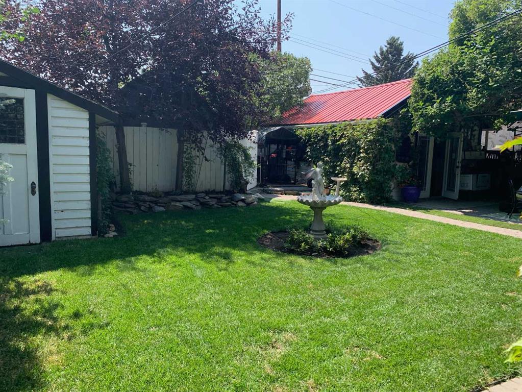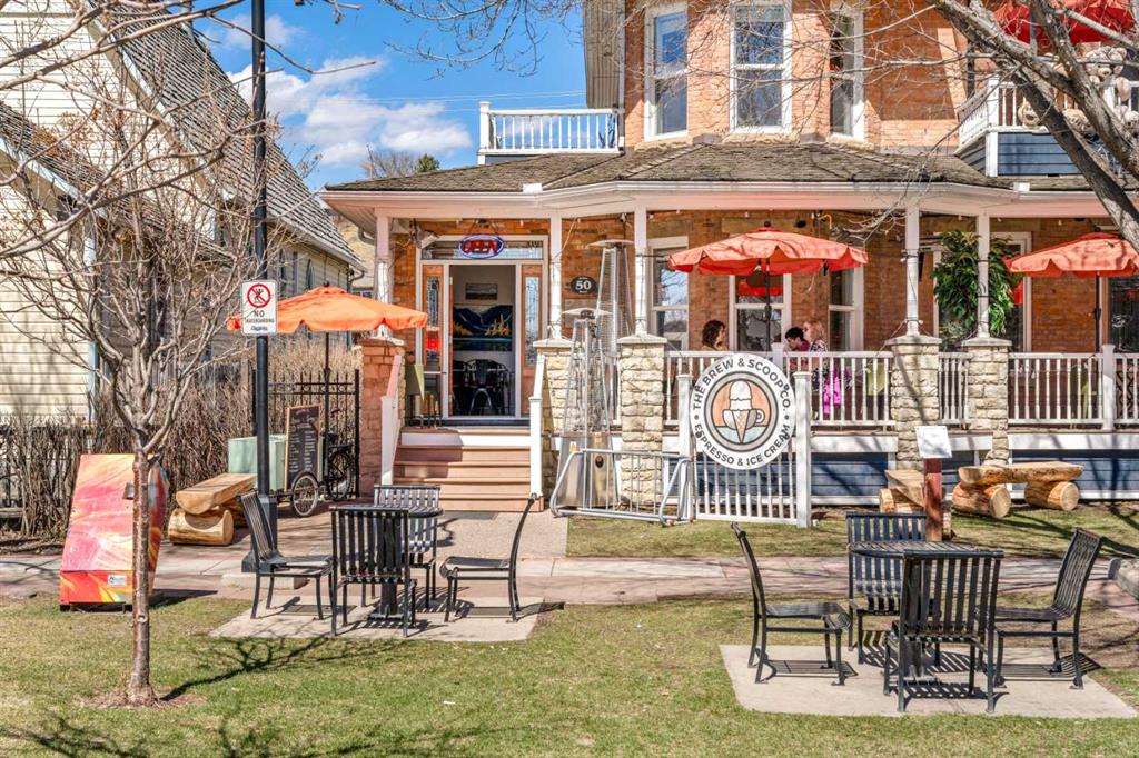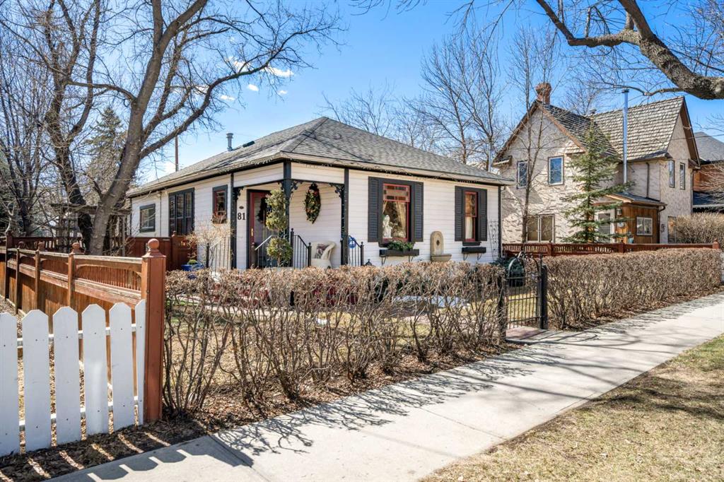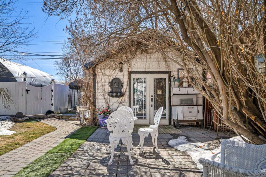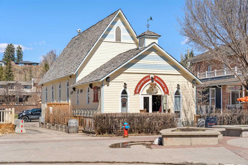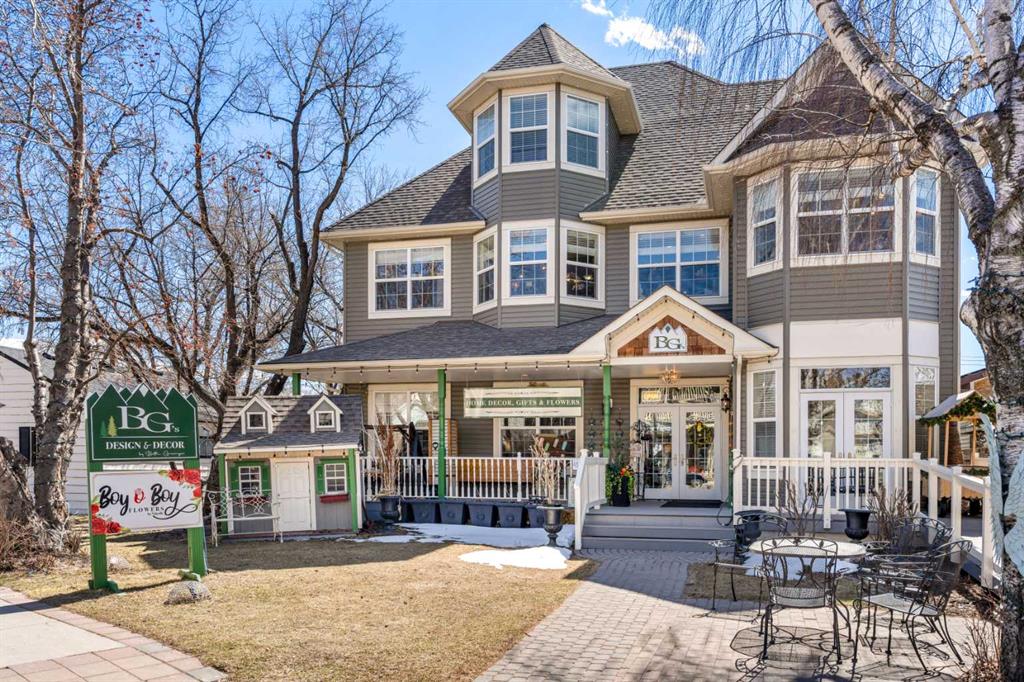 A rare heritage gem in the heart of downtown Okotoks Set along Elma, a charming tree lined street, this storybook home is filled with timeless character and endless possibility. Once home to a boutique salon and antique store, this property lends itself beautifully to a variety of uses including a residence, retail, office space, café, tea house, restaurant, salon or bed and breakfast. Original hardwood floors, vintage doors and hardware, and stunning stained glass windows create a sense of warmth and history the moment you step inside. The main living space is bright and open, flowing seamlessly into a thoughtfully updated kitchen complete with granite countertops, stainless steel appliances, and a gas range. There are two flexible spaces perfect for hobbies, work from home, or creative pursuits. The front bedroom is especially unique, featuring its own exterior entrance and a convenient two piece bath, making it ideal for a home based business or private client space. Tucked into the garden, the detached guest quarters offer in floor heat and their own private patio, surrounded by greenery. A truly special space for visitors or future opportunity. Romantic, whimsical, and rich with character, this is more than a home, it is an opportunity to be part of Okotoks history while creating something truly special of your own. Showings are now underway. We warmly invite you to book your private viewing and experience the home and its endless possibilities firsthand.