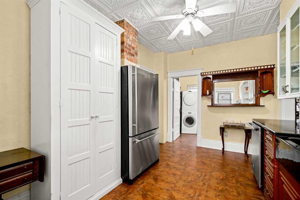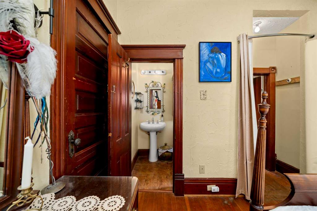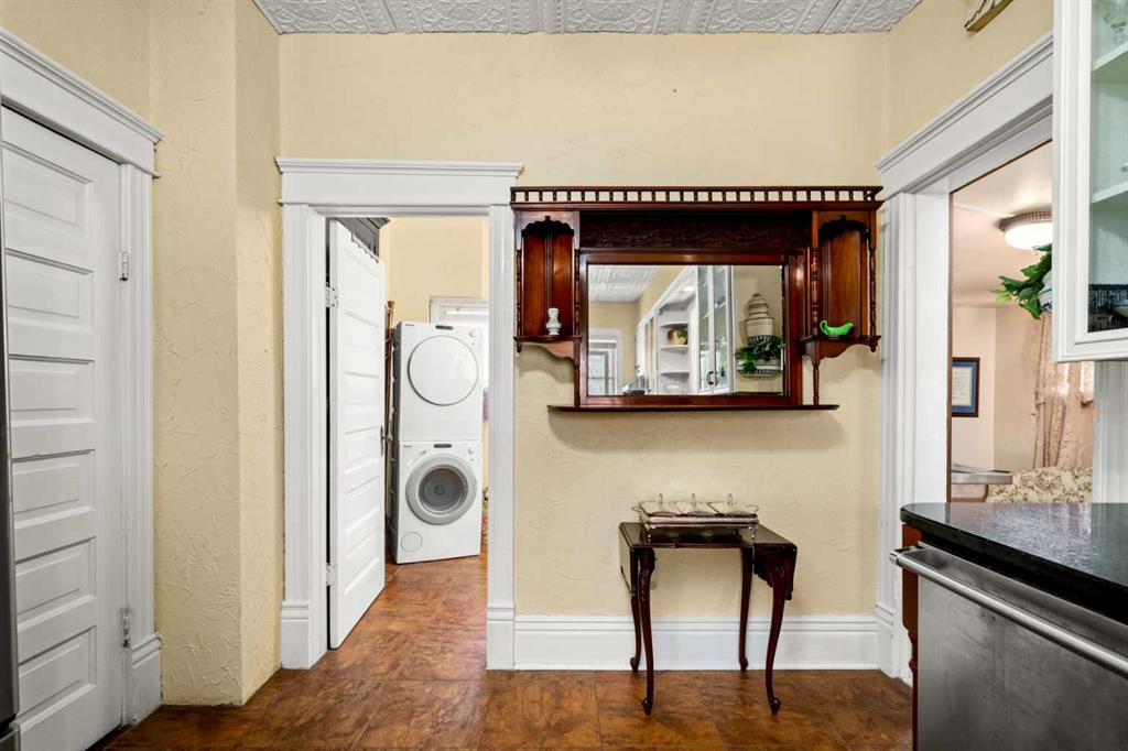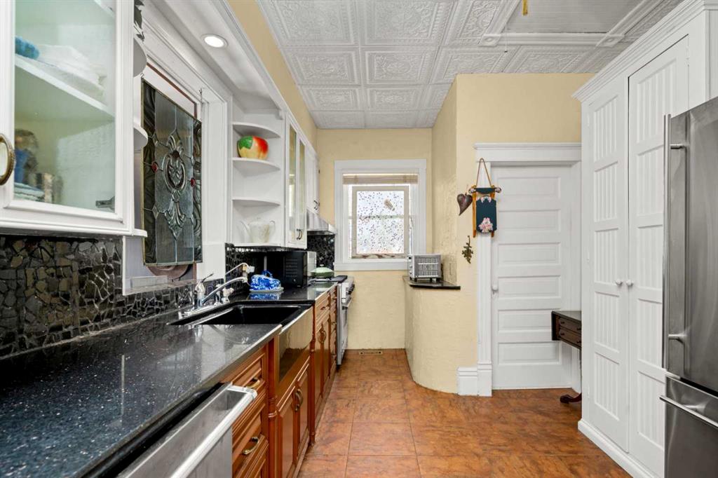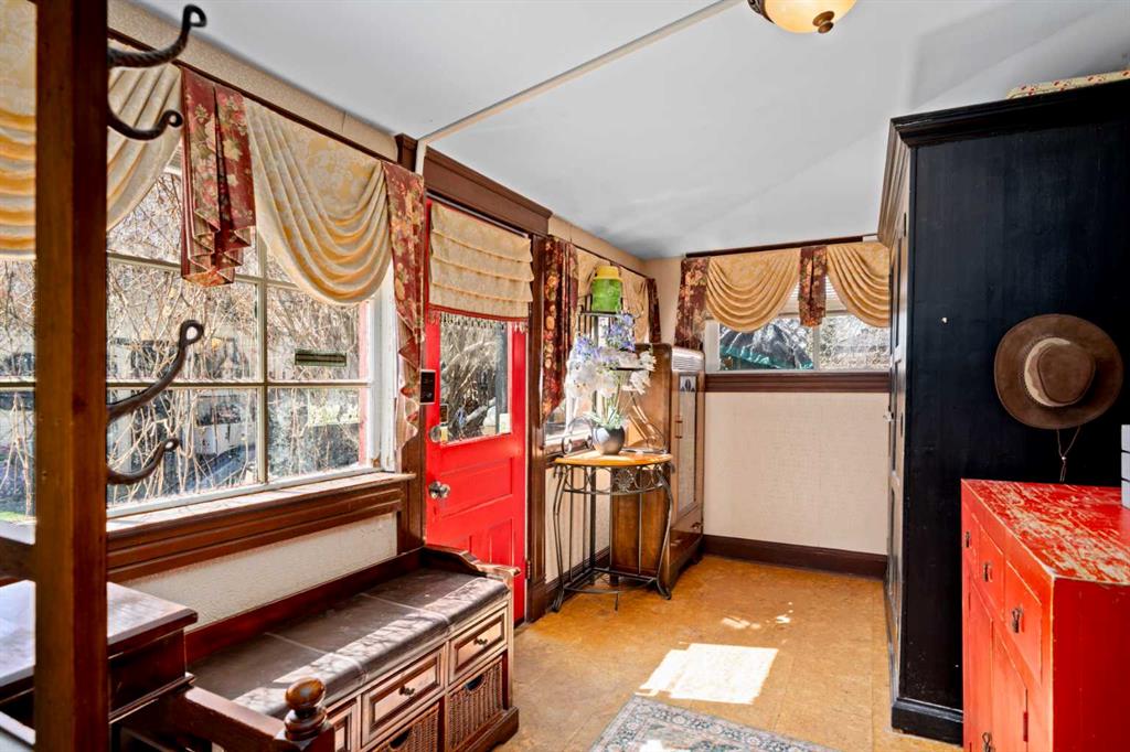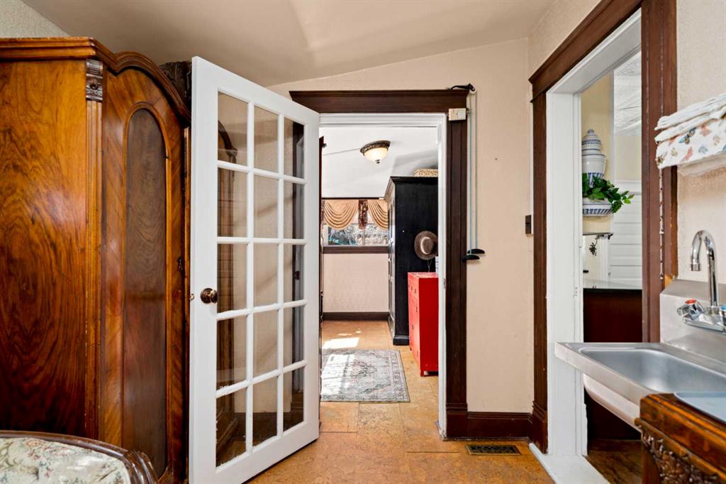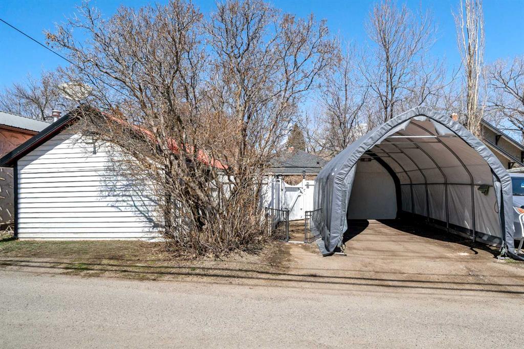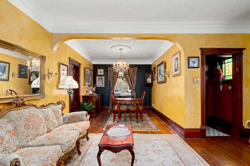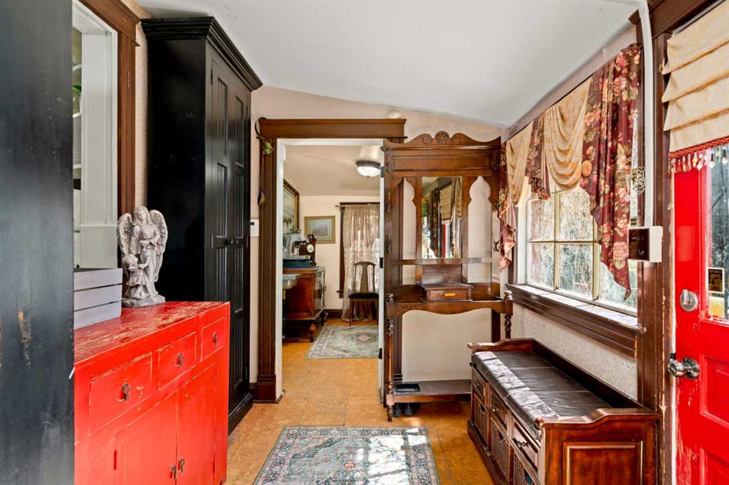 A rare heritage gem in the heart of downtown Okotoks Set along Elma, a charming tree lined street, this storybook home is filled with timeless character and endless possibility. Once home to a boutique salon and antique store, this property lends itself beautifully to a variety of uses including a residence, retail, office space, café, tea house, restaurant, salon or bed and breakfast. Original hardwood floors, vintage doors and hardware, and stunning stained glass windows create a sense of warmth and history the moment you step inside. The main living space is bright and open, flowing seamlessly into a thoughtfully updated kitchen complete with granite countertops, stainless steel appliances, and a gas range. There are two flexible spaces perfect for hobbies, work from home, or creative pursuits. The front bedroom is especially unique, featuring its own exterior entrance and a convenient two piece bath, making it ideal for a home based business or private client space. Tucked into the garden, the detached guest quarters offer in floor heat and their own private patio, surrounded by greenery. A truly special space for visitors or future opportunity. Romantic, whimsical, and rich with character, this is more than a home, it is an opportunity to be part of Okotoks history while creating something truly special of your own. Showings are now underway. We warmly invite you to book your private viewing and experience the home and its endless possibilities firsthand.