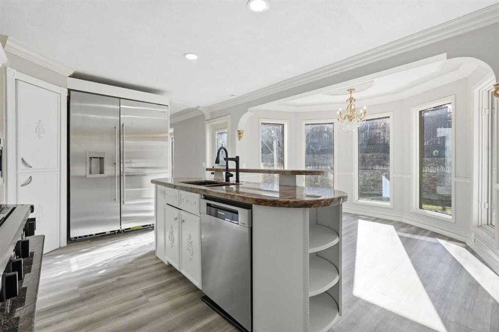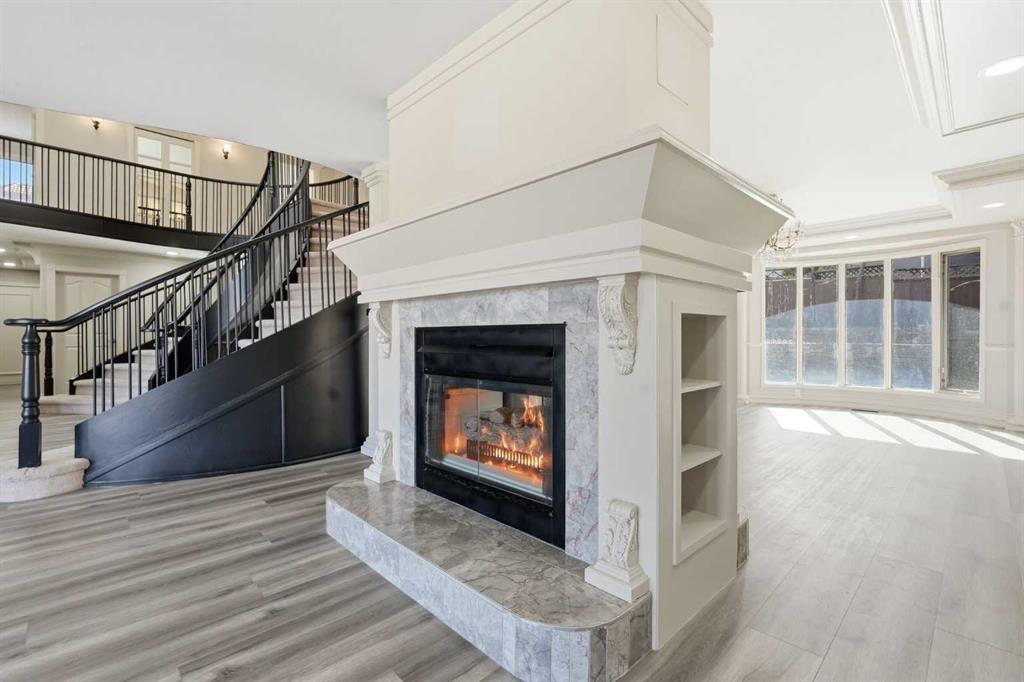 OPEN HOUSE SATURDAY, APRIL 25TH FROM 1-4 PM & SUNDAY, APRIL 26TH FROM 1-3 PM. Situated on a 69’x115’ lot in the established community of Patterson, this expansive 3 bedroom home offers nearly 5,800 sq ft of refined living space. Inside, the grand double staircase immediately commands attention, its sweeping curves, elegant black railings, and open to above design creating a dramatic first impression. The main floor features an abundance of well appointed living spaces. The formal living and dining rooms are anchored by an ornate double sided fireplace, while two large bay windows bathe the rooms in natural light. The kitchen is tastefully finished with white millwork cabinetry, granite countertops, new stainless steel appliances, and a striking black backsplash. A bay window breakfast nook and gold chandelier add warmth and elegance. Just off the kitchen, a spacious family room with a decorative feature fireplace provides an inviting place to gather. A 2 piece powder room and laundry room with sink and storage complete the main level. Upstairs, a generous bonus room and three large bedrooms await, each offering walk in closets and private ensuite baths. The impressive primary retreat, complete with a private balcony, lives like a true oasis. Its expansive layout is anchored by a double sided fireplace that gracefully separates the space into two distinct, inviting spaces. The luxurious 5 piece ensuite includes dual sinks, an oversized jetted tub, a separate shower, and direct access to the walk in closet. The fully developed basement extends the living space with a theatre room that opens to a massive recreation area—ideal for a pool table, games, or additional seating—along with a comfortable family room. The level also includes two well appointed 3 piece bathrooms, one featuring an oversized jetted tub. Additionally, all Poly B has been removed from this residence. Outside, the large backyard with an upper deck and patio offers an excellent setting for outdoor entertaining, and parking is effortless with a triple attached garage. This impressive home is ideally located near scenic Edworthy Park, schools, shopping, public transit, and provides easy access to Bow and Sarcee Trails.