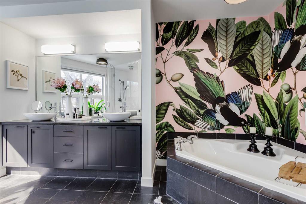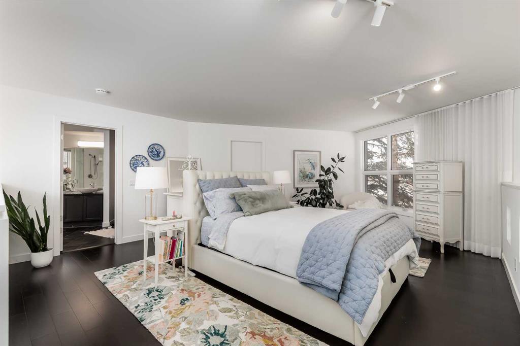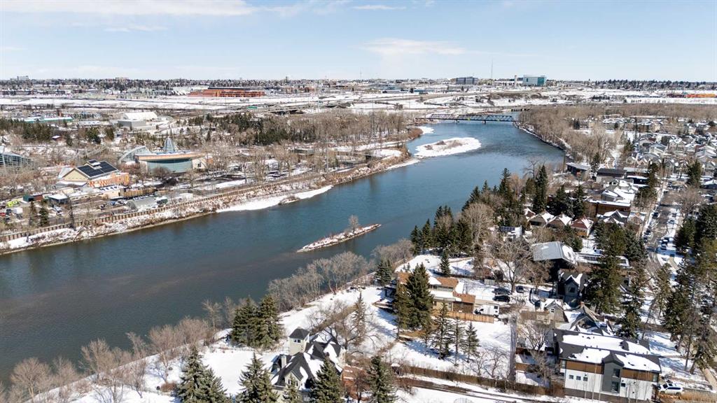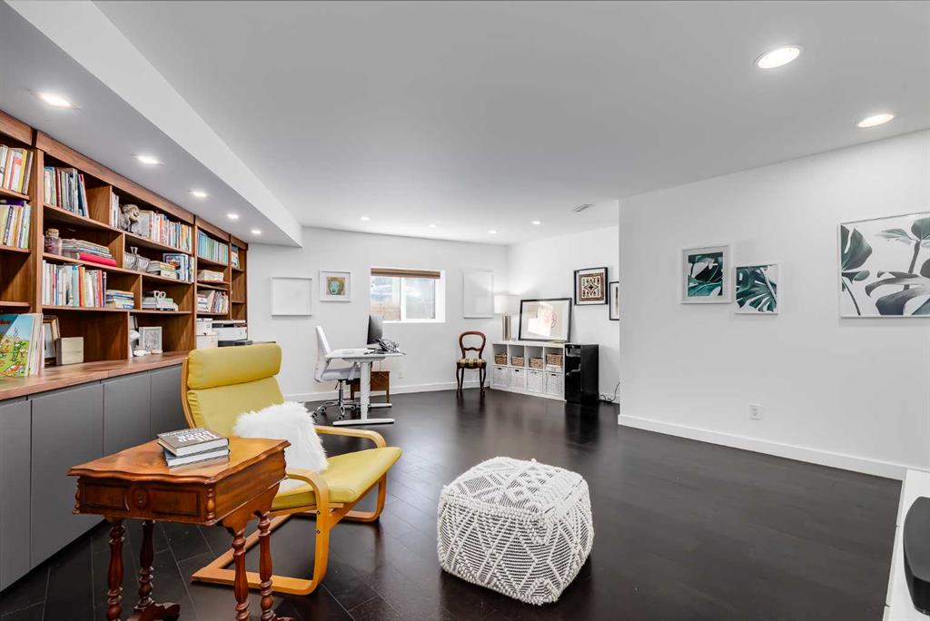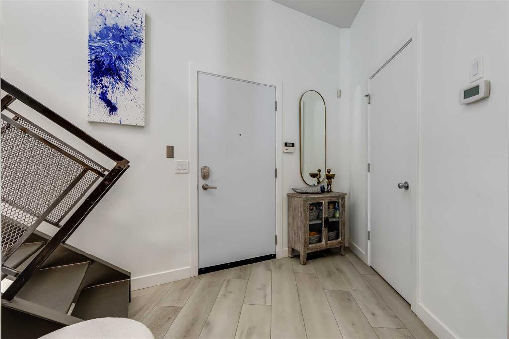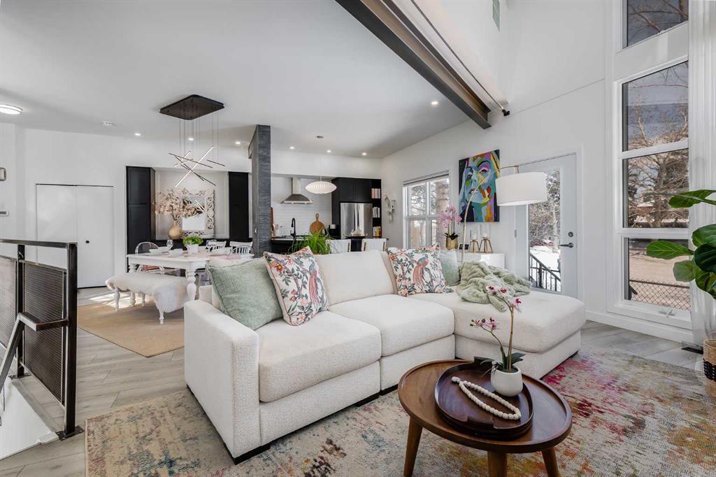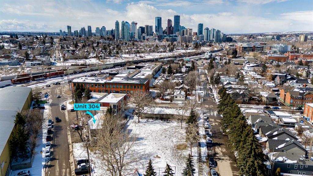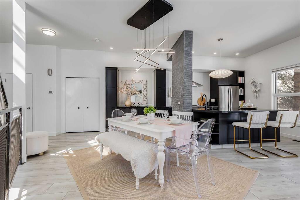 This distinctive end-unit townhouse in the sought-after community of Inglewood offers a rare opportunity for those seeking a flexible live/work environment, with the ability to operate a business subject to board approval, or simply enjoy a unique place to call home. With over 2,100 square feet of developed living space, this is the largest residence within an exclusive 12-unit complex, tucked along a quiet, tree-lined street just steps from the neighborhood’s well-known shops, restaurants, and amenities. The exterior presents a modern blend of stucco and corrugated metal siding, complemented by oversized, energy-efficient reflective windows. Inside, over $80,000 in renovations enhance both form and function. The main floor opens with a generous entryway and continues into an open-concept layout grounded by wide-plank vinyl flooring. Soaring 18-foot ceilings, expansive windows, and full-height drapery bring in natural light and add dimension, while subtle industrial elements, including exposed steel features, contribute to the home’s architectural character. The kitchen is both practical and refined, featuring black cabinetry, granite countertops, a stylish backsplash, stainless steel appliances, and a large island with seating. Adjacent dining and living areas provide a comfortable setting for everyday living or hosting, with designer lighting over the dining space and a gas fireplace anchoring the living room. Full-height windows frame views of the surrounding greenspace and park, creating a strong connection to the outdoors. A two-piece powder room completes this level. Upstairs, the entire loft is dedicated to the primary retreat, offering a private and spacious layout with cork flooring underfoot, a large walk-in closet, and a five-piece ensuite with dual sinks, a deep soaker tub, and an oversized glass-enclosed shower with bench seating. The upper balcony extends the living space outdoors, with ample room for seating and elevated views through the surrounding trees. The fully developed basement adds further flexibility with a spacious recreation area suited for a media room, office, or fitness space. A full wall of built-in shelving provides both storage and display, while additional pot lighting ensures the space is well-lit into the evening. A spacious den and a three-piece bathroom offer privacy for guests or extended use, along with additional storage. Outside, the property backs directly onto greenspace and a park, creating a natural extension of the home’s living space. A private yard offers room for a BBQ and easy access to outdoor areas. Park conveniently in any of the ample stalls at your front door or in a titled stall within the heated garage. Located in one of Calgary’s most established inner-city neighborhoods, this home is within walking distance to boutique shopping, dining, cafés, and local breweries. The Bow River pathways are just minutes away, and you’ll enjoy quick access to downtown by car or public transit. Check out the 3D Tour!