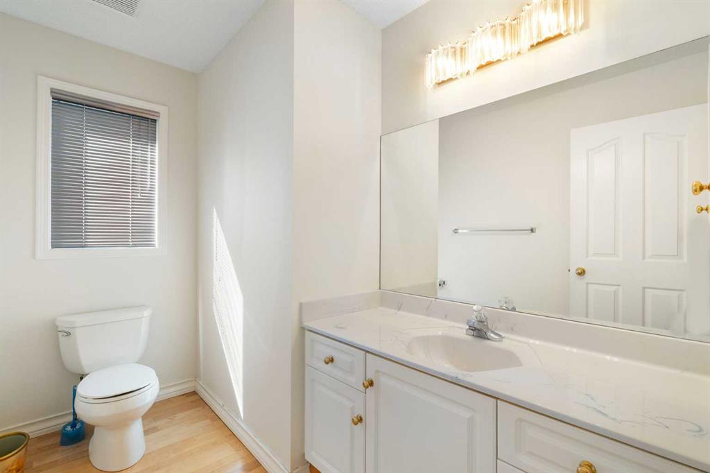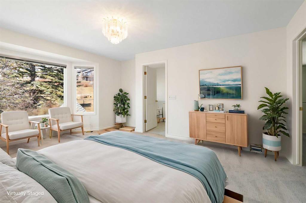 Welcome to this lovingly maintained 2-storey home, offered for the first time by its original owners. Spanning nearly 2,100 sq. ft. of functional living space, this residence perfectly combines pride of ownership with a prime location just steps from the scenic trails of Nose Hill Park. This home has been revitalized with brand-new paint and modern new carpets upstairs, providing a clean, move-in-ready canvas for its next chapter. The main floor offers a bright and open flow, with a formal living room and a dining room space ideal for both daily life and entertaining guests. The kitchen is drenched in sun with windows to the West and a sunshine ceiling, newer appliances and tile floors. The sunken family room has cathedral ceilings with large windows and a gas fireplace. There is a main floor office for all of the days you work from home. Upstairs you will find a very large primary bedroom complete with ensuite and large closet space. Two kids bedrooms and a laundry room complete the upstairs. The basement is vast and ready for your finishing touches. The sunny West backyard will ensure you enjoy long summer evenings and stunning sunsets in your private backyard. It really is a dream for gardeners and outdoor enthusiasts alike. The roof was redone just over a year ago. This is a great opportunity to own a large, move-in-ready home in a sought-after community with park access. Book your private showing today!