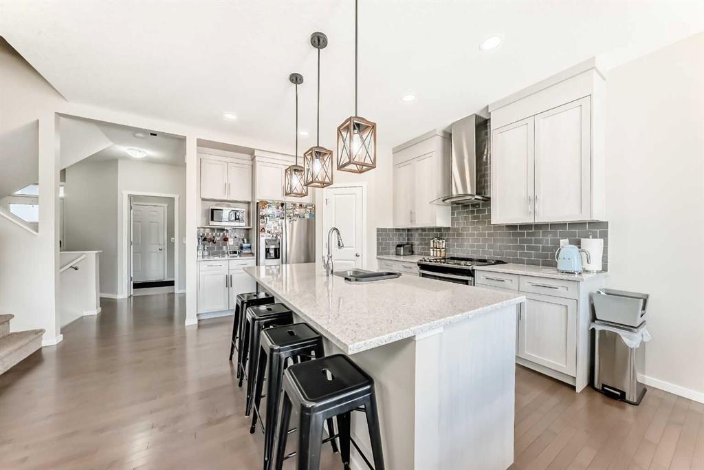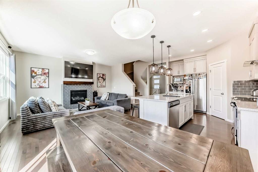 Welcome to this charming home nestled in the serene neighborhood of Belmont, SW Calgary. Boasting convenience and tranquility, this property offers easy access to key routes connecting you to the heart of Calgary and beyond. Step inside to discover a beautiful front foyer welcoming you into an inviting open main floor plan. The modern kitchen is equipped with chimney hoodfan, stainless steel appliances, a convenient kitchen island, and stylish cabinetry. The adjacent living room exudes warmth with its electric fireplace, creating a cozy ambiance for relaxing evenings. The dining room seamlessly transitions to the backyard through a patio door, the concrete pad is ideal for enjoying outdoor gatherings or for added parking spaces and lots of room for your RV or truck. A 2pc bathroom, foyer, and walk-in pantry complete the main floor layout, offering practicality and ease of living.Upstairs, a spacious bonus room/can be coverted as a 4th bedroom and laundry room provide added convenience for everyday living. The primary bedroom features an ensuite and walk-in closet, offering a private retreat. Two additional bedrooms and a family washroom complete the upper floor, providing ample space for family and guests. The unfinished basement presents endless possibilities for customization and expansion according to your needs and preferences.Situated in Belmont, with boundaries defined by 194th Avenue, Sheriff King Street & 210th Avenue, this property offers direct access to major thoroughfares such as Macleod Trail and Stoney Trail, ensuring effortless commuting and quick access to essential amenities.Don't miss out on the opportunity to make this well-maintained property your new home, where comfort, convenience, and tranquility converge seamlessly. Please call your favorite Realtor to book a Showing.