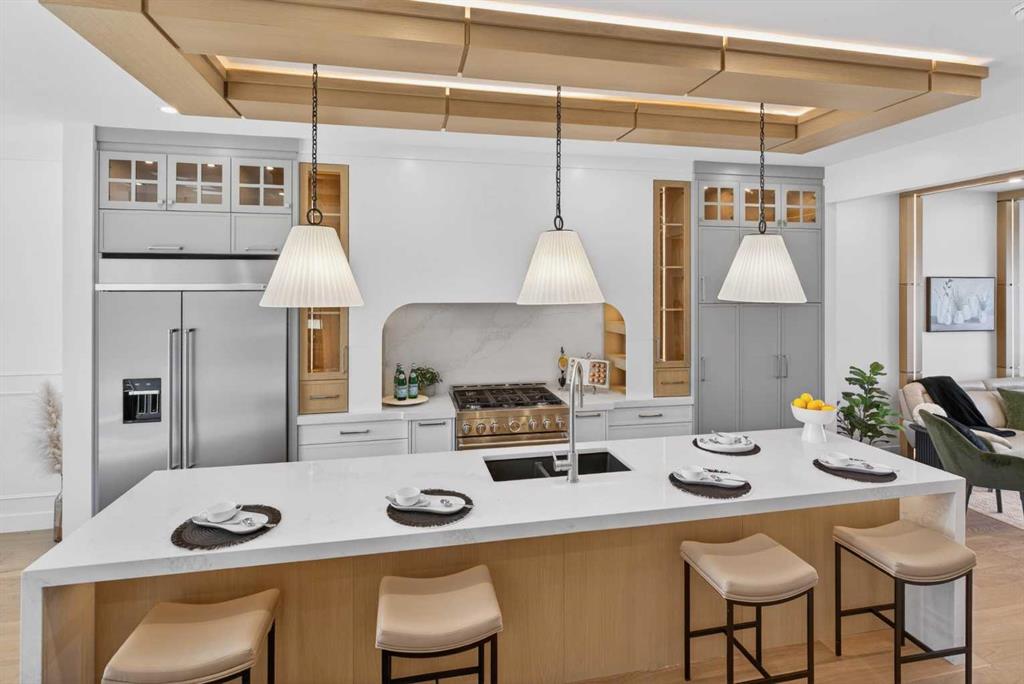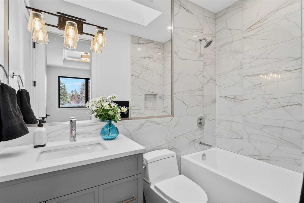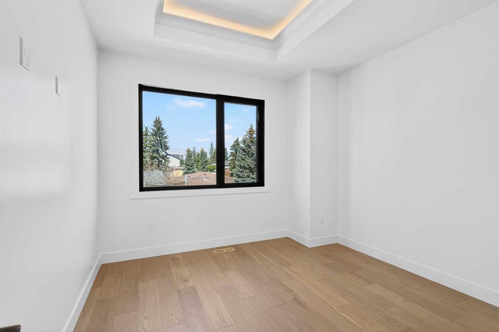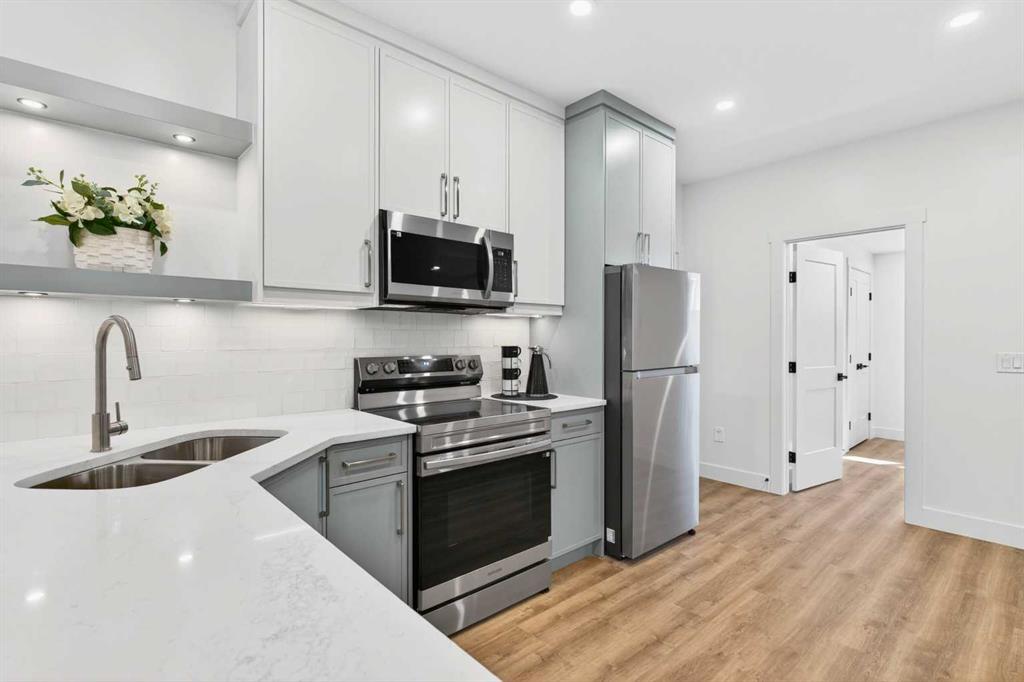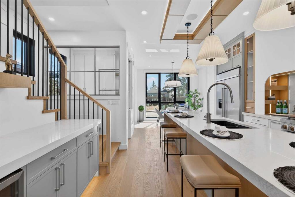 Looking for Upgrades?? Welcome to the epitome of urban elegance. Newly completed, this stunning semi~detached inner city infill is perfectly positioned in a highly sought after community. As an added advantage, this home features a legal basement suite ~ ideal for generating additional income or providing a comfortable, private space for guests. Designed with meticulous attention to detail, this luxury residence showcases a refined contemporary aesthetic enhanced by LED accent lighting throughout. The open-concept main floor is thoughtfully designed for entertaining, anchored by a chef-inspired kitchen complete with a stunning quartz island, striking pendant lighting, and premium finishes that elevate everyday living. A custom-designed arched range niche adds softness and dimension, elevating the kitchen with a Bespoke designer touch. A main floor office with detailed glass paneling adds style, function and flexibility + the front dining area is gorgeous with its wainscoting wall detail. At the rear of the home is a spacious living area with a beautiful fireplace, to offset those Alberta winter evenings. Patio doors open to your private backyard retreat ~ perfect for hosting and enjoying long summer evenings. Upstairs, the bedrooms are designed for comfort and tranquility, offering generous space, elegant ceiling details, and large windows that flood the rooms with natural light. The primary suite is truly gorgeous, featuring a spacious walk-in closet and elevated finishes. The spa-inspired ensuite is a standout, complete with classic tile detailing, dual sinks, a soaker tub, and a massive shower with a fully installed steam system. The upper two levels are wired for sound, and the home includes a roughed-in vacuum system and is prepped for A/C installation. The fully developed lower level offers a complete legal suite with a full kitchen, a spacious living area, a bathroom, and two bedrooms thoughtfully positioned at opposite ends for added privacy. Enjoy being just moments from top amenities, restaurants, parks, schools, and positioned for an easy quick escape out to the mountains. With unrivalled finishings throughout, this is a home you don’t want to miss.