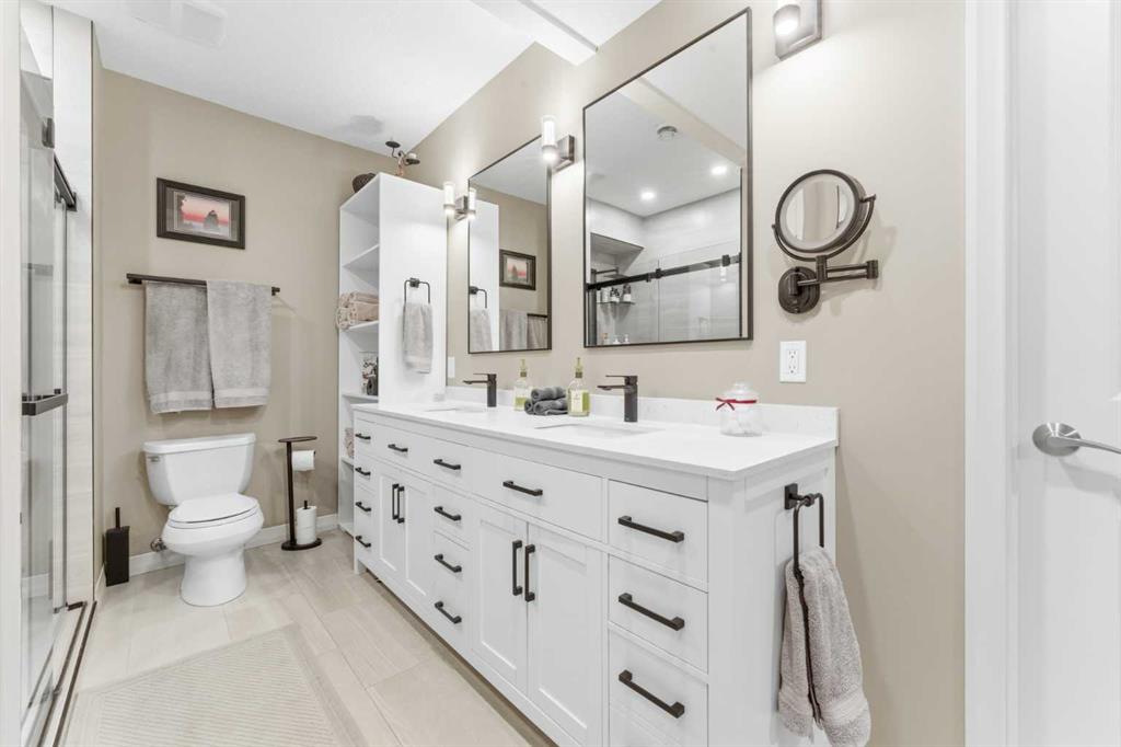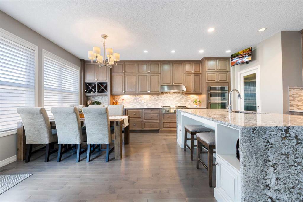 WOW! This former Jayman show home is sure to impress as soon as you pull into the driveway! Let's go inside and take a tour starting with the spacious entryway that leads you through to the main floor dining room that doubles as a great sized office space! The kitchen is the heart of this home and is a chefs dream with a huge island with a waterfall granite countertop, the rest of the kitchen has quartz countertops, there are high end Jenn-Air appliances including a gas range with a built in griddle, built in wall oven, microwave and a warming drawer, LOADS of maple cabinets, pantry, mosaic tiled backsplash and an extended space with a wine fridge, wine rack and extra storage space! The dining area is adjacent to the kitchen and has access to the back yard and huge upper deck! The living room will fit ALL of your furniture and features a beautiful tiled gas fireplace! The main floor also has maple hardwood throughout, a convenient half bathroom, a spacious mudroom with access to the garage. Let's head upstairs to continue the tour ~ There is a huge primary bedroom with plenty of natural sunlight, coffered ceilings, an ensuite that you will LOVE with his and hers closets and sinks, separate beautiful soaker tub, shower, make up counter AND heated floors! Down the hallway there is 2 additional bedrooms that are both a great size, a huge bonus room with wall to wall windows and EPIC VIEWS of one of Calgary's BEST lakes! In addition to all of THAT there is another full bathroom for the kids and a large laundry room upstairs for ultimate convenience! The fully finished basement has a newly renovated full bathroom with heated floors, double sinks and a huge shower, a linen closet as well as an extra closet for more clothes storage! A great sized rec room, plenty of windows everywhere, a gorgeous wet bar with a 2nd wine fridge and the wine lovers will LOVE the wine storage room! And to top it all off there is a 4th bedroom with a large window to complete the basement! If this wasn't enough for you there is ALSO 36 solar panels that were recently installed, 2 furnaces, 2 A/C units, a hot tub, massive deck area, upgraded high end Hunter Douglas blinds throughout, no maintenance yard, custom curtains, built in speakers throughout the home and coffered ceilings in the ding room, bonus room and primary bedroom! All of this awesomeness in a beautiful home that has been lovingly maintained in one of Calgary's premier lake communities, close to transit, schools, parks, playgrounds, off leash dog park, South Health Campus, YMCA, VIP theatre, an abundance of shops, restaurants, pubs and so much more! This is an amazing opportunity ~ don't wait!
