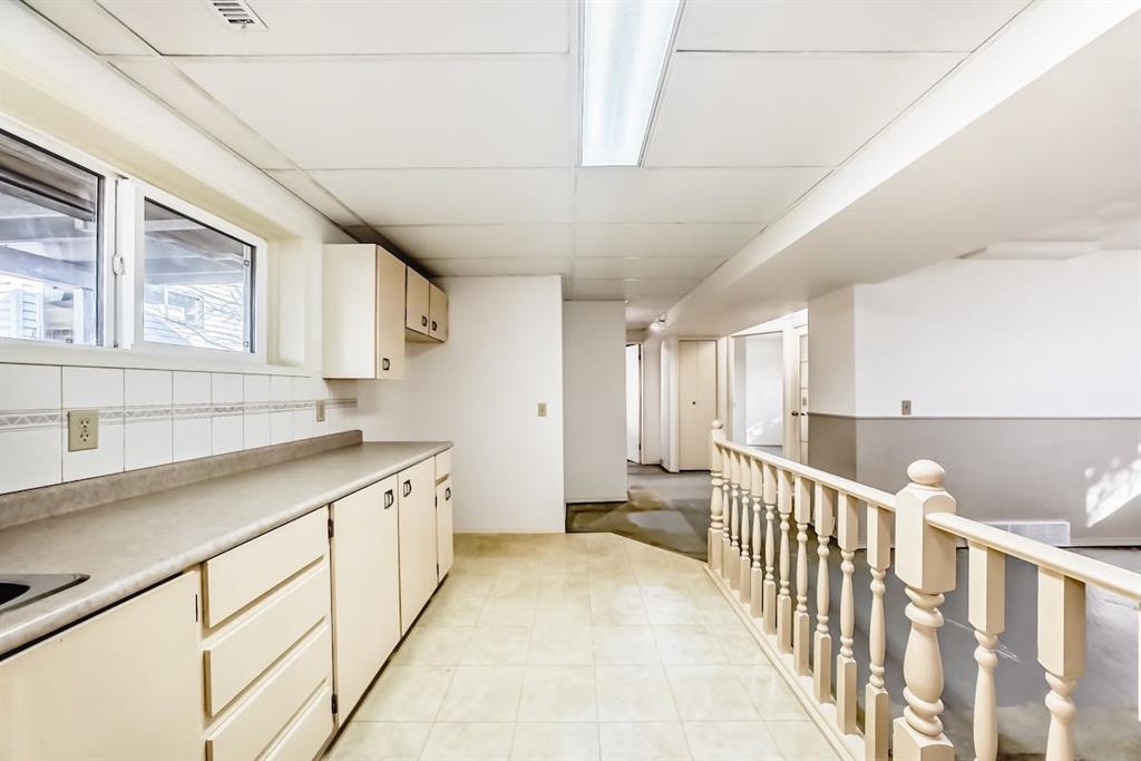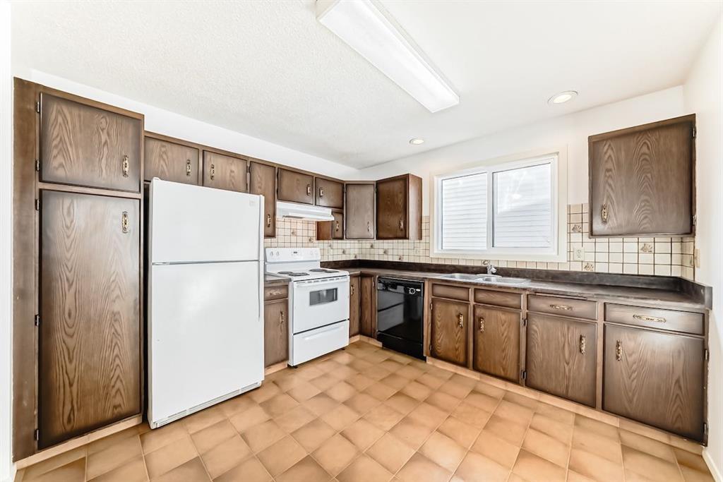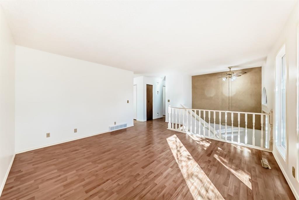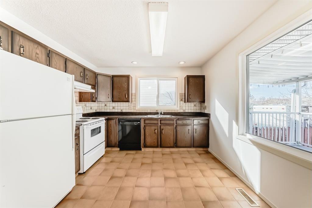 Handyman special in Ranchlands! Beautiful location with large lot within the community with views of the mountains from the back yard and aluminum covered Duradeck . Private back yard with mature trees including double grafted crabapple tree is kitty corner to playground with no neighbours behind. Walk into bright living room with three oversized window overlooking raised front yard. Kitchen has hardwood cabinets with ceramic backsplash. Main floor laundry closet off the kitchen. Tow good sized bedrooms up and one down. Open concept basement with kitchenette. Most windows were replaced in 2021/2022 and shingles were replaced 2021. newer renovated basement bathroom. Good bones with a little elbow grease. New paint and some updates in the home. Carpet has been removed from the basement. Close to schools, pathways and all amenities.