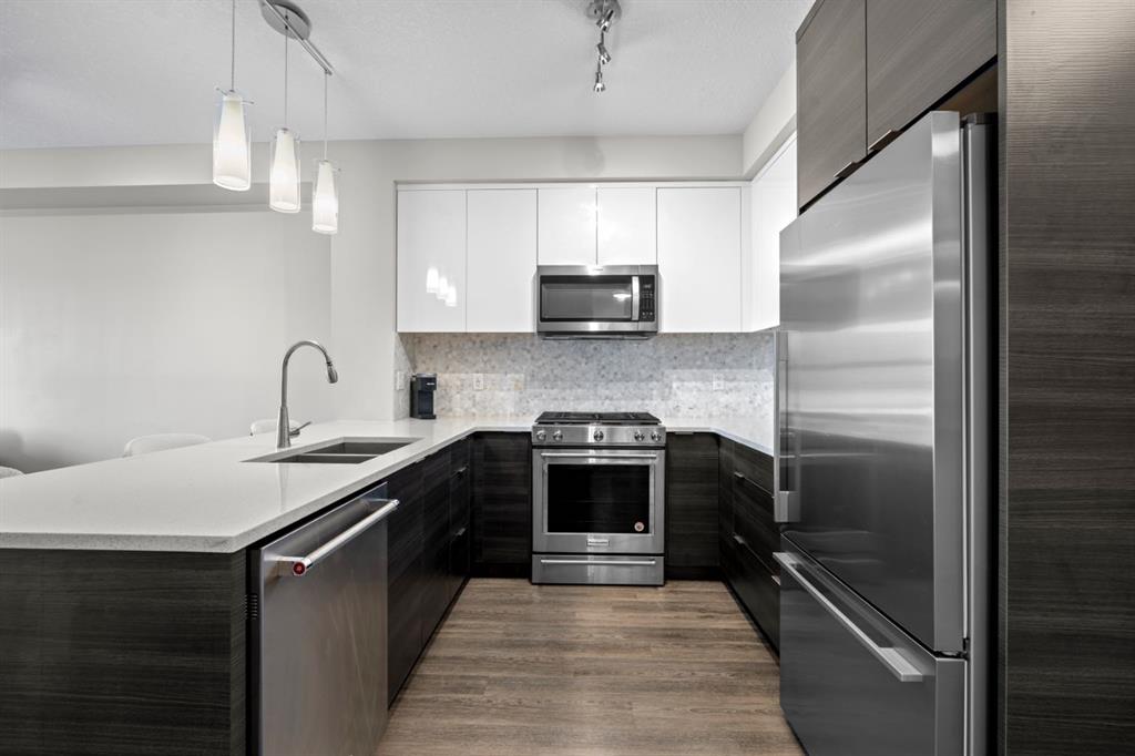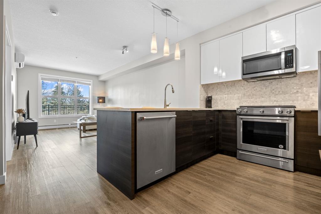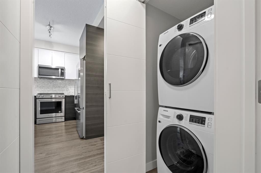Welcome to The Axess in the highly sought-after community of Currie Barracks! This well-appointed 1-bedroom, 1-bathroom main-floor unit offers 619 sq ft of thoughtfully designed living space, perfect for first-time buyers, downsizers, or investors. The open-concept layout features a modern kitchen complete with stainless steel appliances, seamlessly flowing into the bright living and dining areas—ideal for both everyday living and entertaining. The spacious bedroom offers comfort and functionality, while the convenience of in-suite laundry adds to the ease of daily living. Enjoy direct access from the main floor and step out onto your private rear porch, complete with a gas line for your BBQ—perfect for summer evenings. This unit also includes one titled parking stall and an assigned storage unit for added convenience. Residents of The Axess enjoy excellent building amenities, including a car wash bay and secure bike storage. Ideally located just minutes from Mount Royal University, Rockyview General Hospital, and major routes such as Crowchild Trail and Glenmore Trail, commuting is a breeze. You’re also close to parks, gyms, swimming facilities, shopping, restaurants, and downtown Calgary. A fantastic opportunity to own in one of Calgary’s most vibrant inner-city communities—book your showing today!