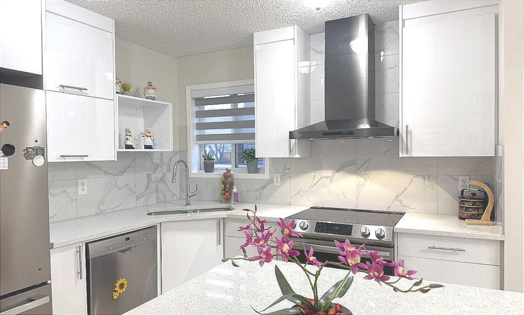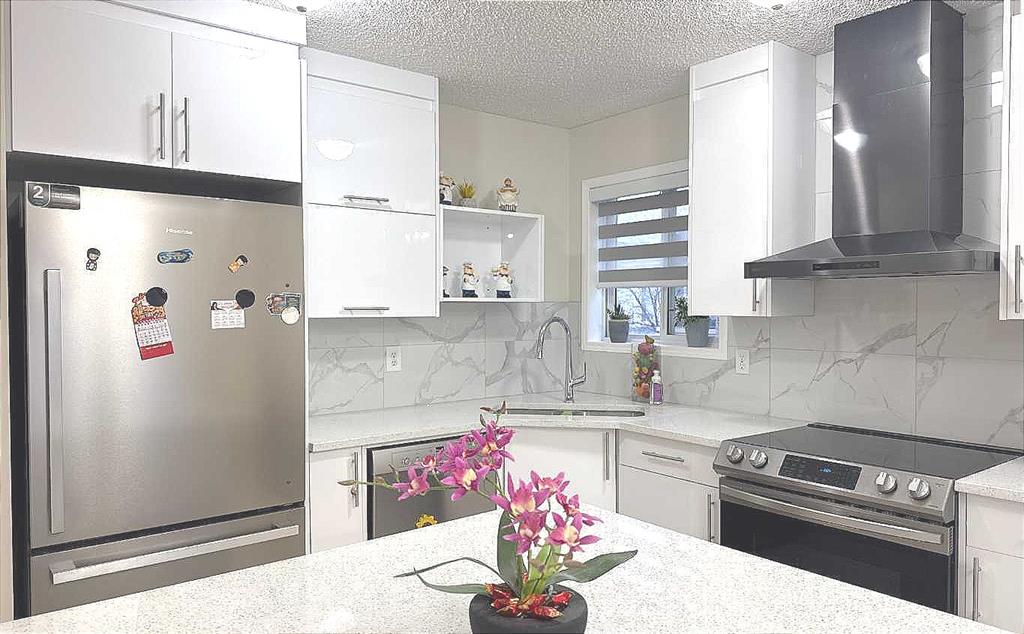 Welcome to this beautiful and well-cared 1288sf 2-storey home. New asphalt shingles and some siding. New kitchen cabinets & quartz countertops, central quartz kitchen island, and quartz vanities all in neutral/modern colours. Over-size detached garage (Over size 24'x24'). This home is just minutes to the TNT shopping centre, Highway #2/Stoney Trail, yet it is situated on a quiet CIRCLE. A total of 5 bedrooms and 21/2 baths. Side entrance to the fully developed basement.