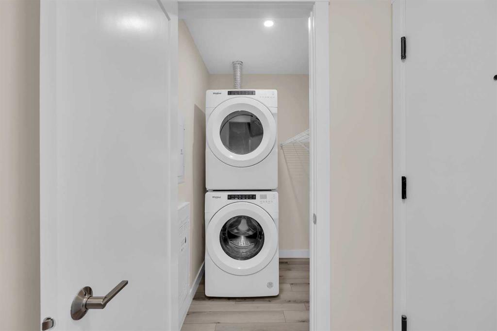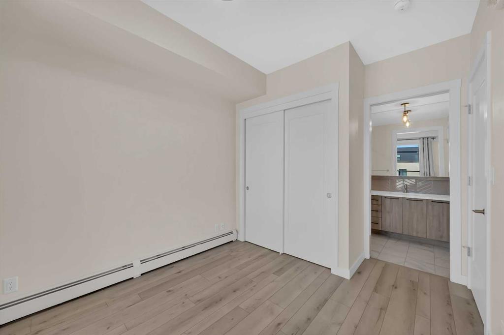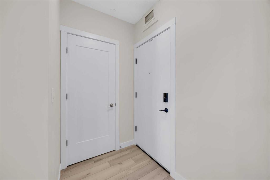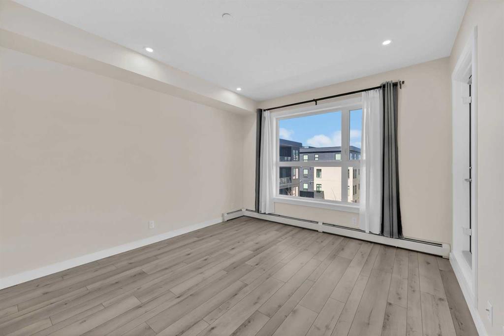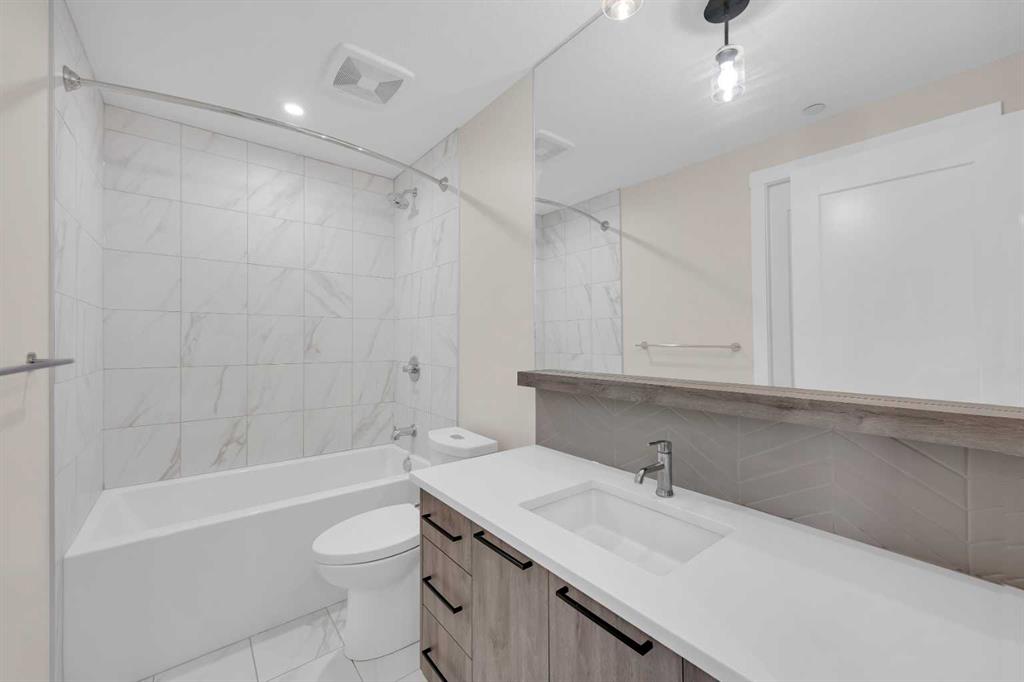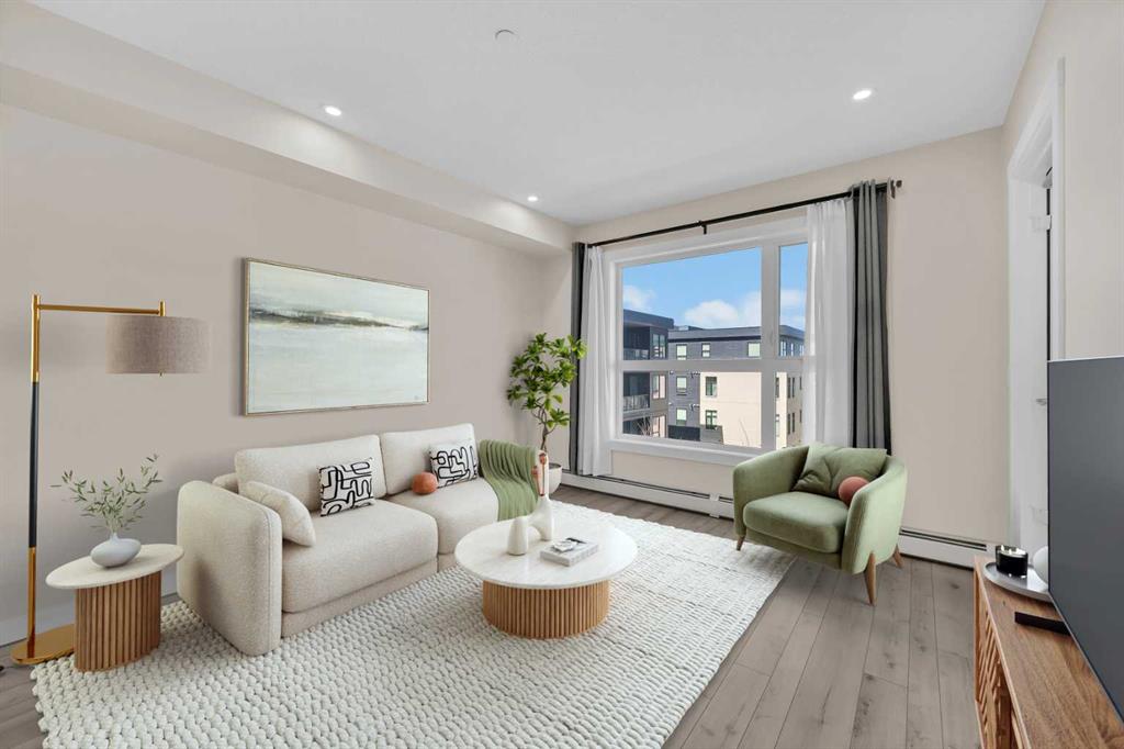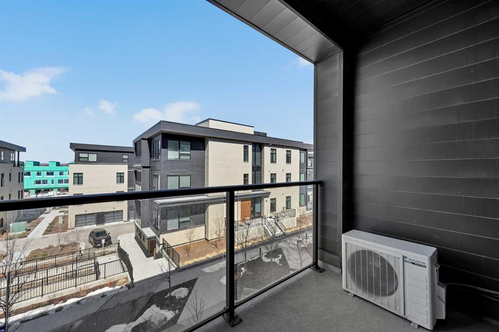 Welcome to Capella in University District — a contemporary, well-built condo nestled in one of Calgary's most sought-after and walkable NW communities. This immaculate one-bedroom, one-bathroom home is move-in ready and offers the perfect lock-and-leave lifestyle without compromise. Inside, the OPEN-CONCEPT layout is bright and airy, carried throughout by WIDE-PLANK VINYL FLOORING and recessed LED pot lighting. The kitchen is a standout, featuring warm wood-tone cabinetry paired with sleek dark upper cabinets, a QUARTZ WATERFALL ISLAND, chevron tile backsplash, and a stainless steel appliance package including a BUILT-IN microwave and gas range — stylish and functional in equal measure. The living and dining areas flow seamlessly from the kitchen, with a LARGE WINDOW flooding the space with natural light and views of the surrounding community. The bedroom offers a comfortable private retreat with easy access to the four-piece bathroom, while IN-SUITE LAUNDRY keeps daily convenience close at hand. AIR CONDITIONING ensures year-round comfort. Step outside and University District delivers — parks, playgrounds, scenic pathways, Save-On-Foods, top cafés, restaurants, and daily essentials all within walking distance. The University of Calgary, Alberta Children's Hospital, Foothills Medical Centre, Market Mall, and Brentwood C-Train Station are all just minutes away. Capella's landscaped courtyard and on-site fitness centre complete the lifestyle package, along with an underground parking stall and assigned storage locker. An exceptional opportunity for professionals, downsizers, or investors in the heart of University District.